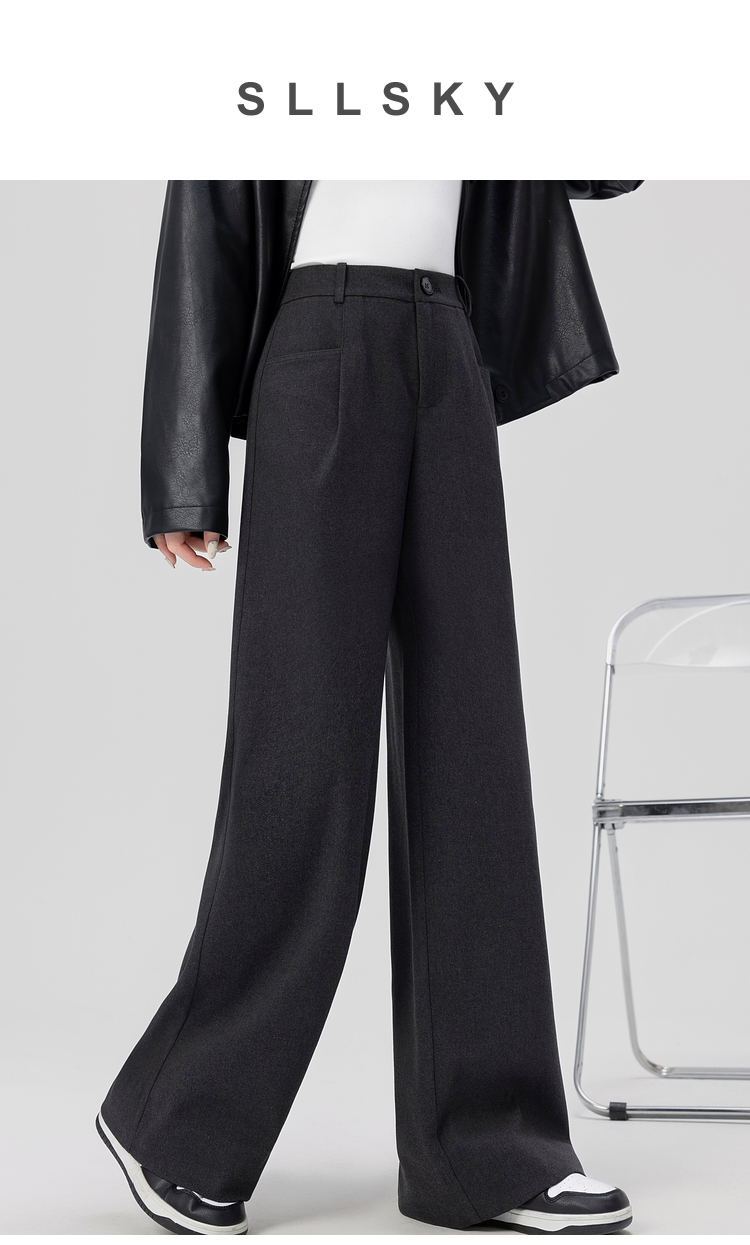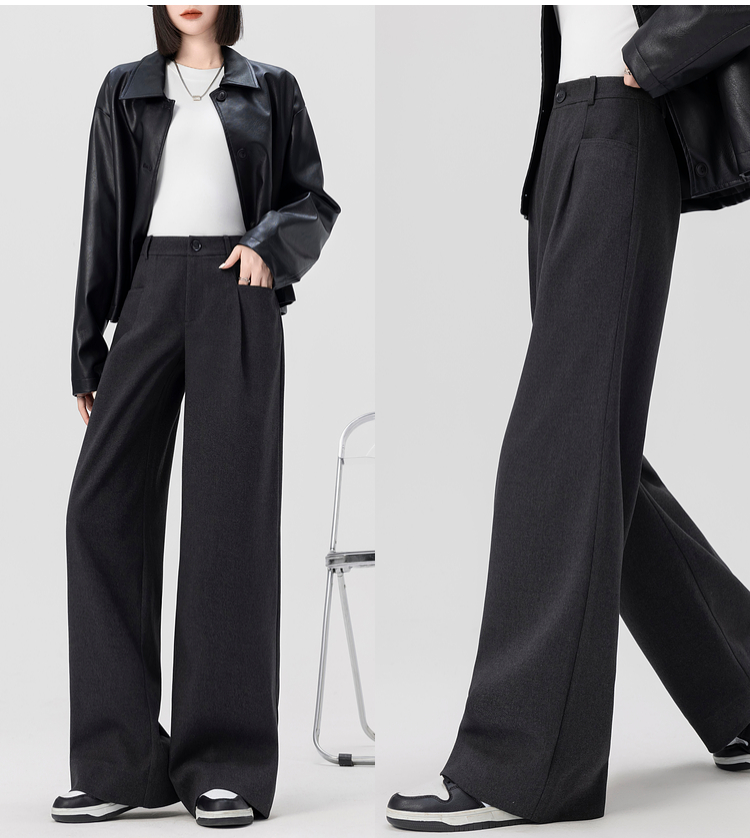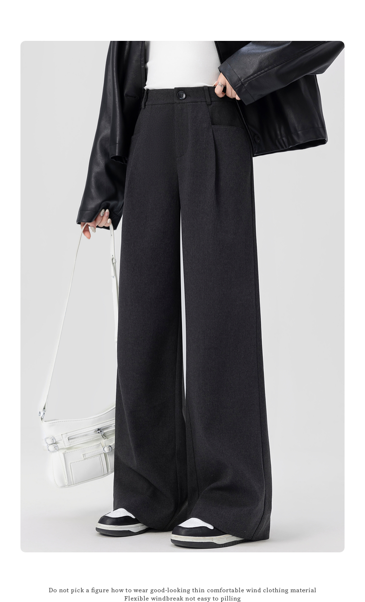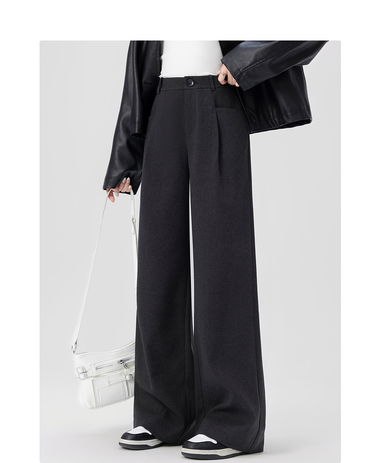 【专属特价】熙世界高腰磨毛阔腿裤秋冬2025新款加厚宽松休闲直筒裤子香蕉裤