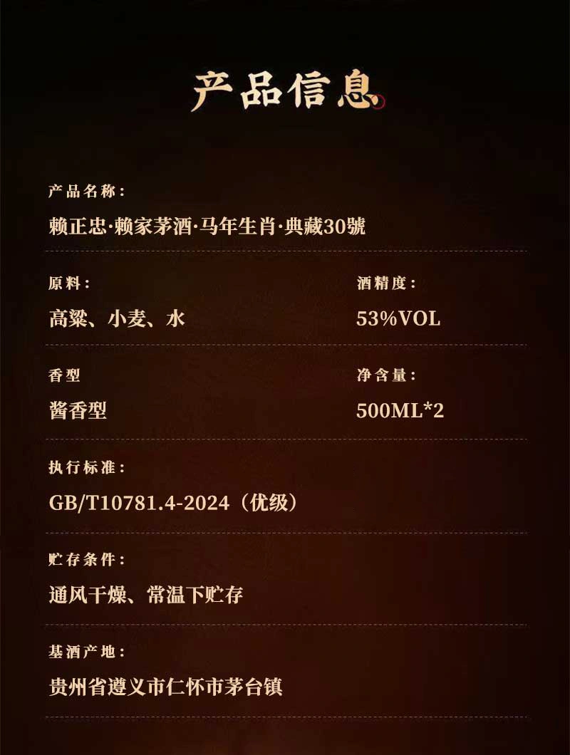 【年货节:赖茅&王茅专场】【2箱 送1坛子10年3斤黄酒】赖正忠·赖家茅酒·马年生肖·典藏30號