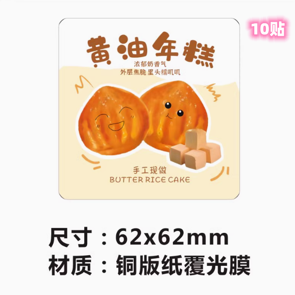 10贴/份 黄油年糕贴纸 6.2*6.2cm 创意封口贴网红黄油年糕包装不干胶贴纸
