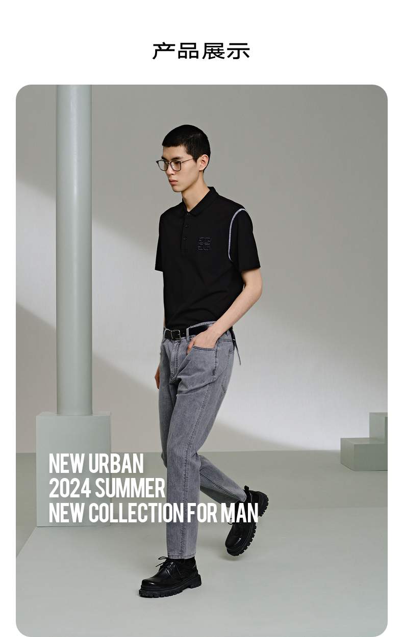 GXG男装 翻领卫衣撞色拼接肌理上衣polo领长袖内搭 2025秋季新品