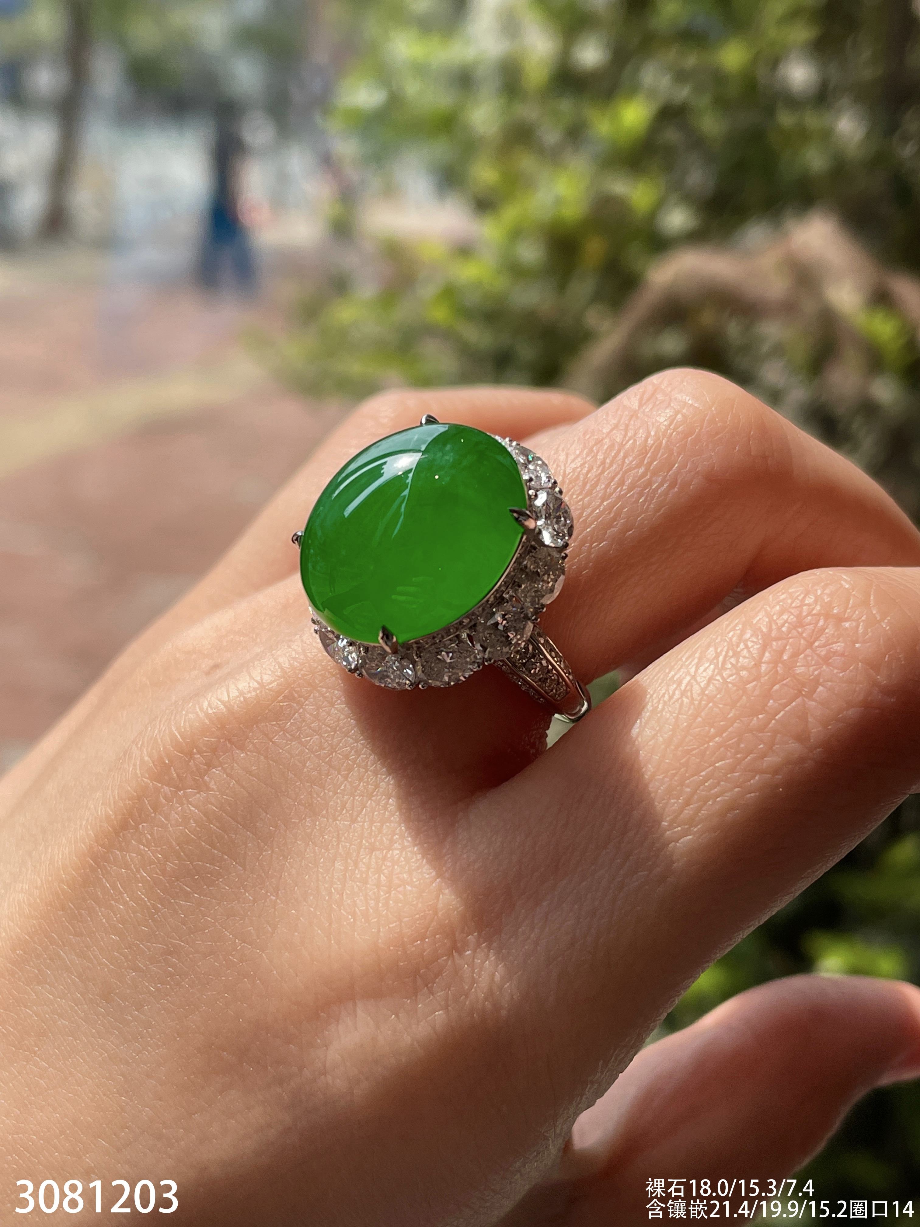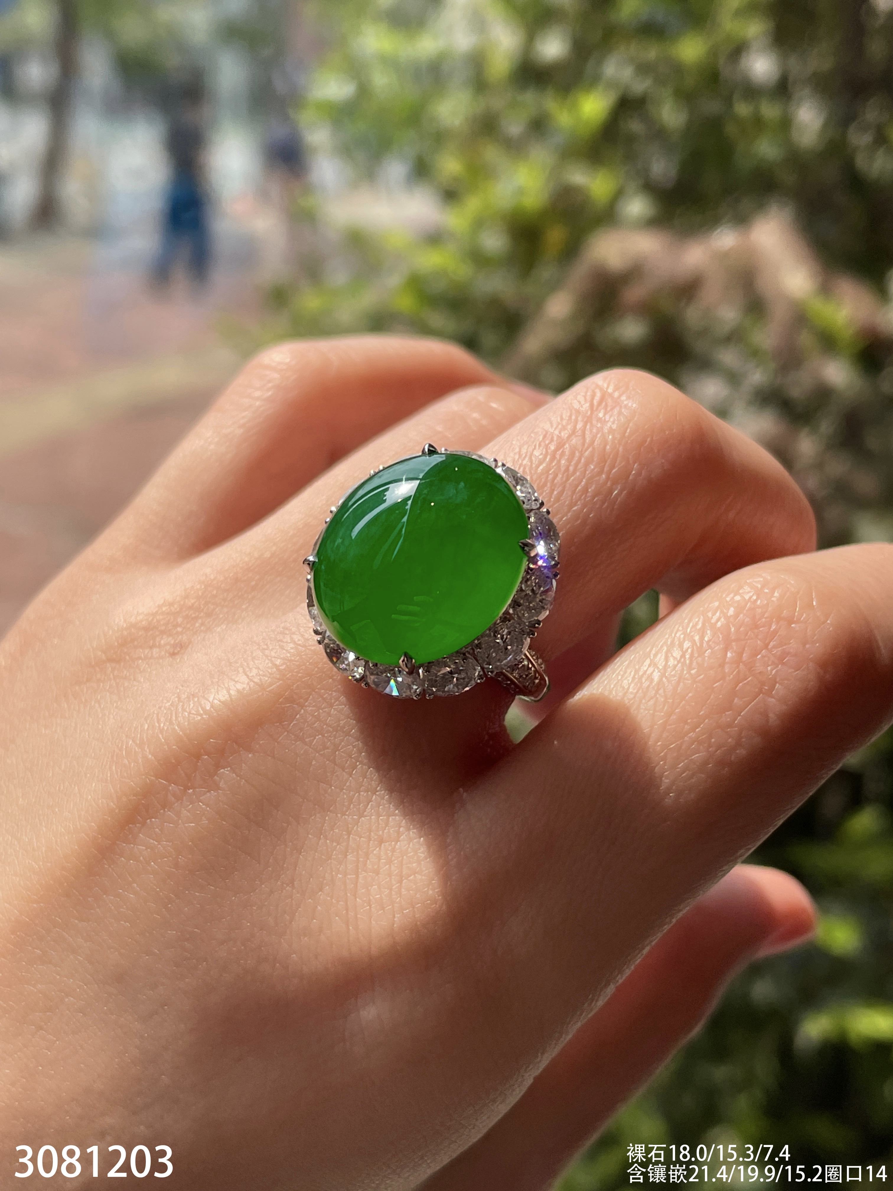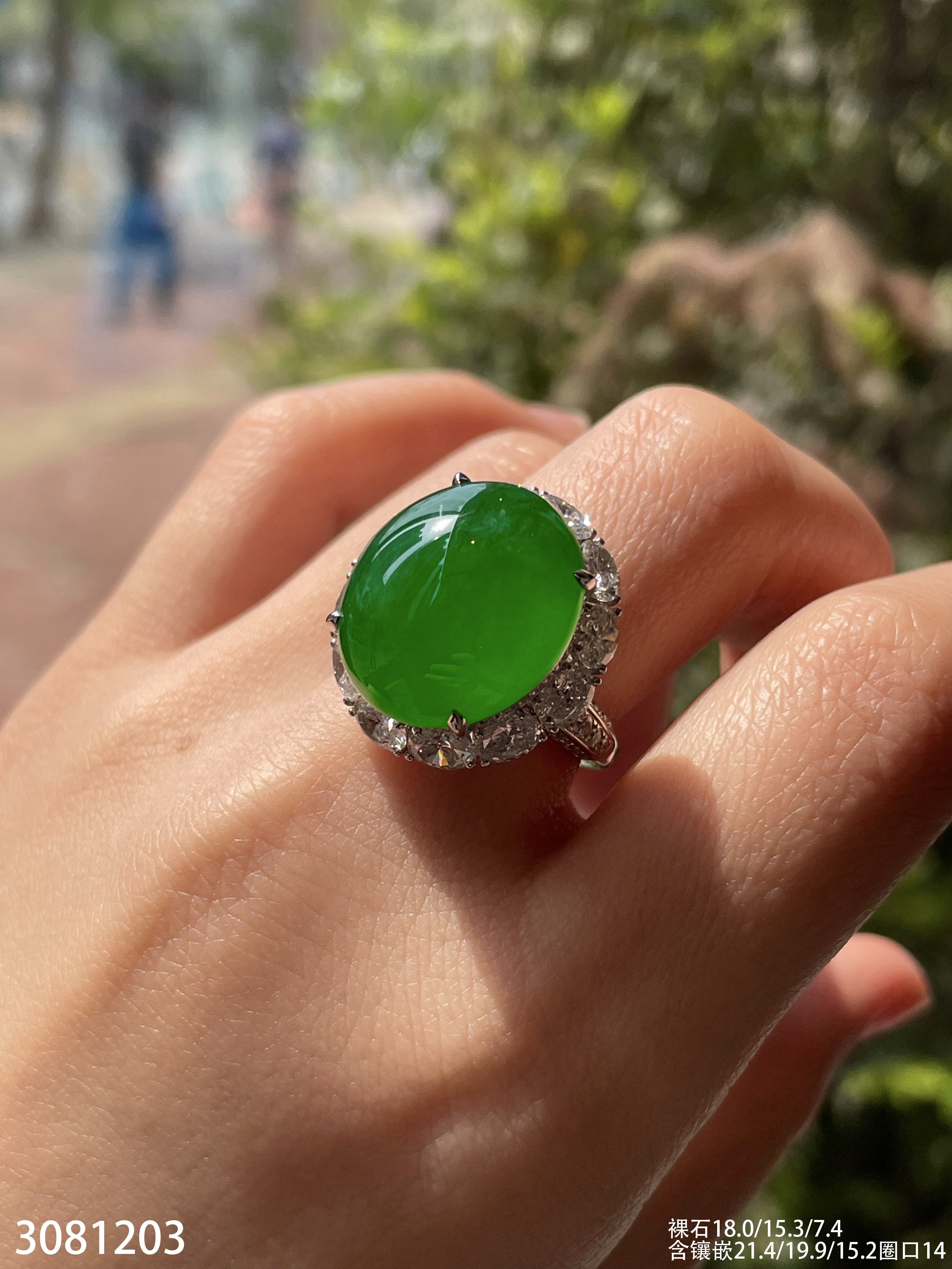 老坑高冰艳绿蛋面戒指【3081203】具体价格微信咨询