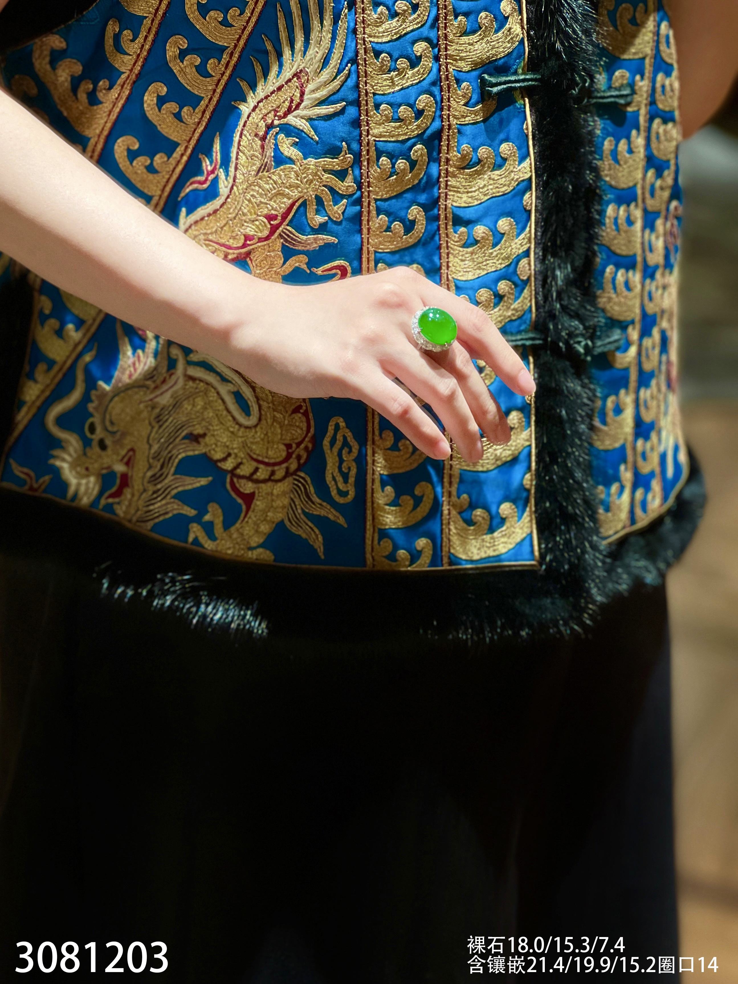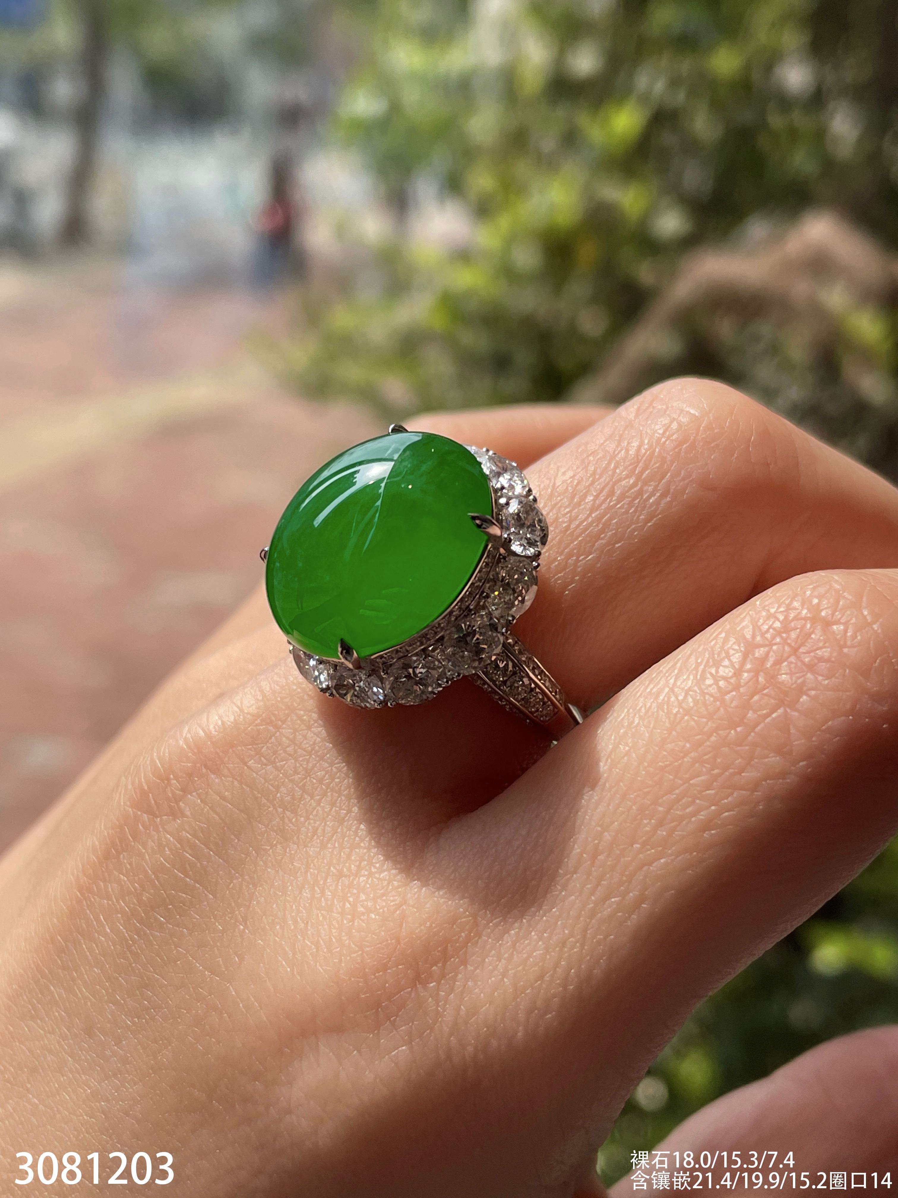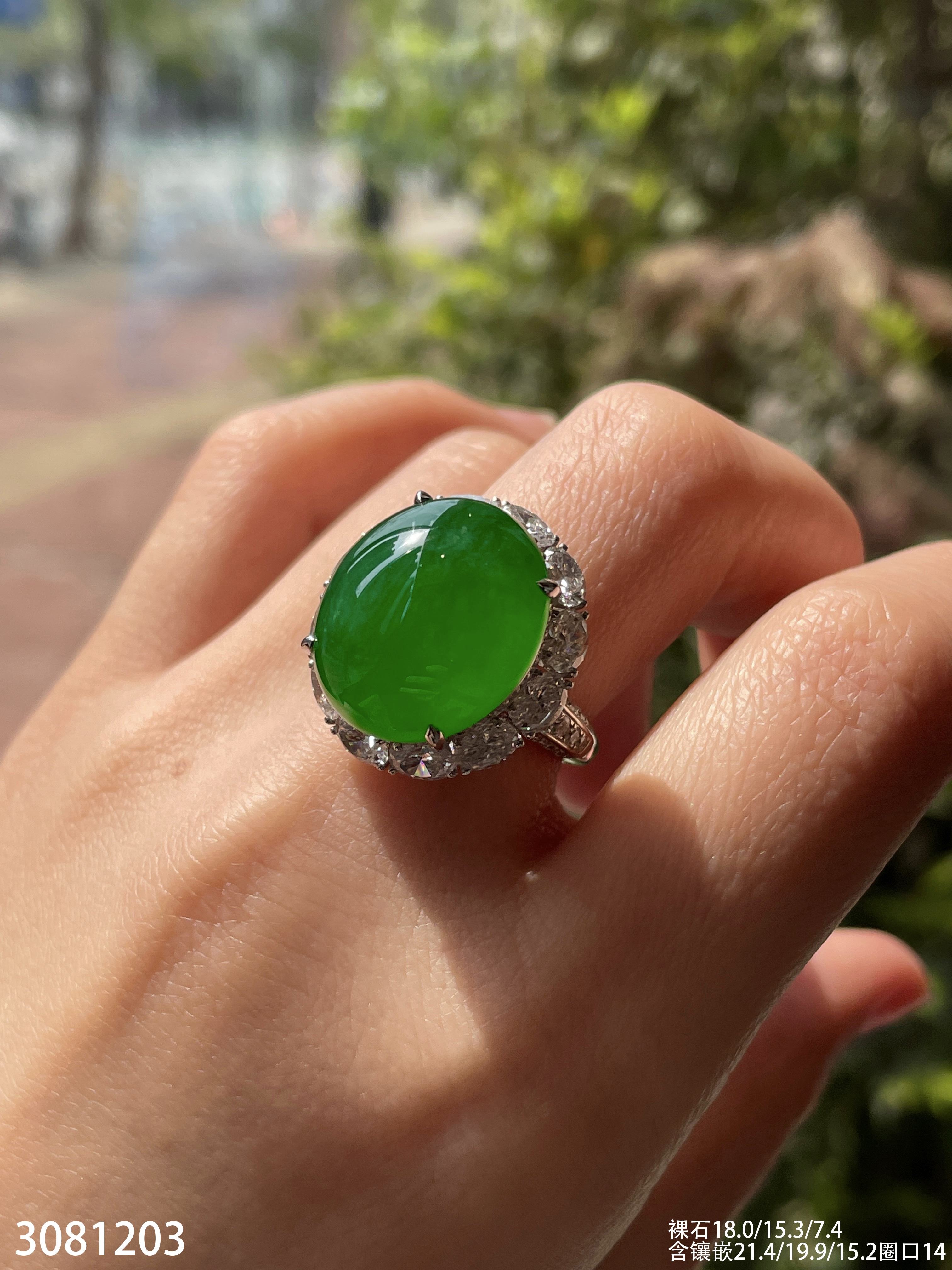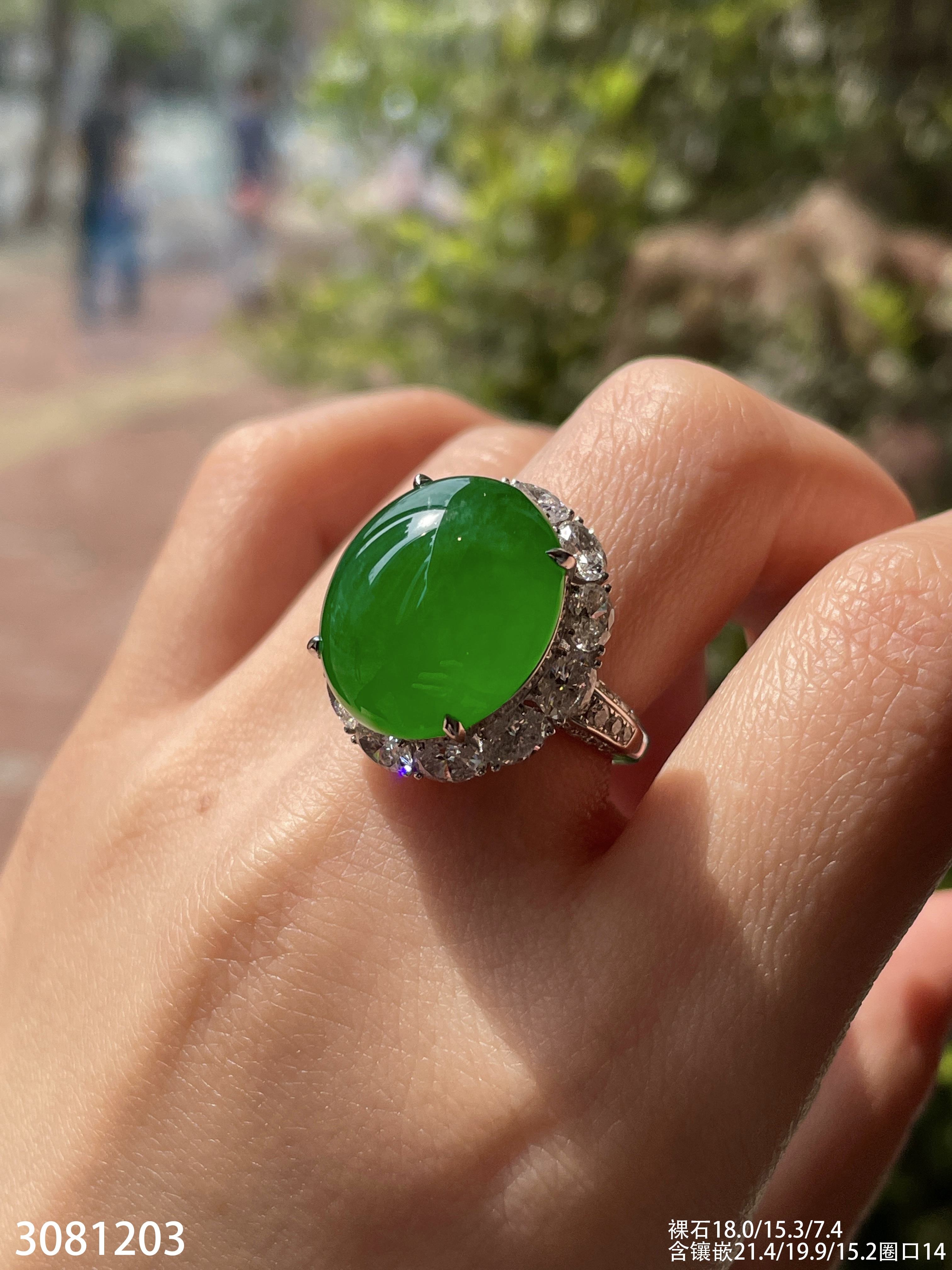 老坑高冰艳绿蛋面戒指【3081203】具体价格微信咨询