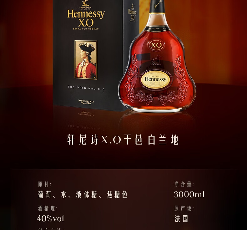 【有税版】轩尼诗XO 干邑白兰地 3000ml 原装进口