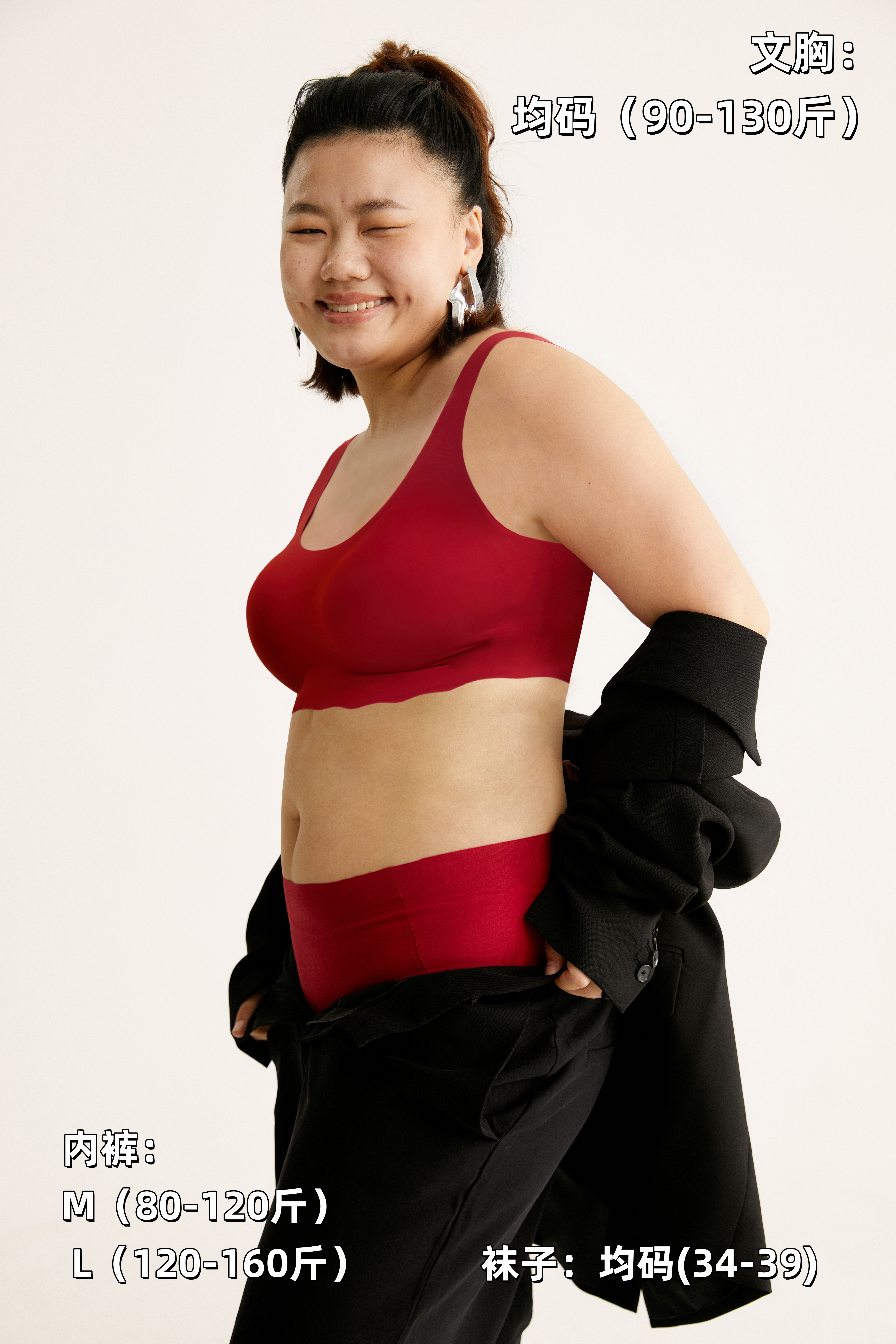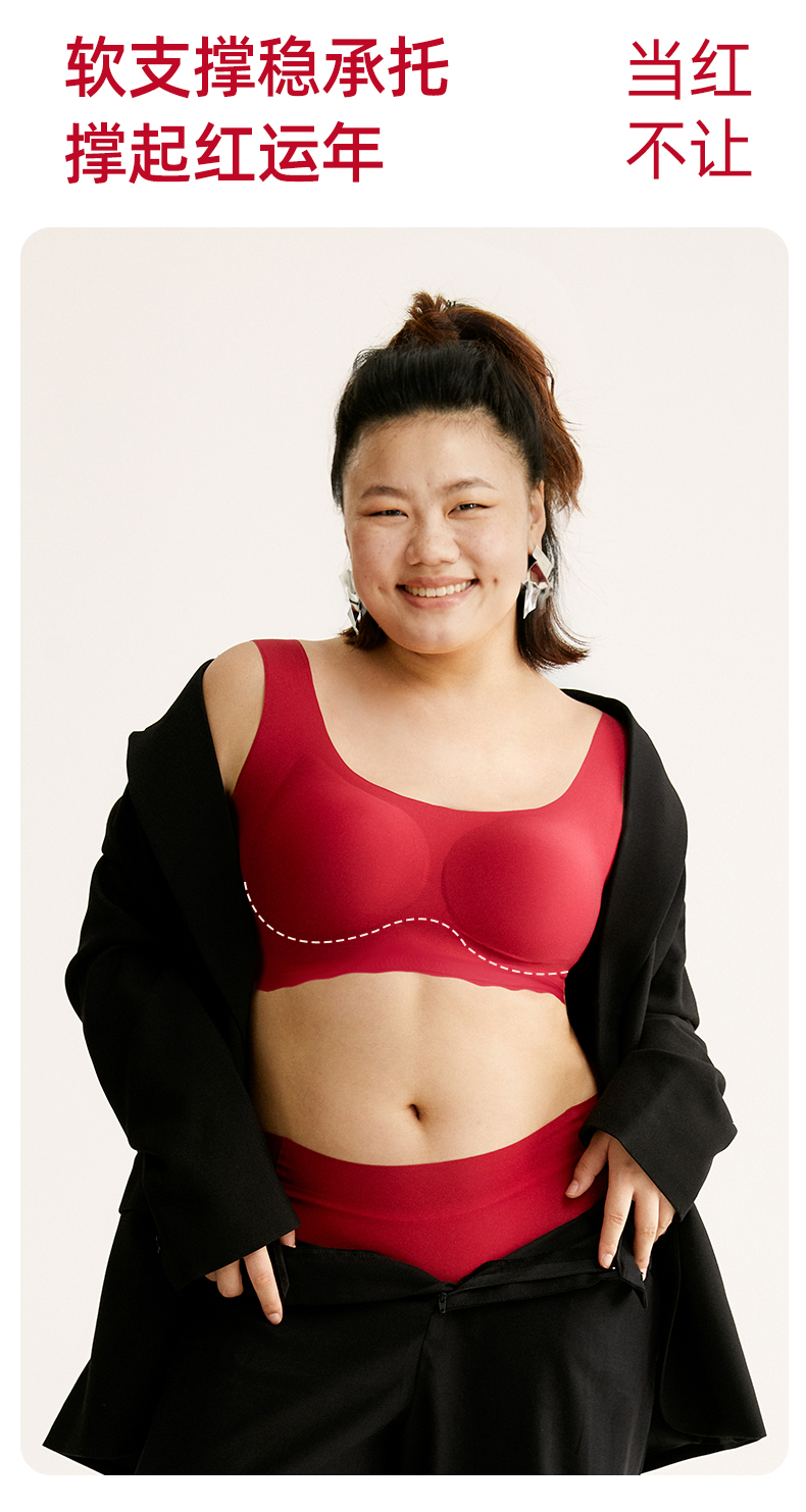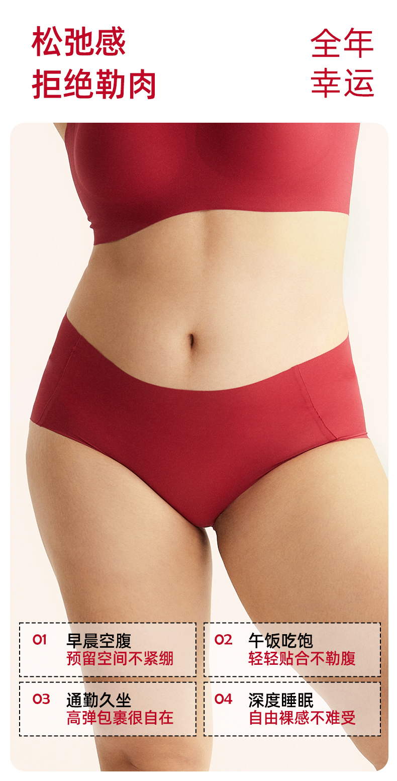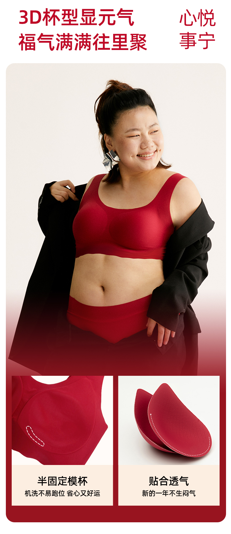 *【半醒】本命年内衣礼盒4件套荣耀红裸感宽肩带背钩款无痕内裤羊毛保暖袜可循环收纳袋