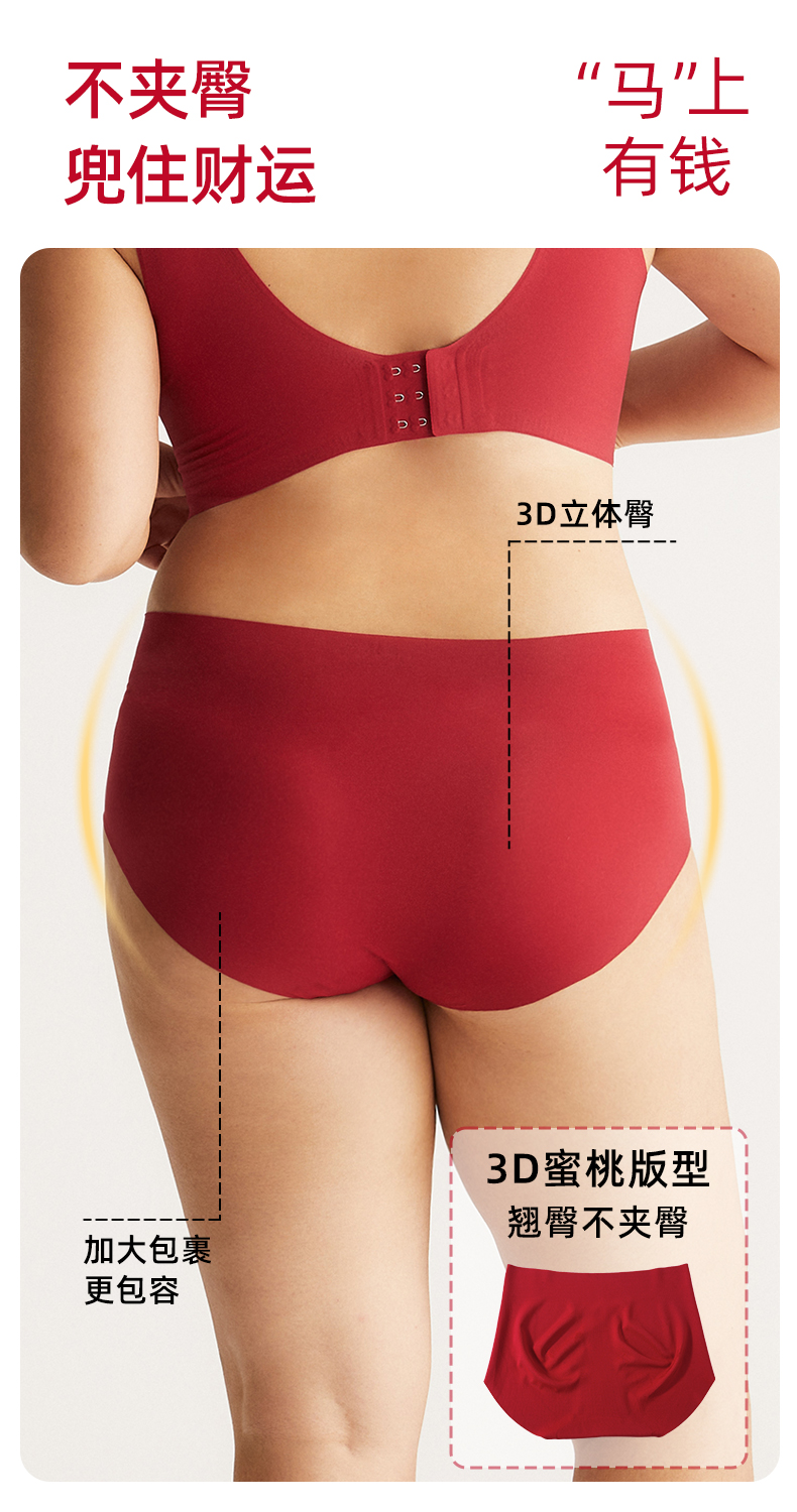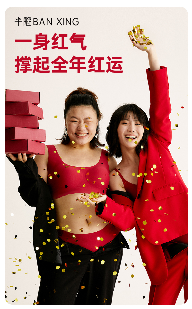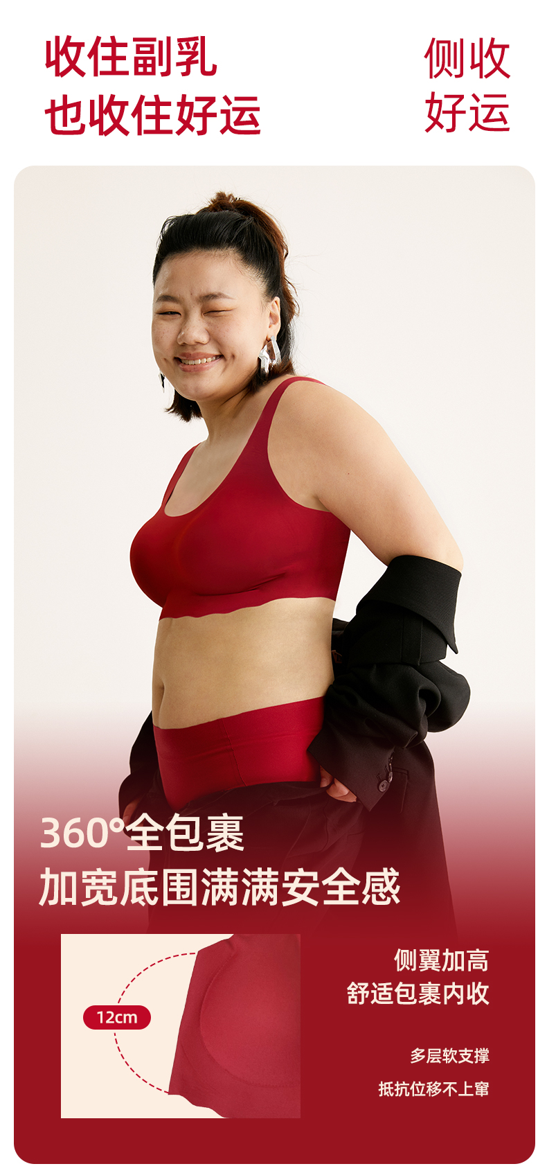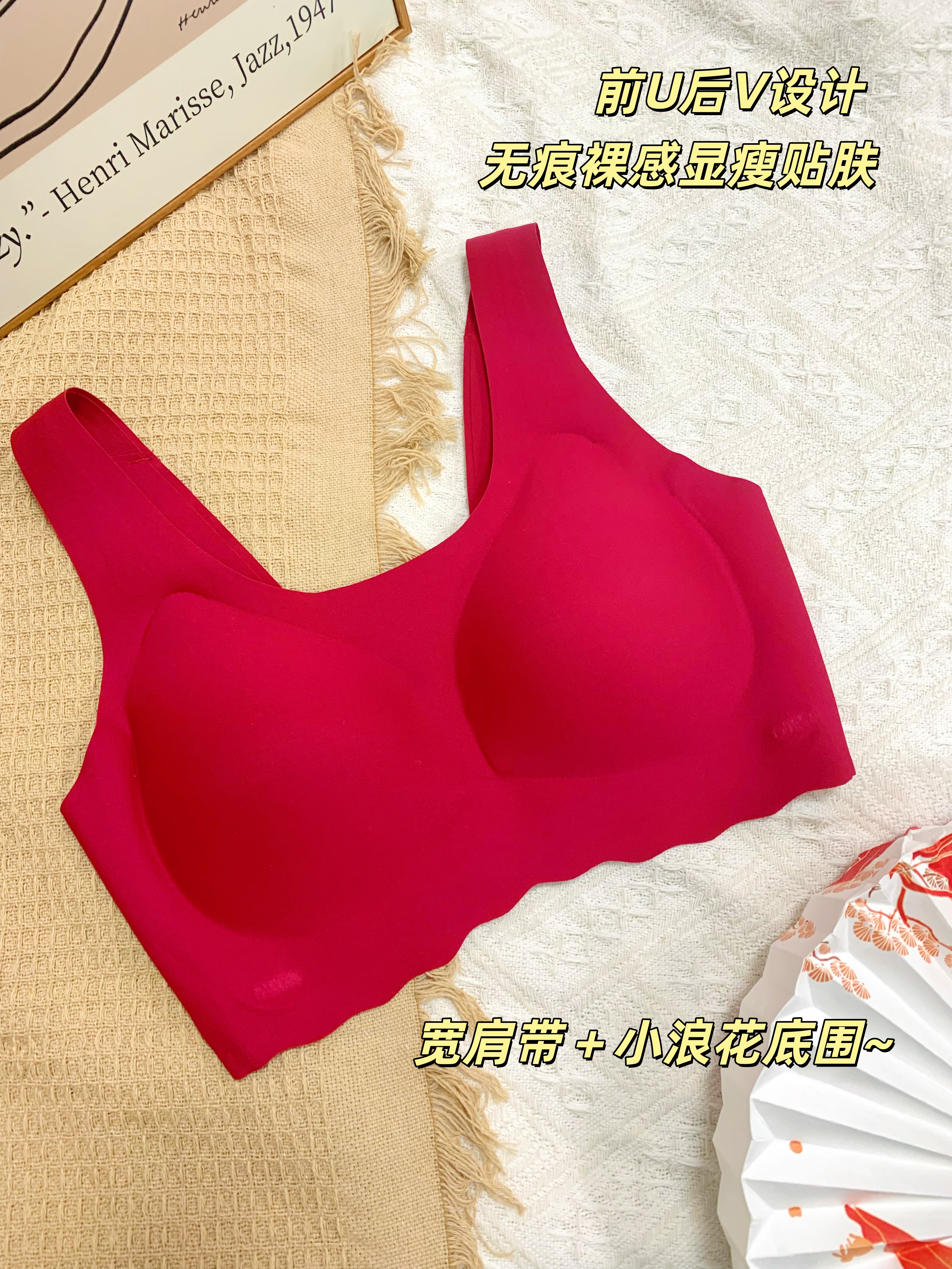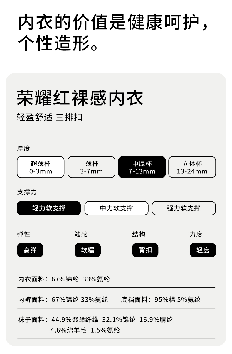 *【半醒】本命年内衣礼盒4件套荣耀红裸感宽肩带背钩款无痕内裤羊毛保暖袜可循环收纳袋