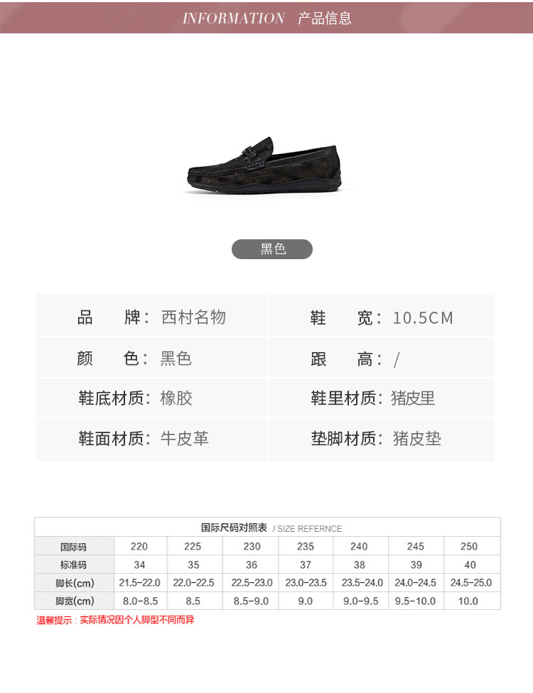 西村名物2021年秋冬新款一脚蹬男单鞋男鞋真皮男士商务皮鞋皮鞋男豆豆鞋X11AW13791