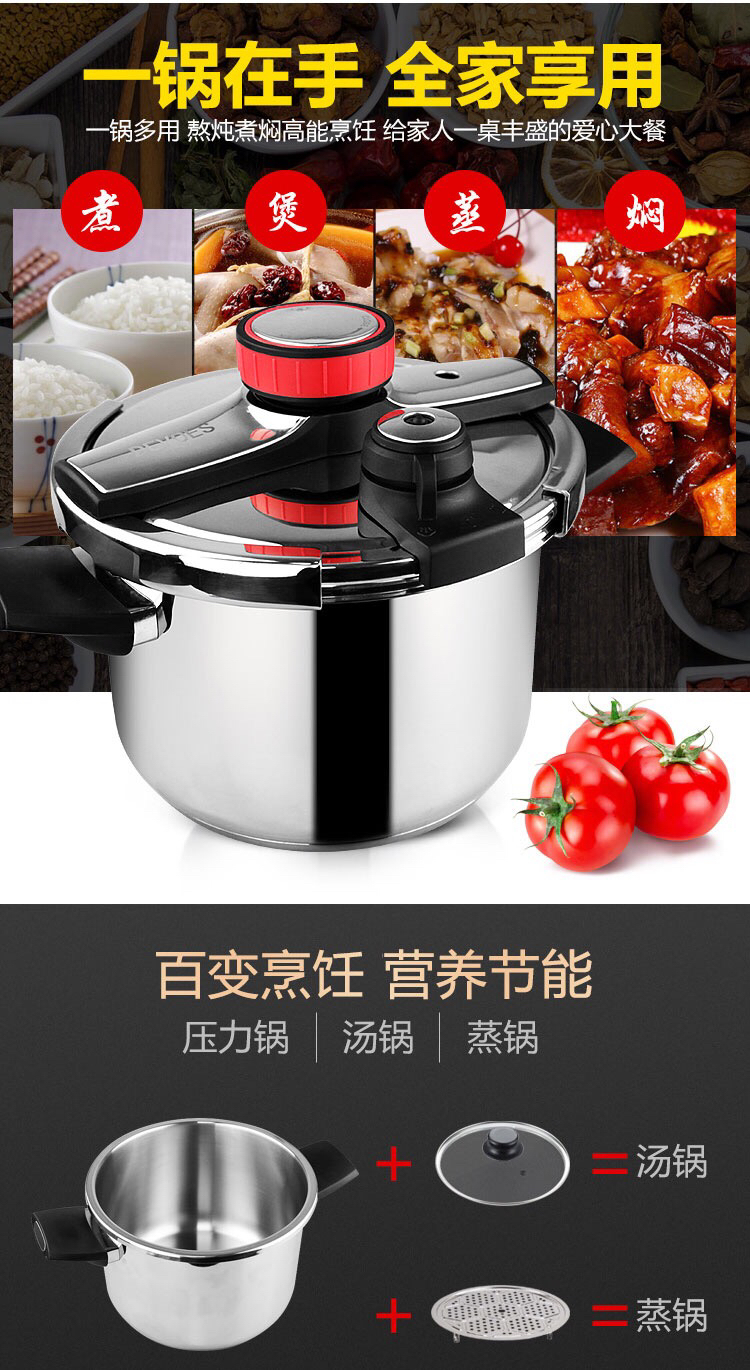 韩国-BM 3.6升-食品级不锈钢压力锅-电磁炉燃气通用-图片供参考