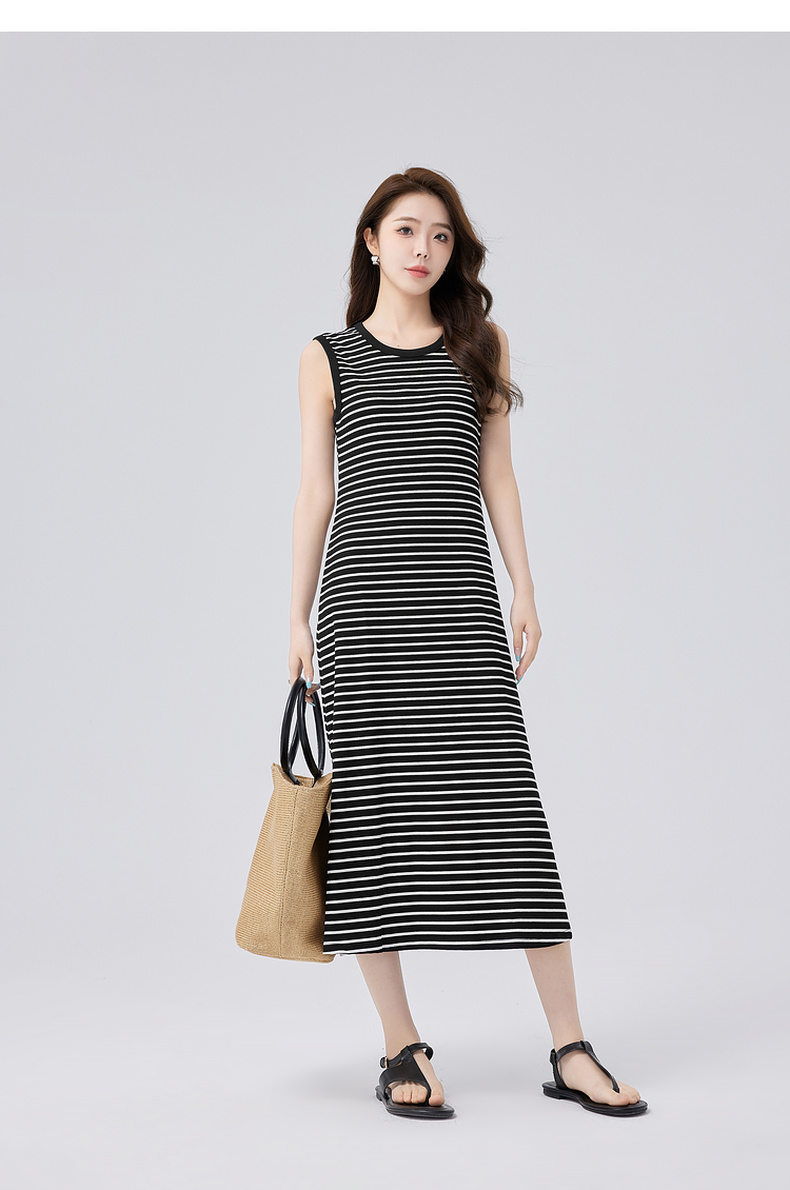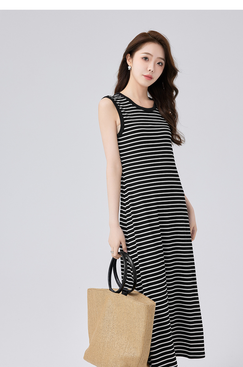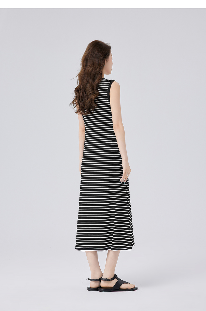 【商场同款】伊芙丽撞色通勤百搭简约条纹连衣裙2024秋1F4591881