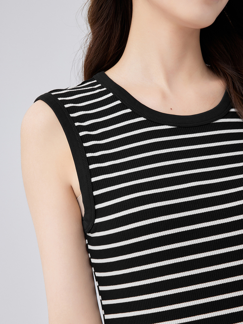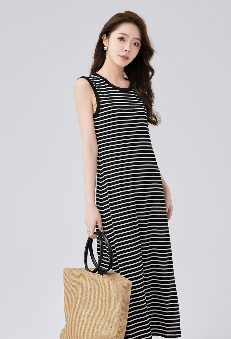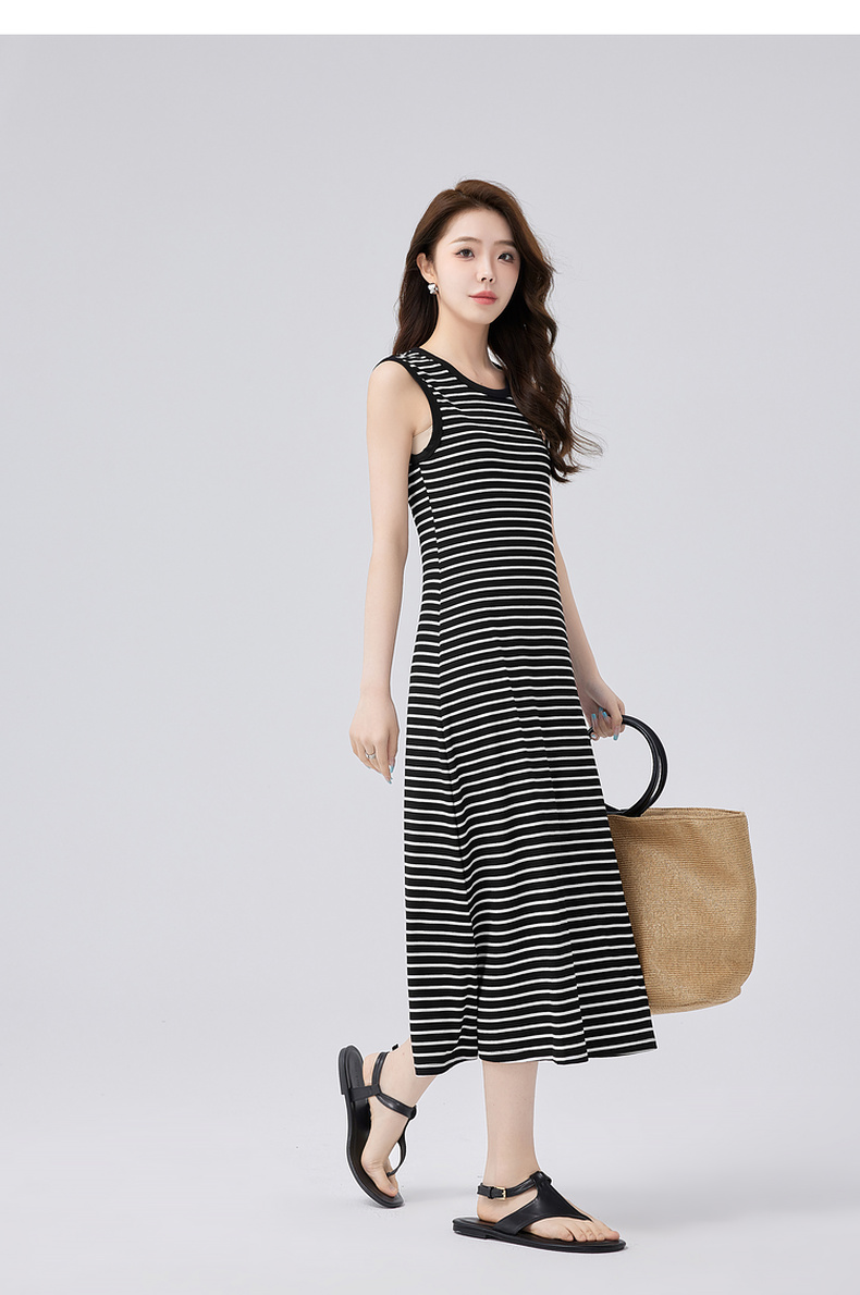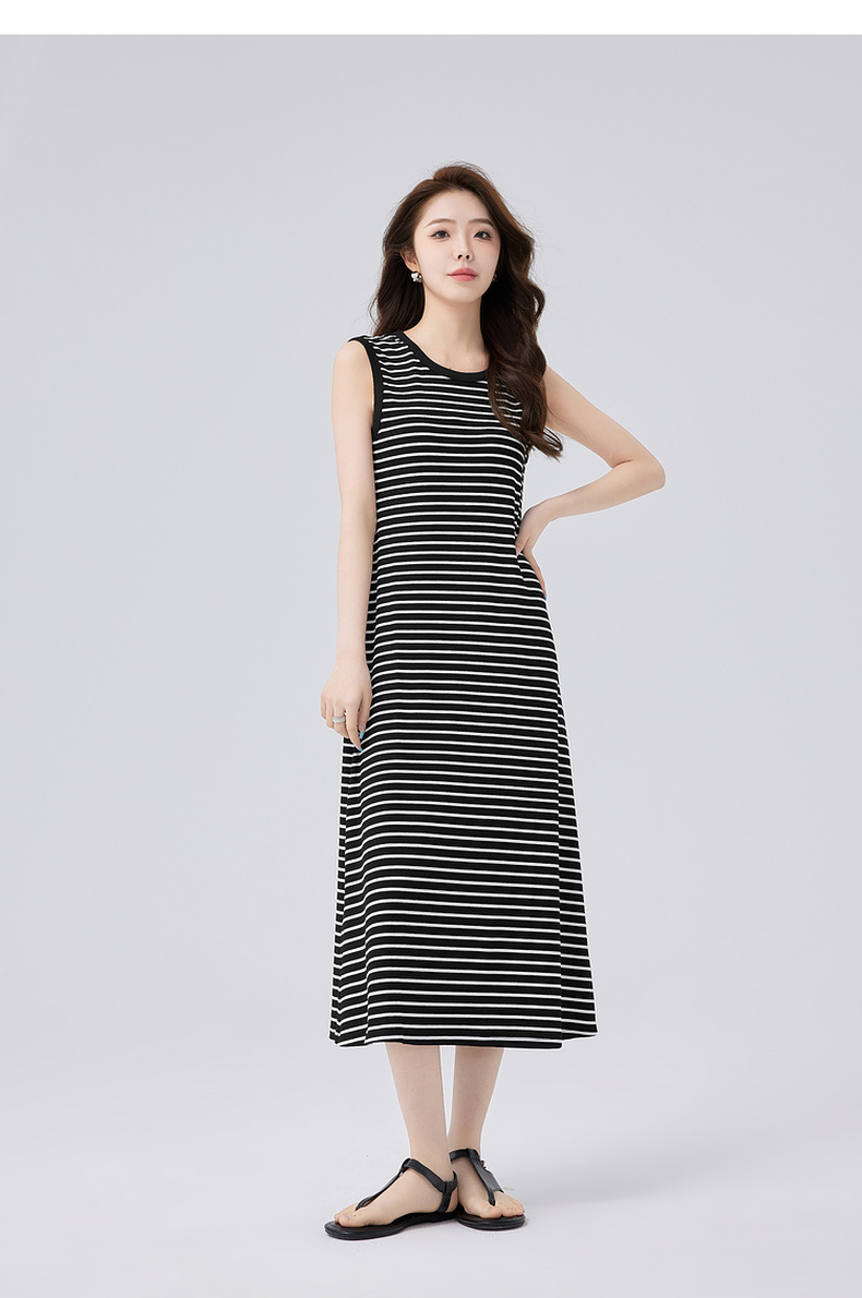 【商场同款】伊芙丽撞色通勤百搭简约条纹连衣裙2024秋1F4591881