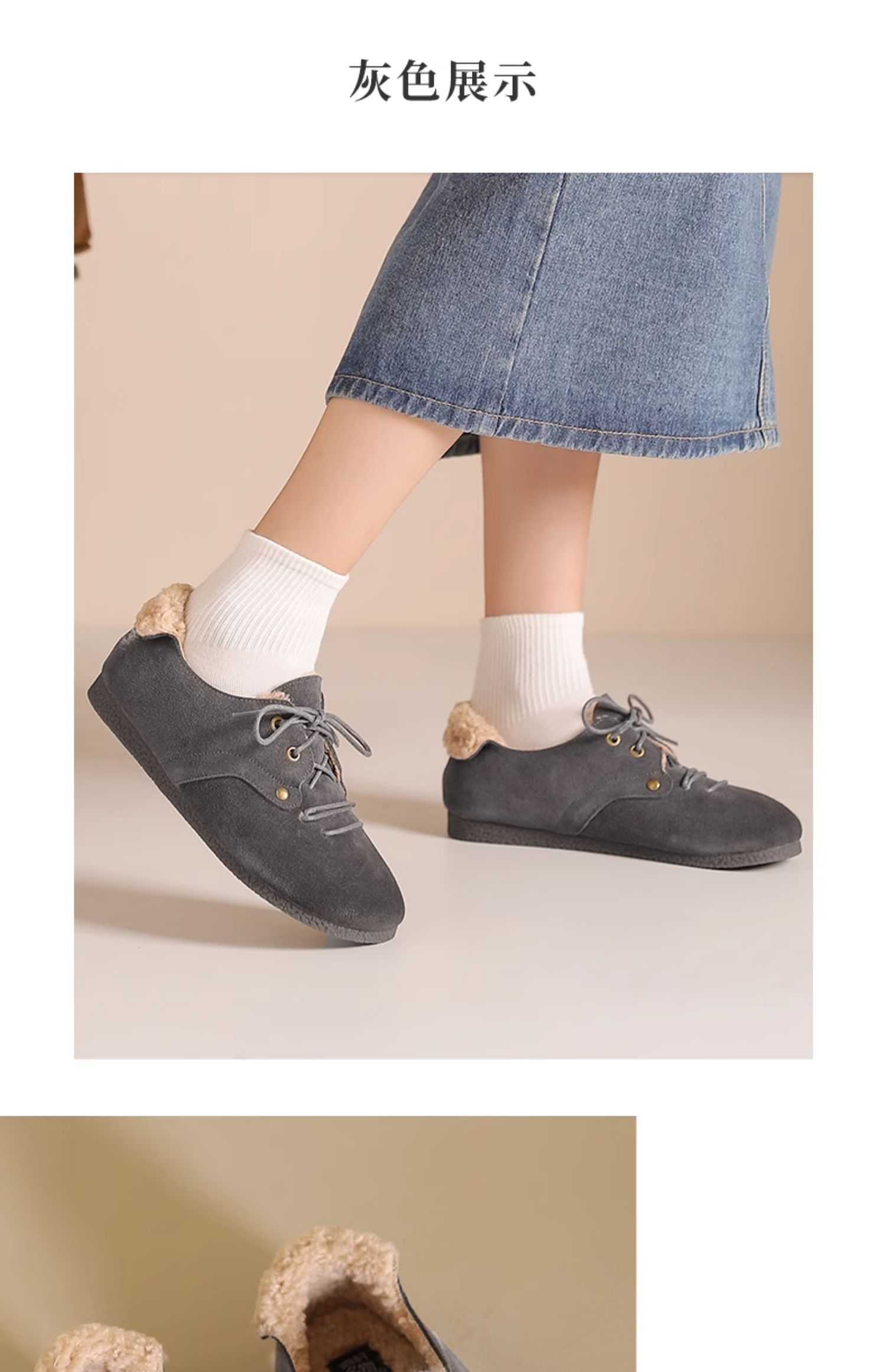 西村名物2024新款女秋冬季外穿高级感厚底小香风加绒豆豆鞋毛毛鞋T24DM47791
