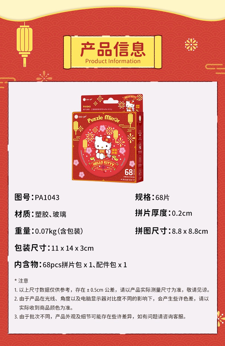 68片 随身镜拼图 PA1043 福气满满 三丽鸥家族系列Hello Kitty