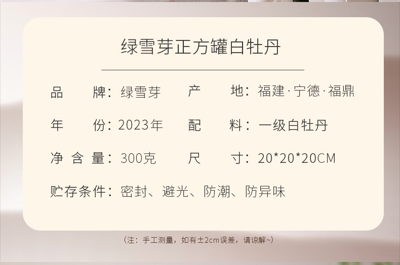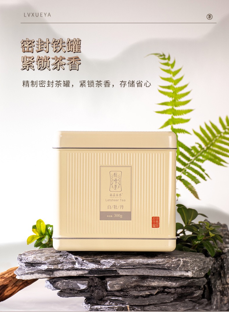 福鼎白茶丨绿雪芽 2023正方罐白牡丹散茶 礼盒装 300g