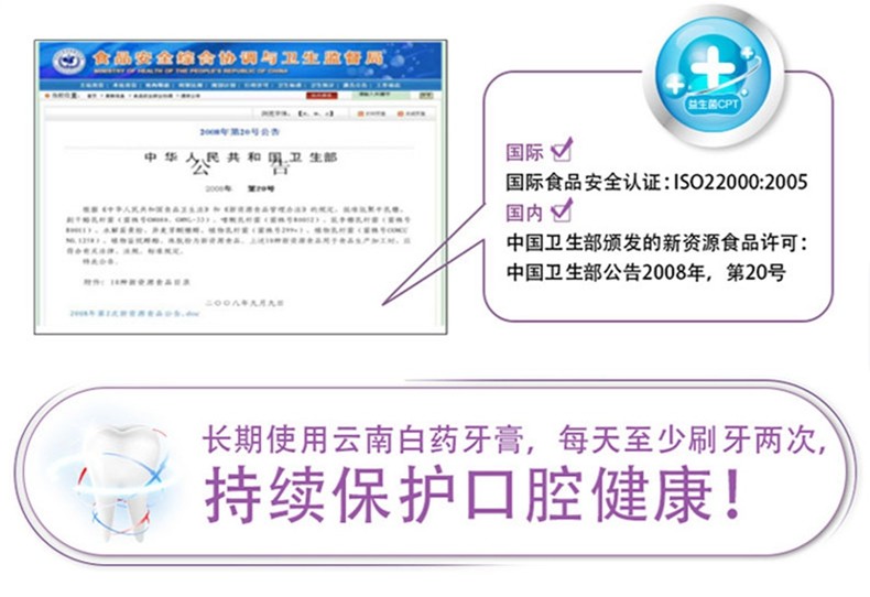 2支装!云南白 薄荷牙膏 105G有票JPY带授权招加盟代理