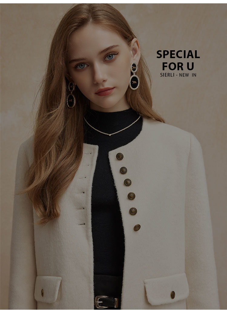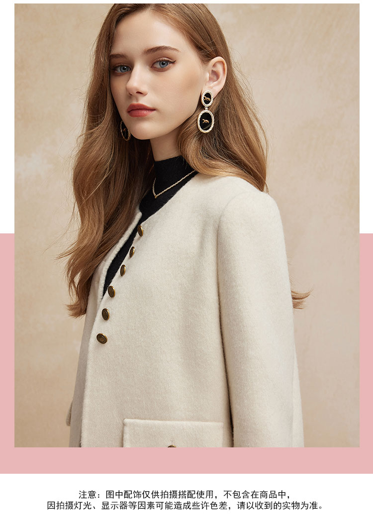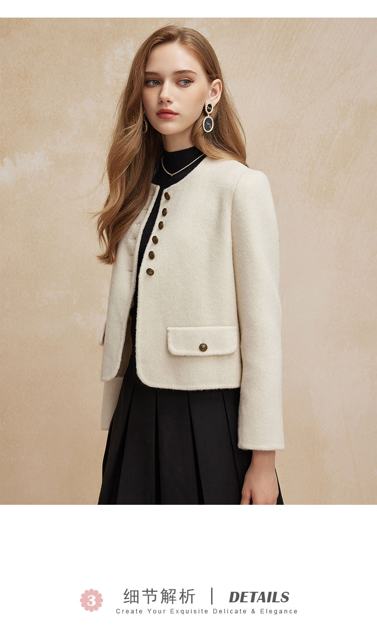 PH9102024新款双面呢短款时尚减龄撞色纽扣显高箱型减龄大衣