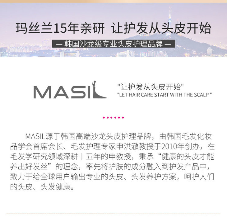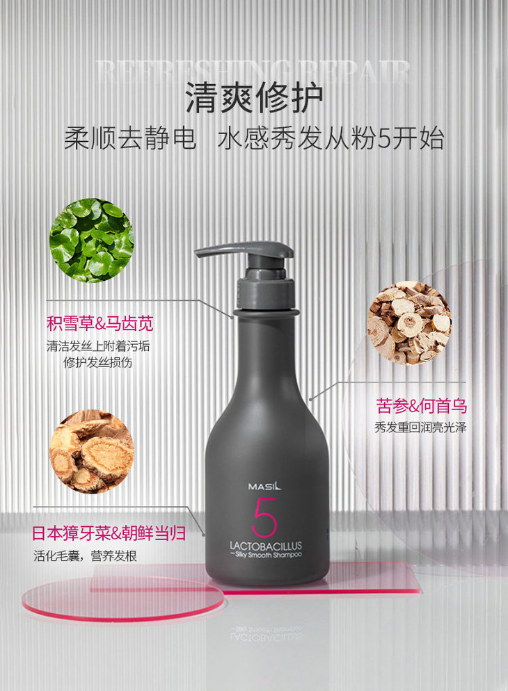 下单即赠3条发膜【护肤级护发新体验】韩国Masil5代乳酸杆菌控油修护洗发水 持久控油 柔顺去静电 蓬松去屑无硅油