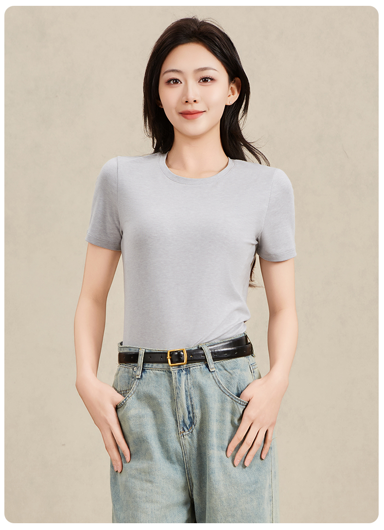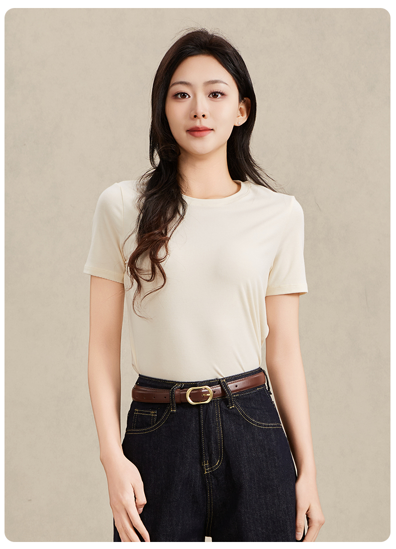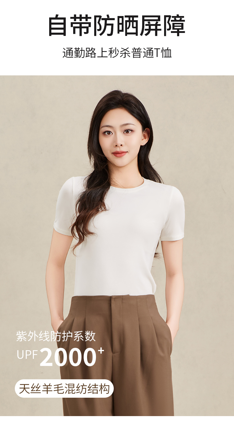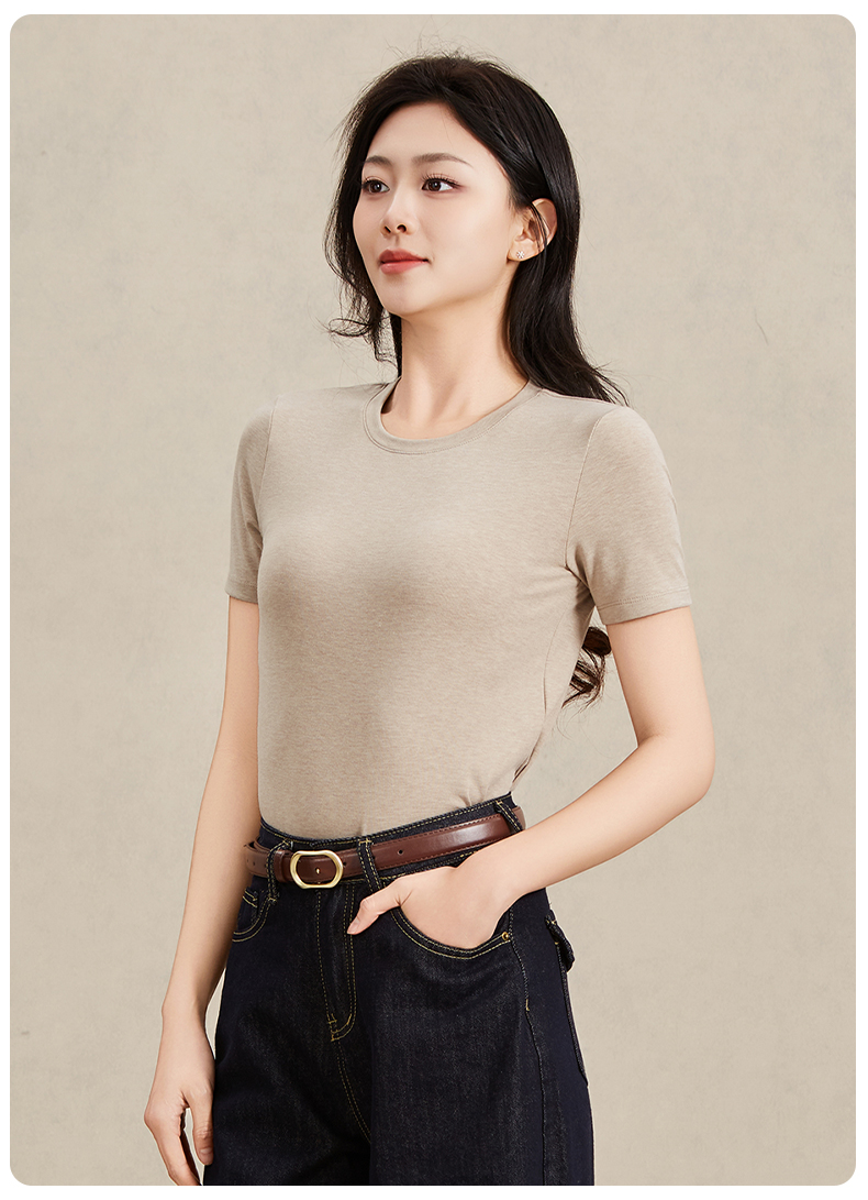 爱帝女士莱赛尔天丝羊毛短袖T恤衫夏季凉感T