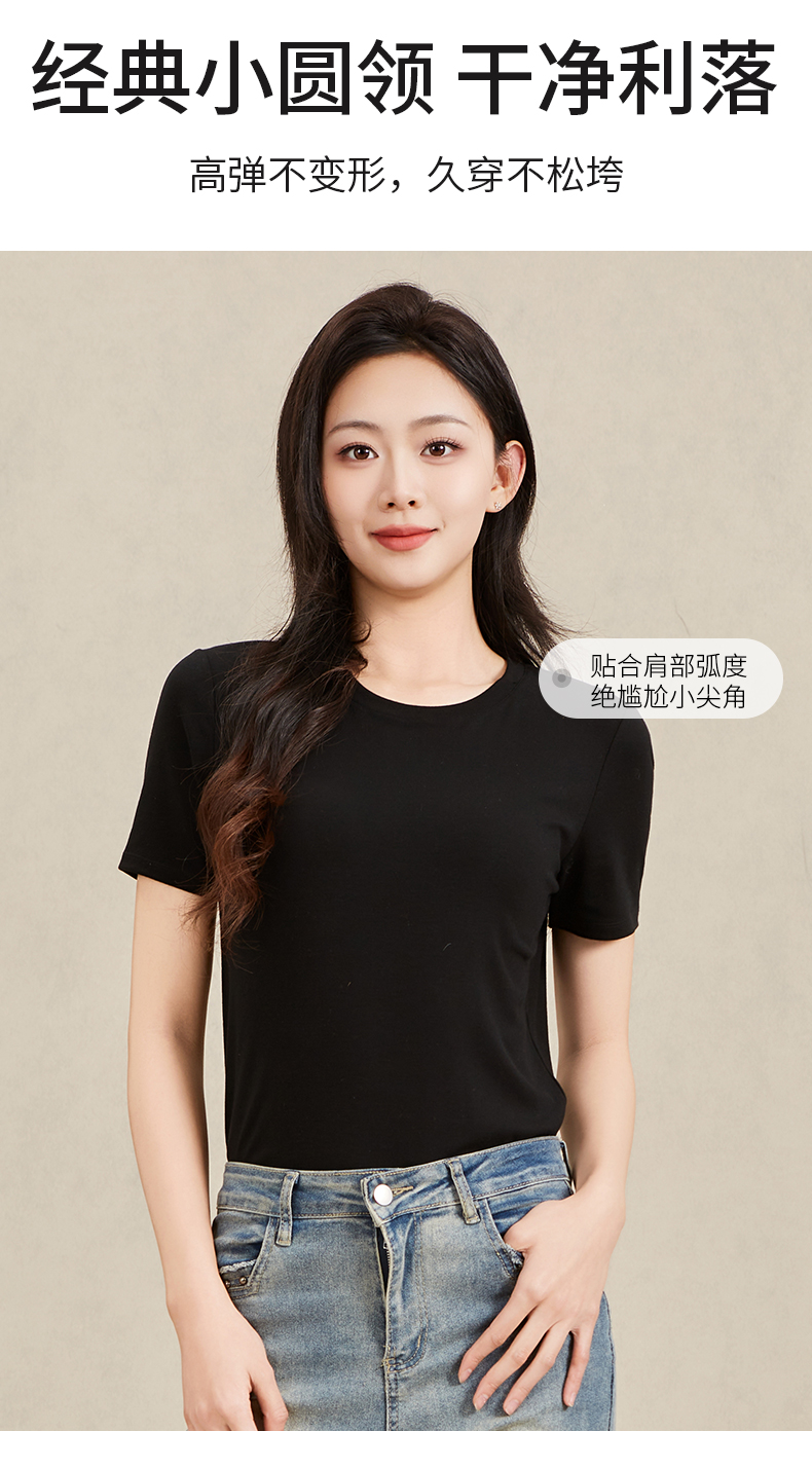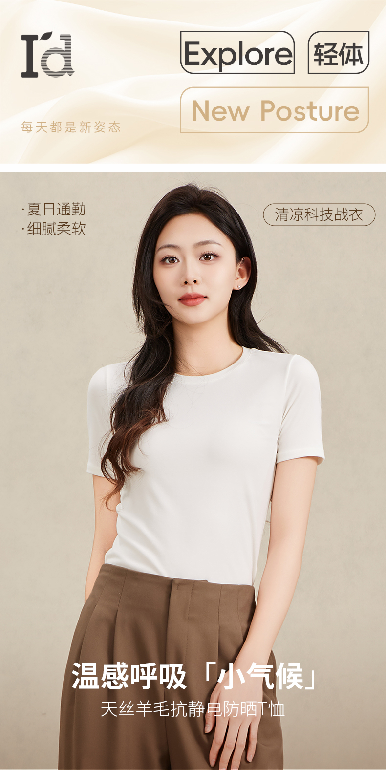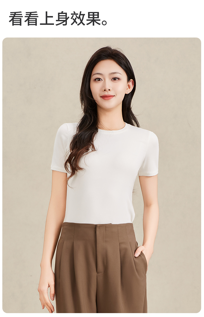 爱帝女士莱赛尔天丝羊毛短袖T恤衫夏季凉感T