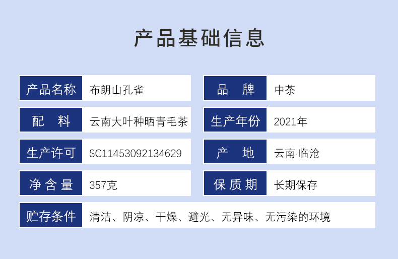 普洱生茶丨中茶 2021年 六星布朗山孔雀 357g