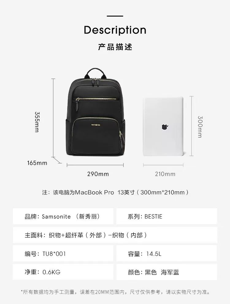 新秀丽Samsonite 轻便防水 双肩 中号休闲女背包