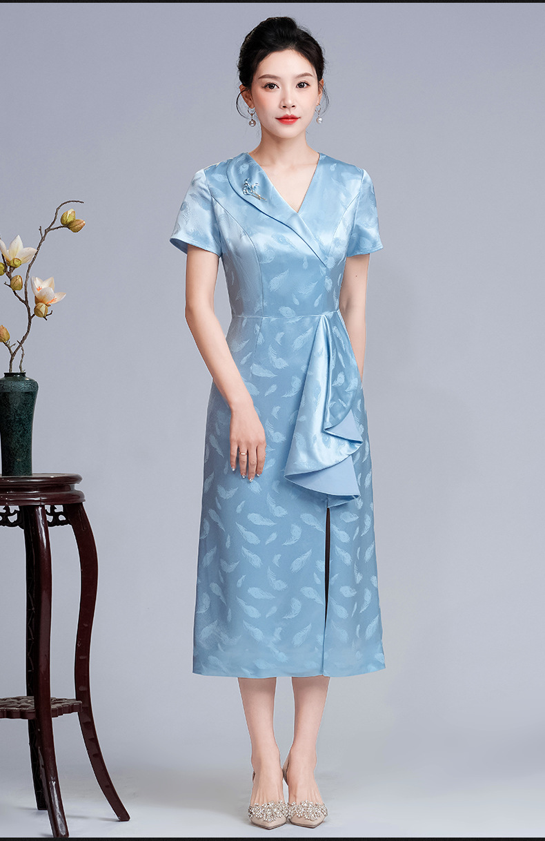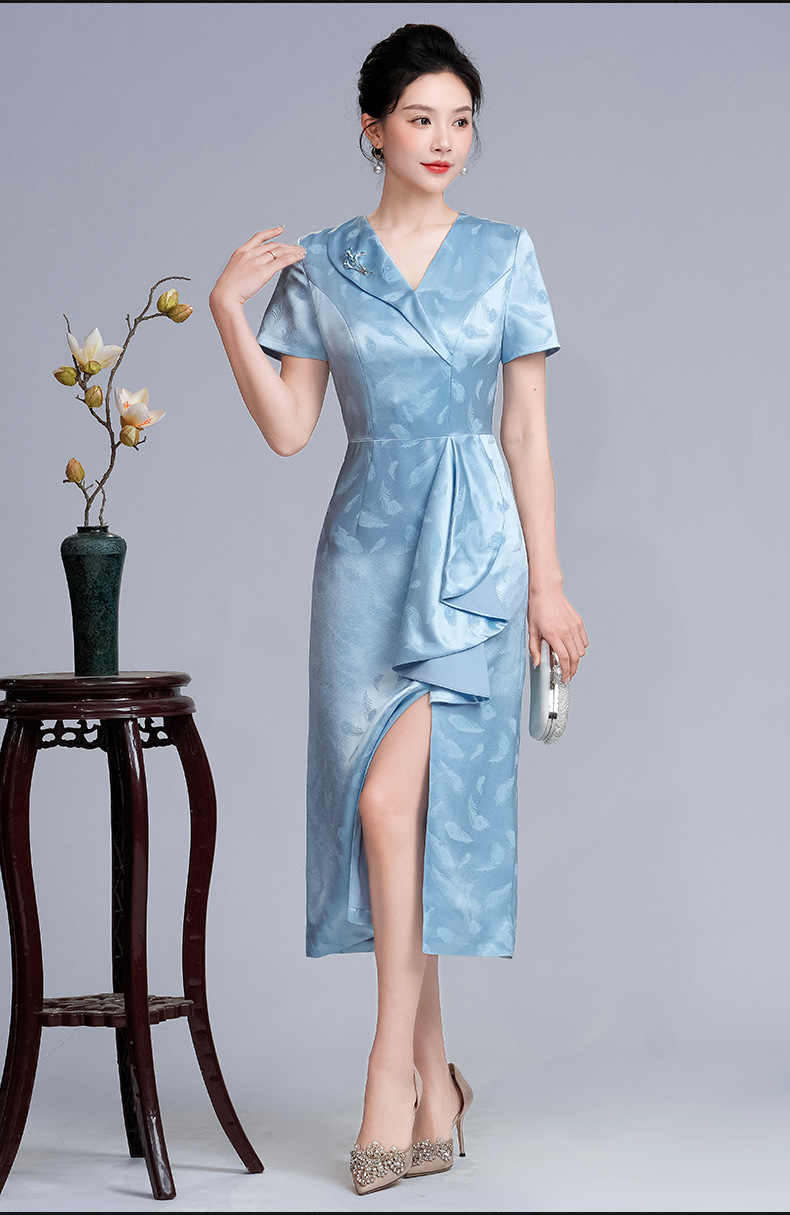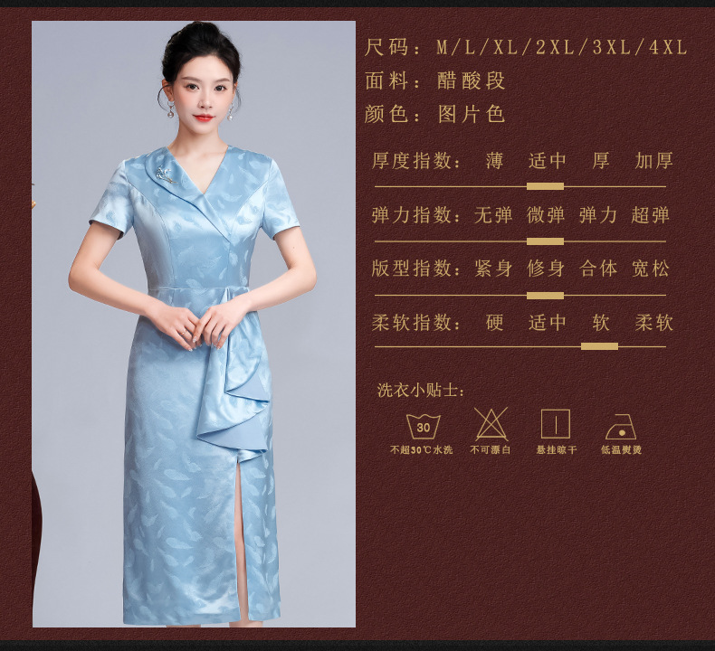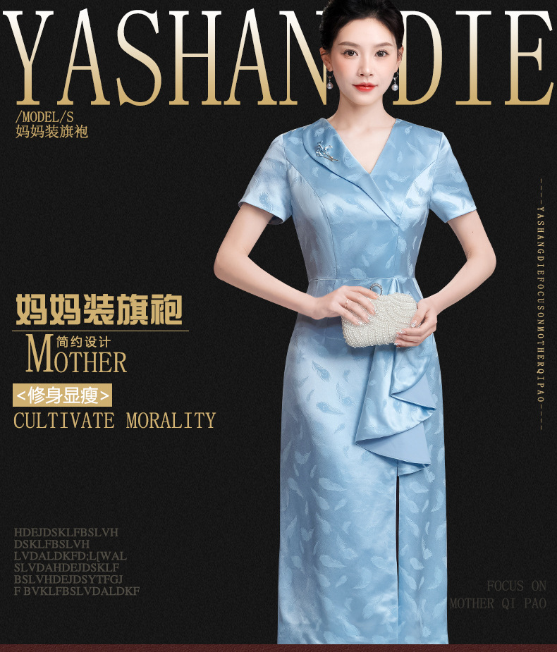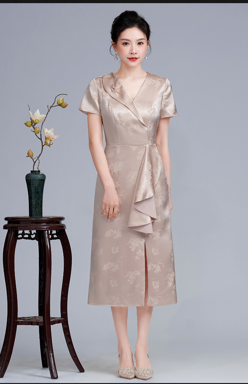 醋酸缎旗袍裙年轻婆婆婚宴,妈妈装显瘦小个子晚礼服LHS-A17