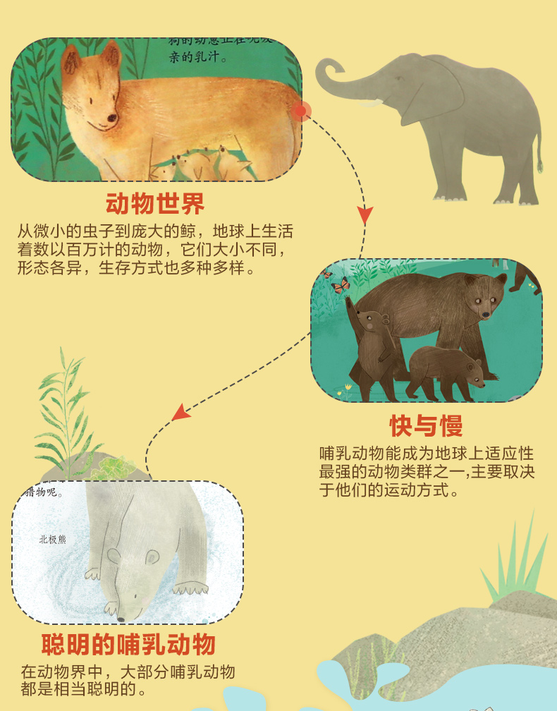 地球上生活着各种各样的动物。海豚有嗅觉吗?食蚁兽一天能吃多少只蚂蚁?斑马身上的条纹有什么用?旱獭是如何过冬的?人类活动对动物造成了哪些影响?我们该如何保护动物?本书将通过翻翻页的有趣形式,带领孩子进入奇妙的动物王国,让孩子了解众多动物相关的趣味知识,感受生命形式的多姿多彩,体悟生命的珍贵。