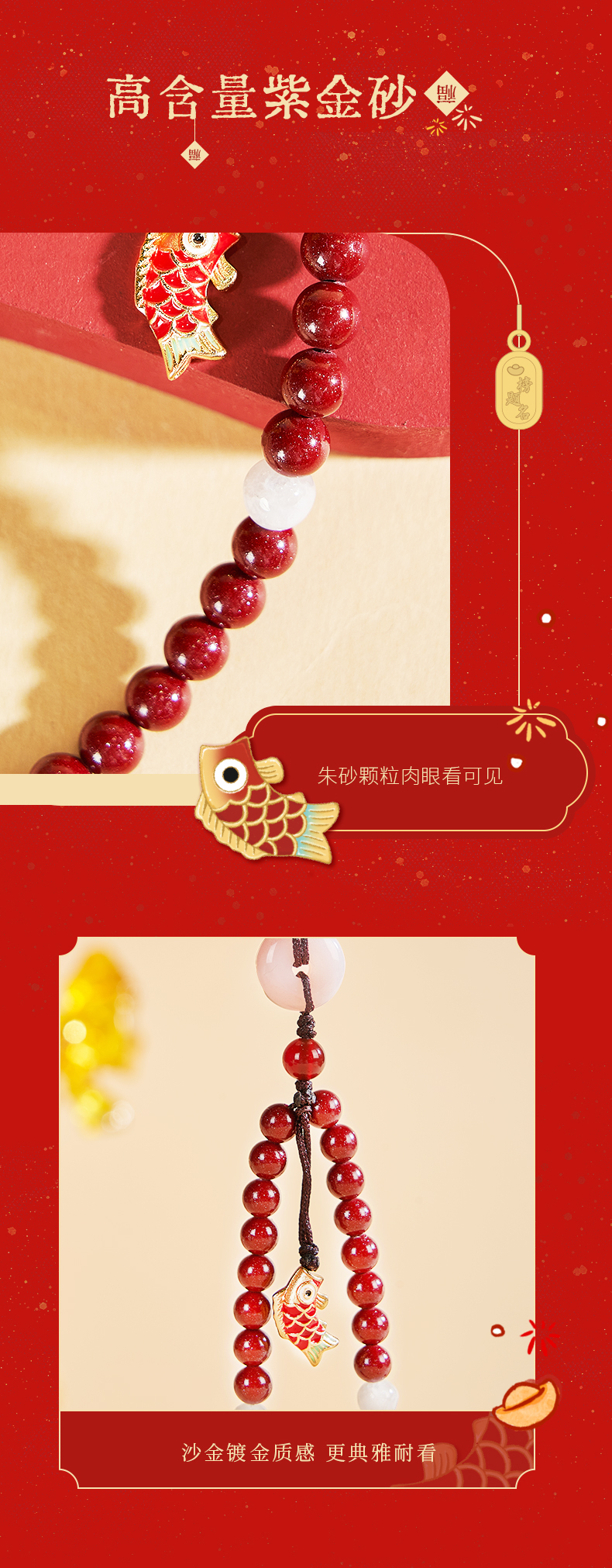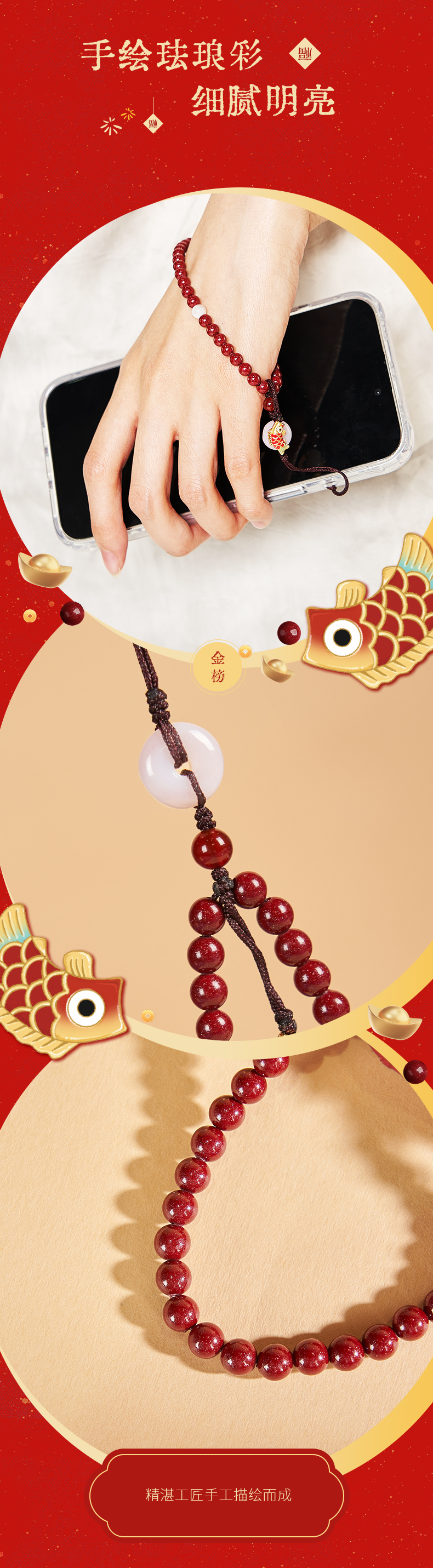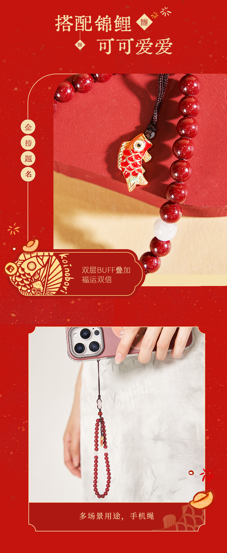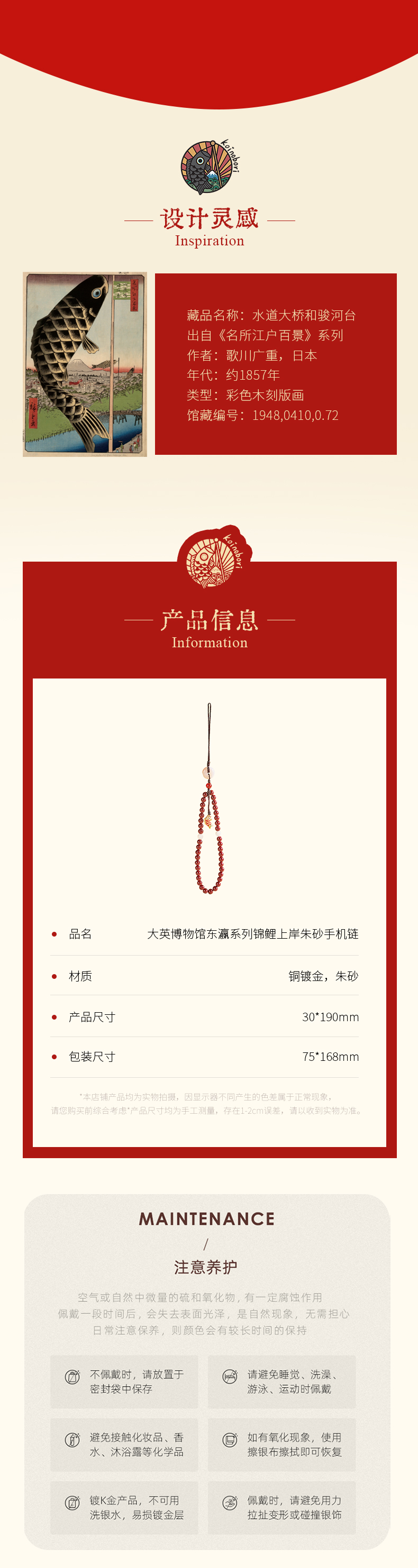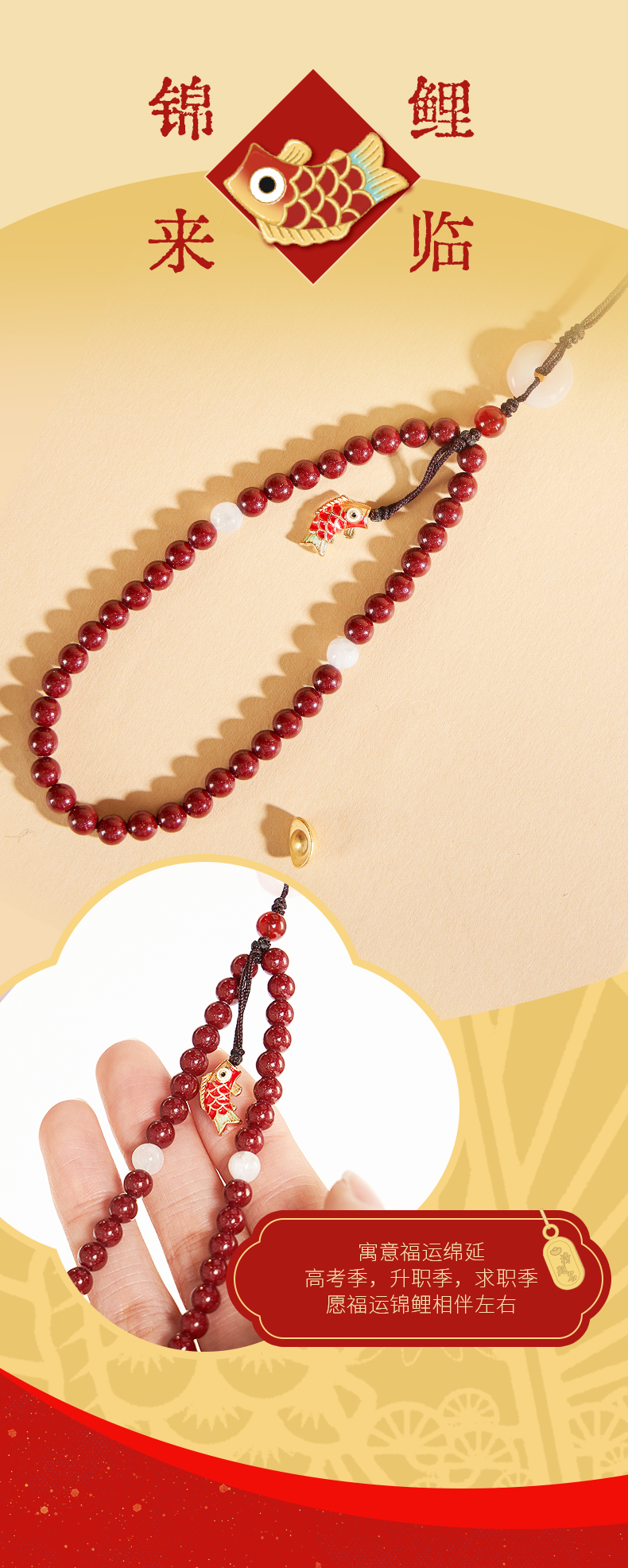 大英博物馆 东瀛系列 锦鲤上岸朱砂 手机链
