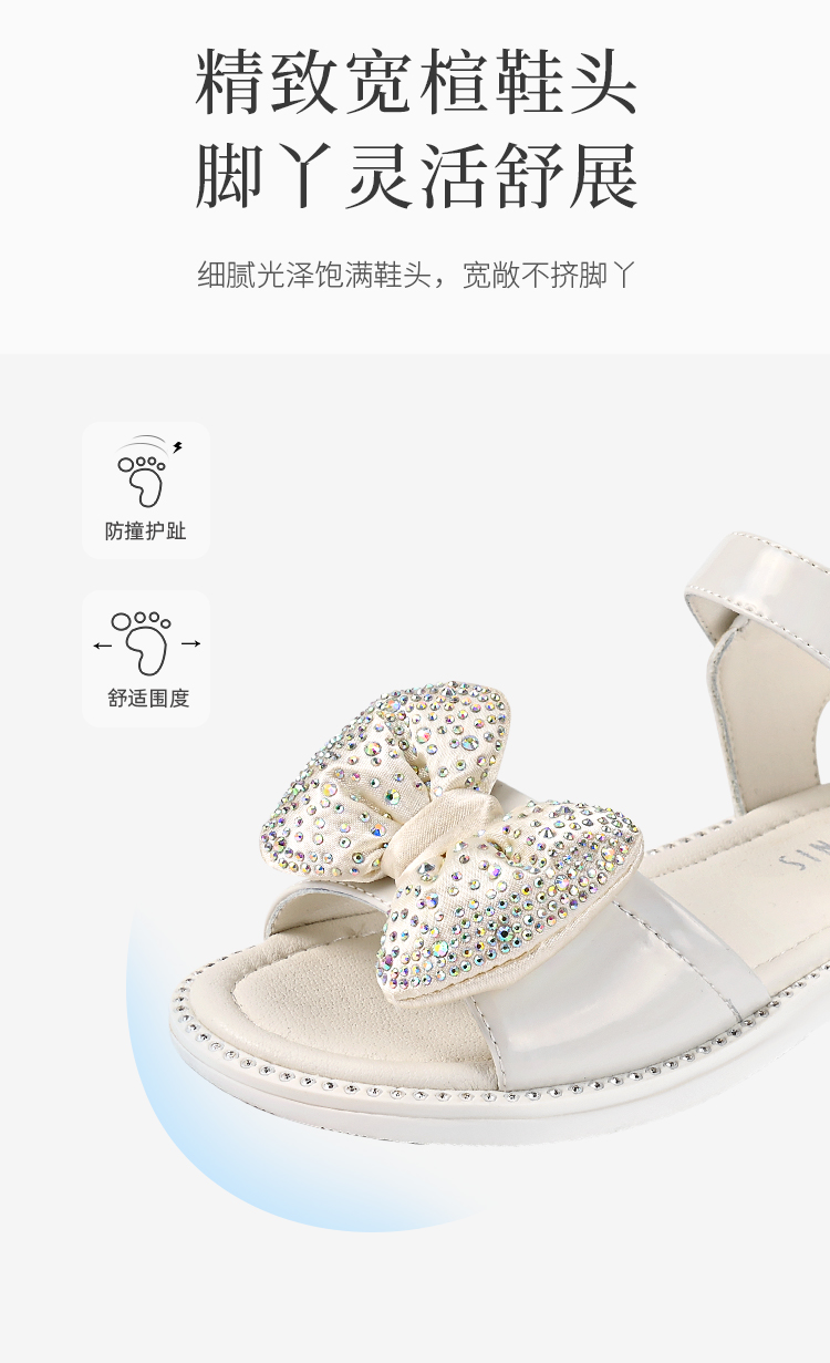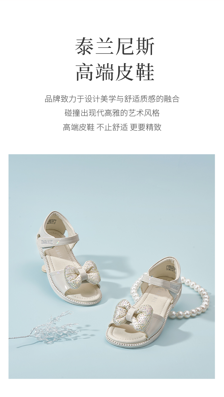 泰兰尼斯夏季中大童烫钻蝴蝶结女童凉鞋T07D2B1789