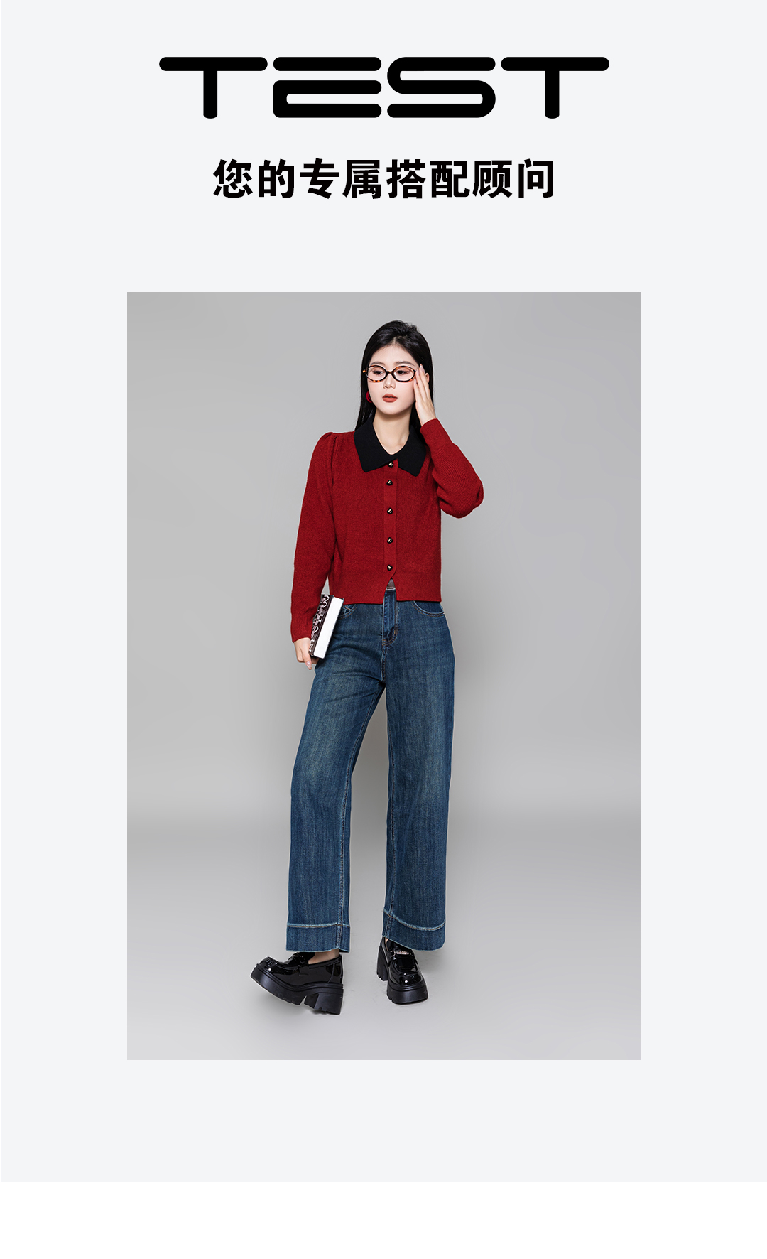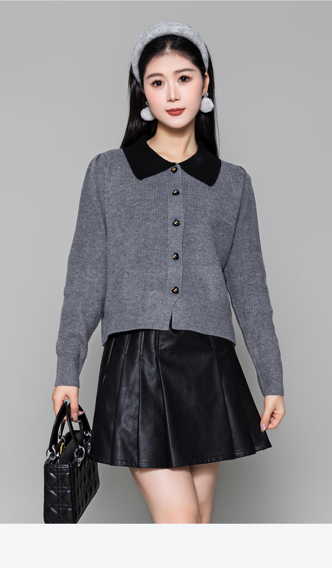 冬上新氛围感必备双色拼接娃娃领开衫毛衣1254045 商品图6