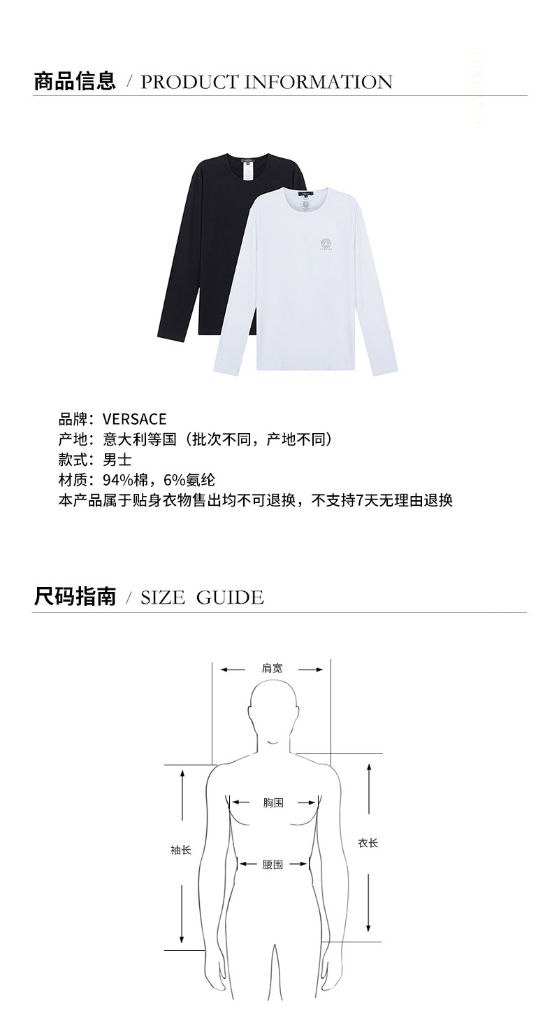 VERSACE/范思哲 2021款 男士长袖T恤 男士棉质圆领长袖内衣T恤两件套装 AU10197 A232741