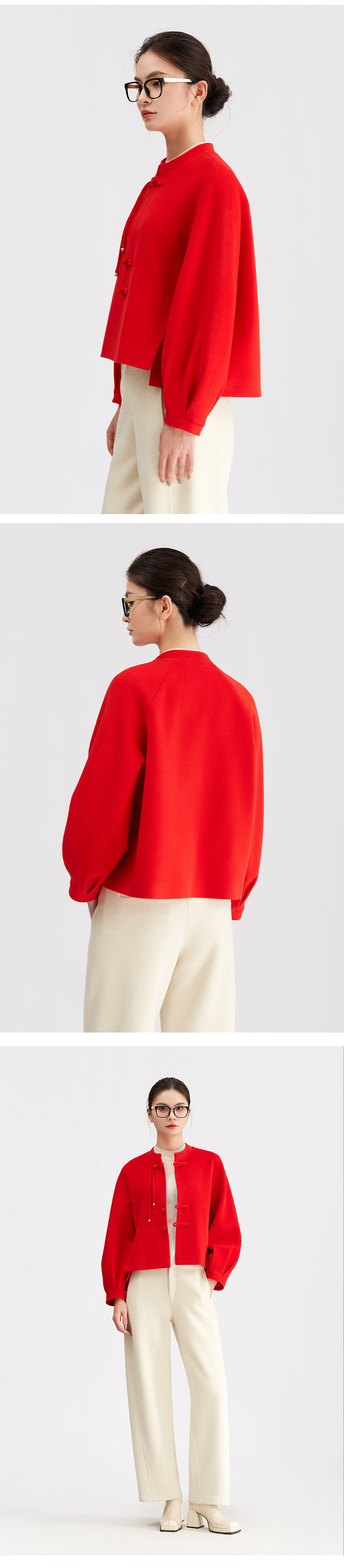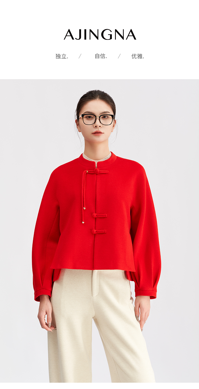 【商场同款】阿菁娜冬季新款盘扣坠扣针织衫插肩薄背设计喇叭袖中式雅致小众上衣A30D107027