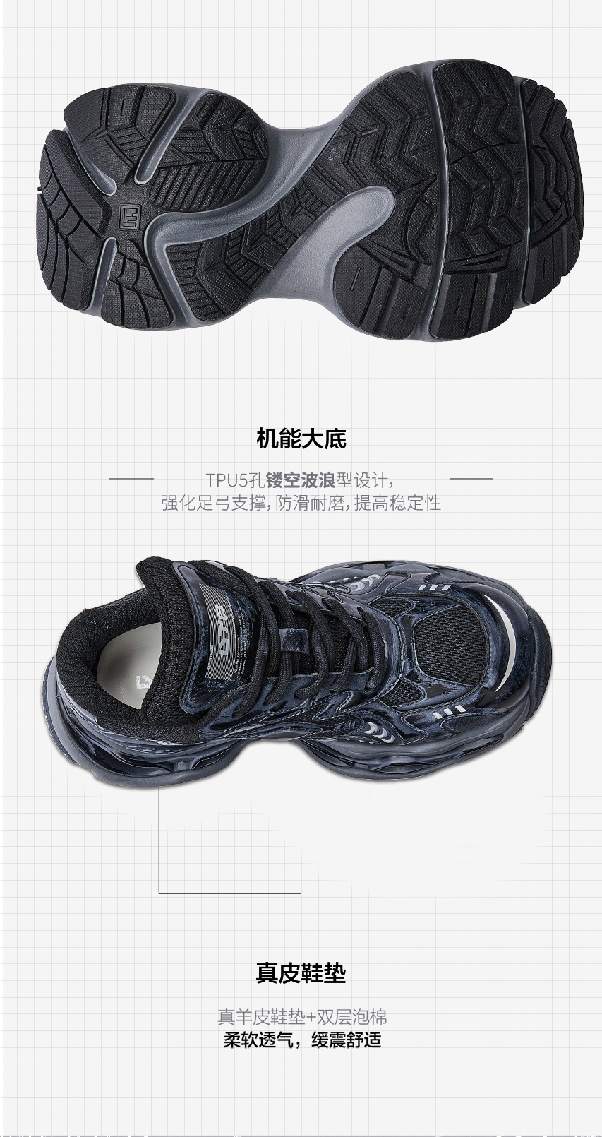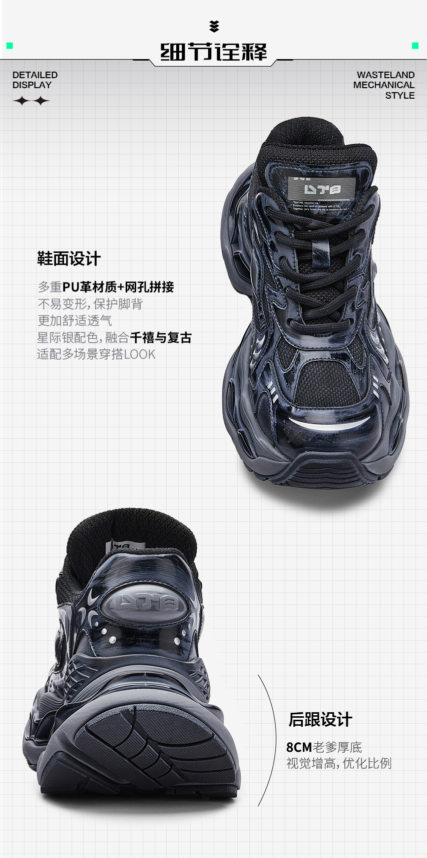 UTB先知者系列男女同款厚底老爹鞋新款潮流运动鞋 宇宙黑