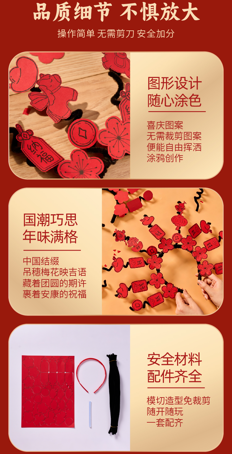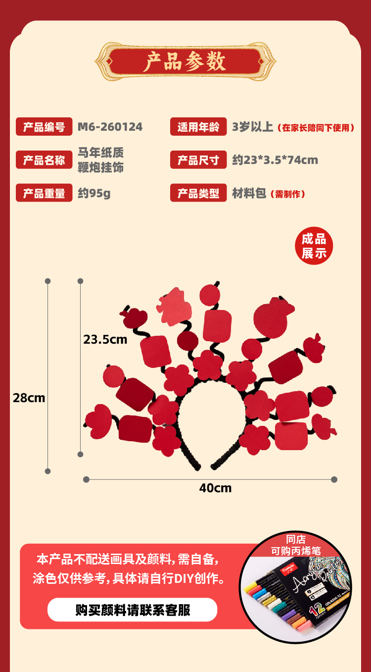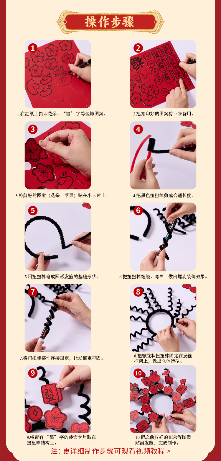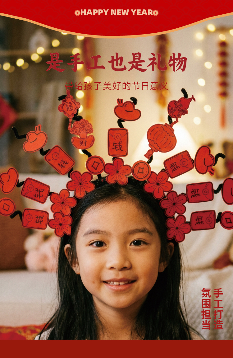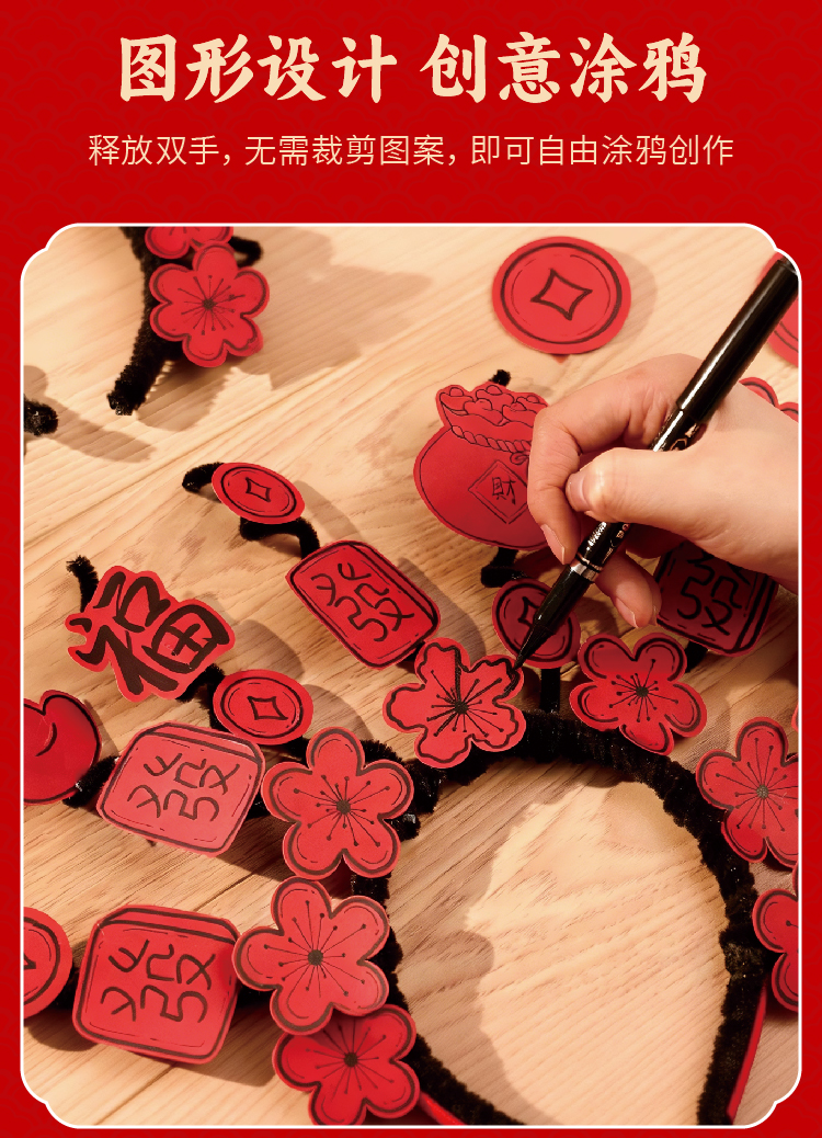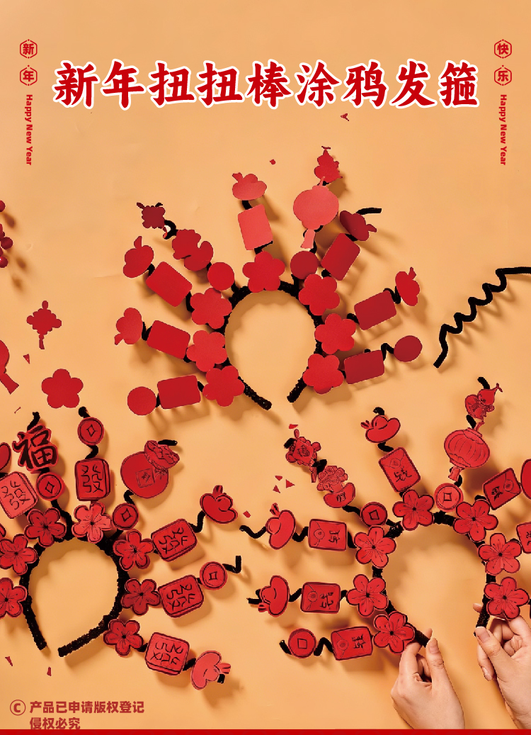马年春节元旦新年扭扭棒涂鸦发箍手工diy儿童材料幼儿园创意美术