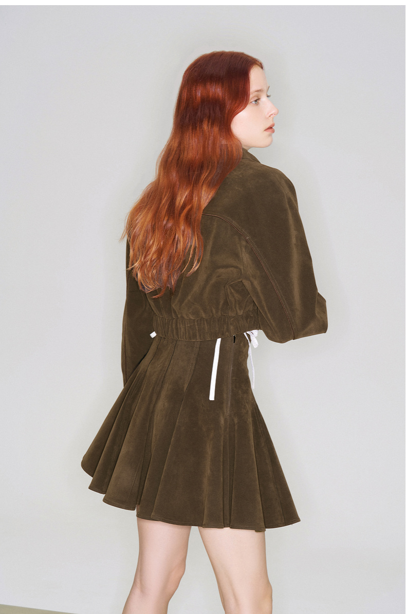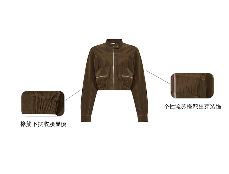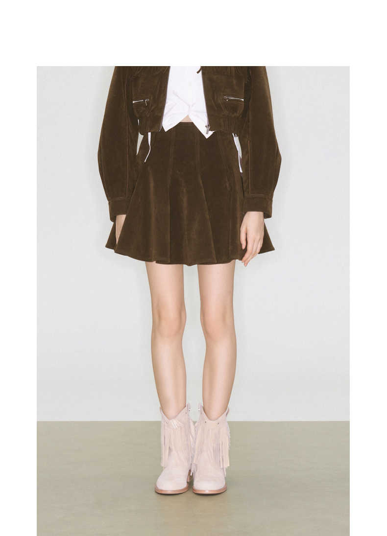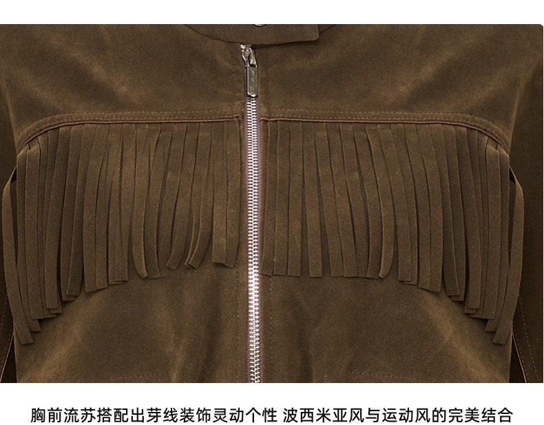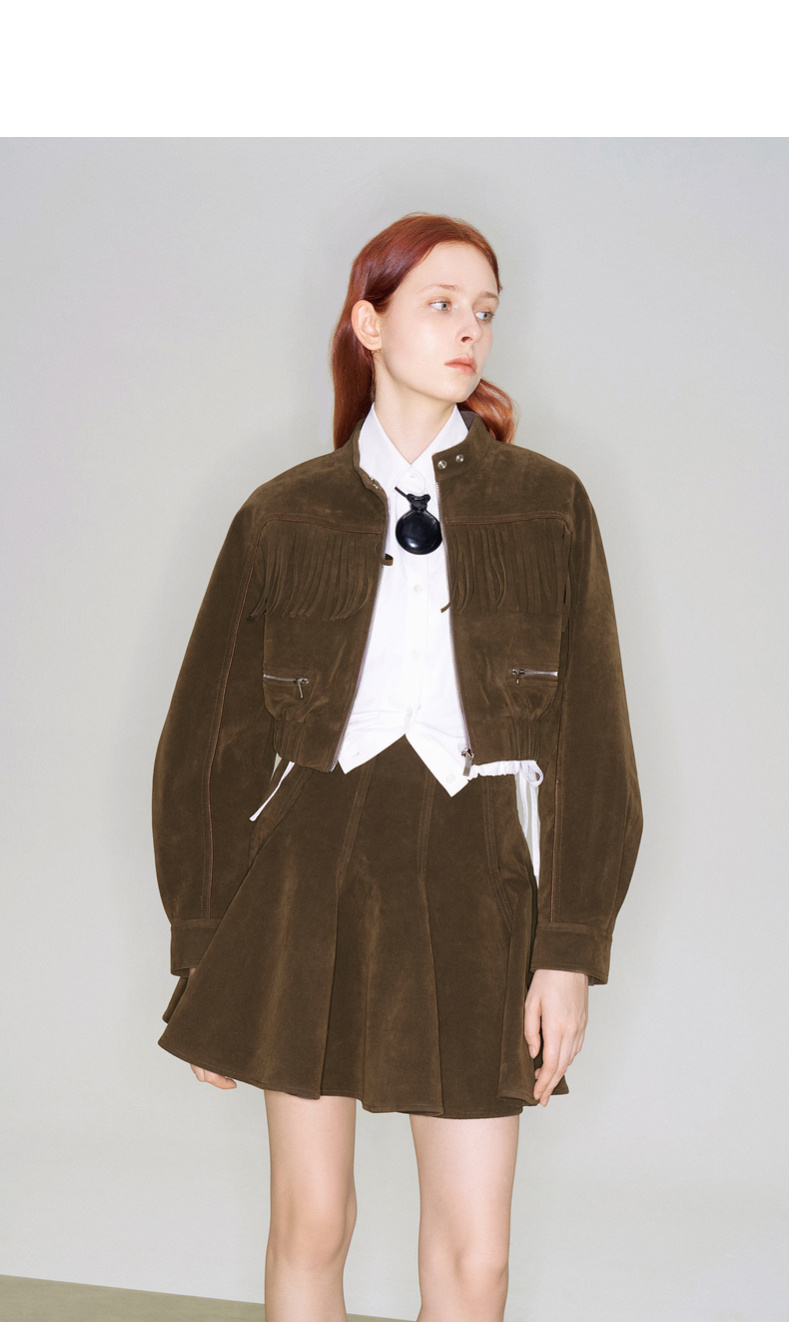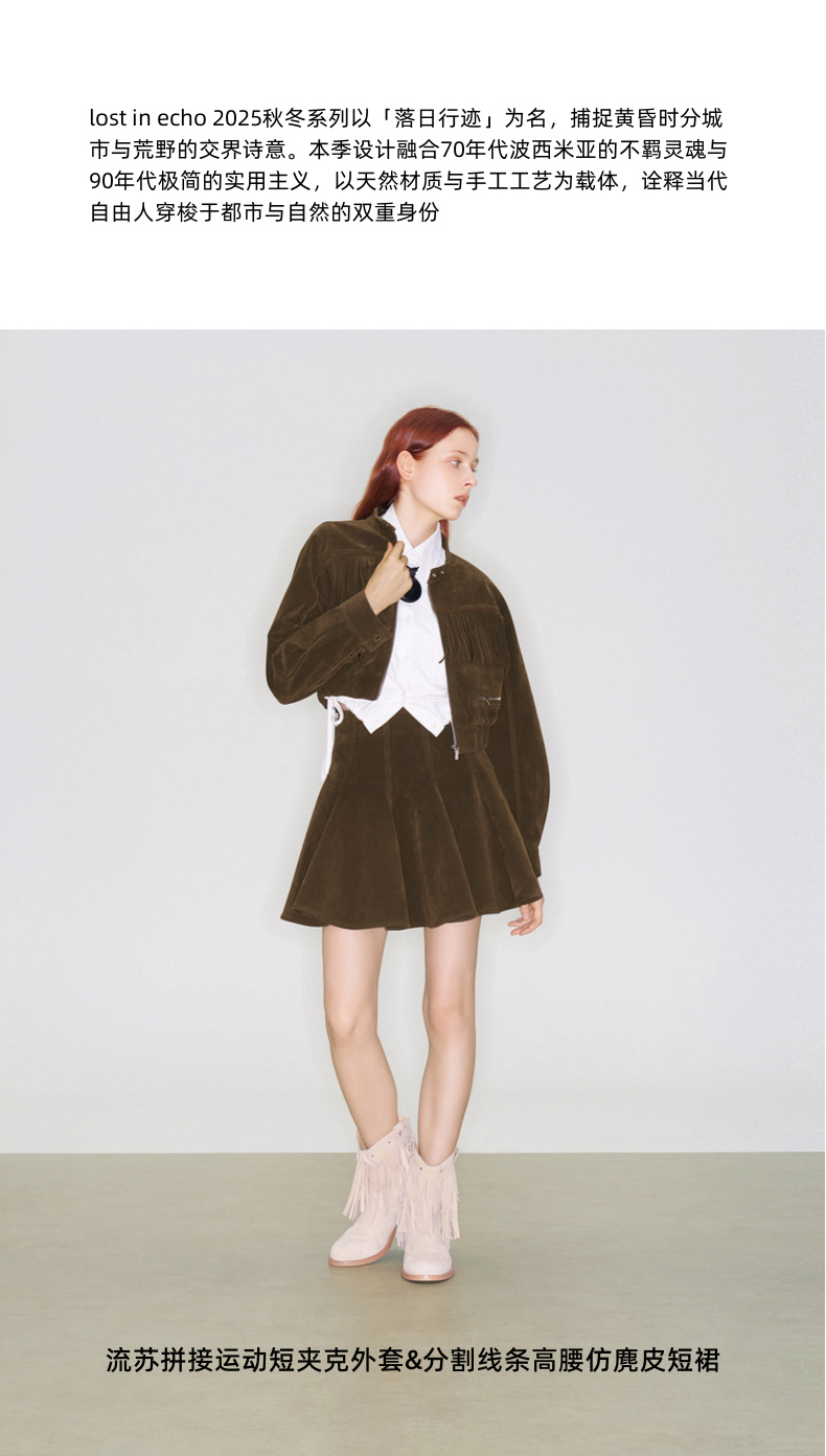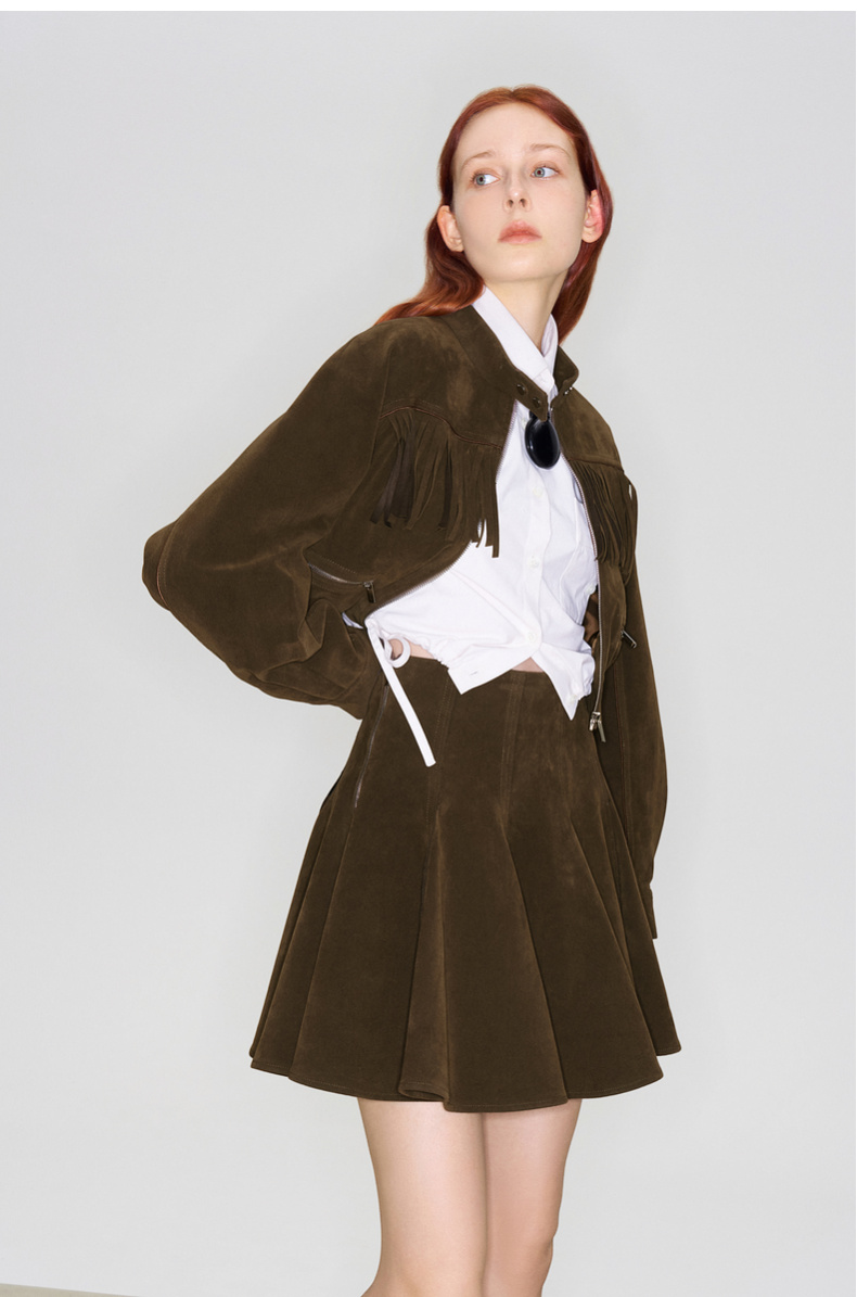lost in echo2025早秋新款波西米亚仿麂皮流苏短夹克外套高腰短裙