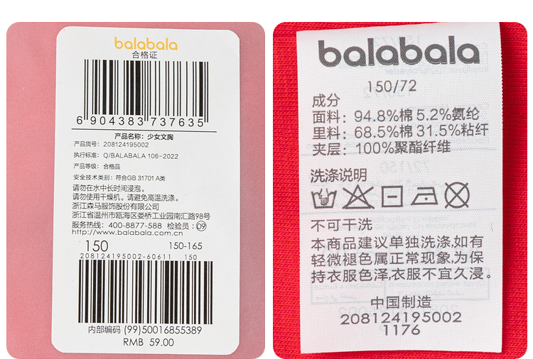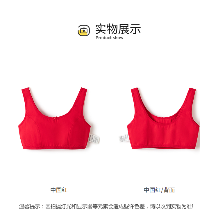 【断码捡漏】巴拉巴拉女童内衣发育期儿童小背心防凸点防走光文胸红色本命龙年
