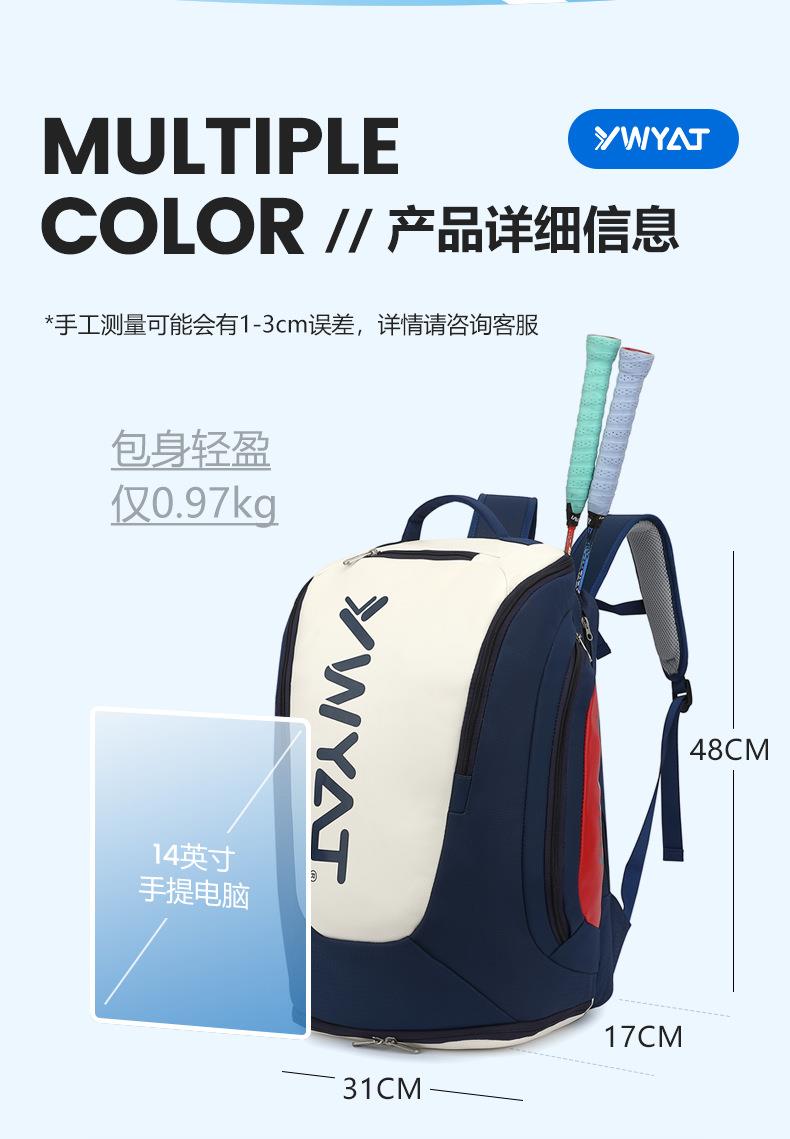 YWYAT/威亚拓羽毛球包双肩包男网球包女运动背包大容量3支装B997