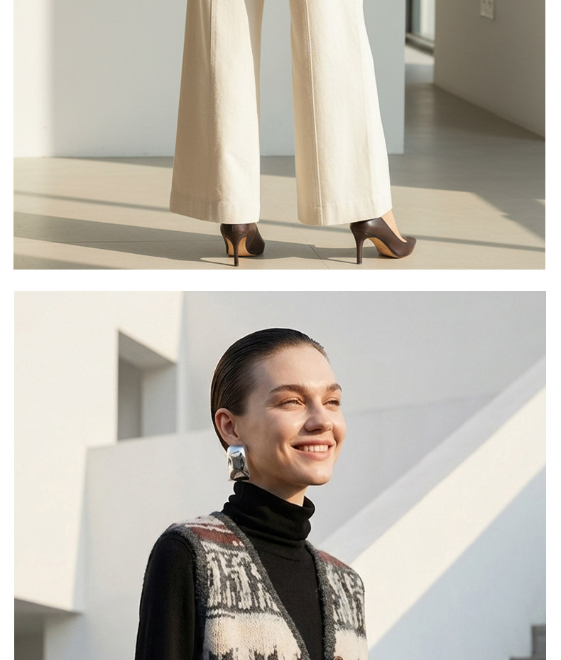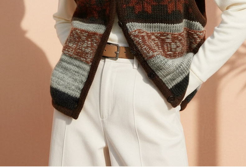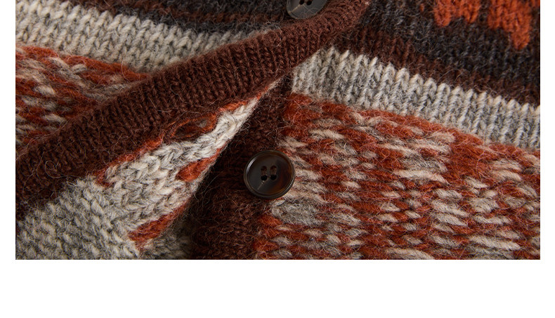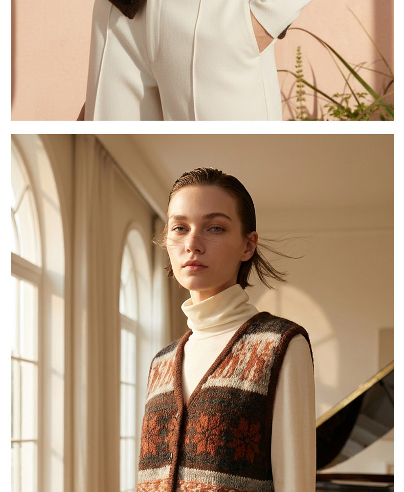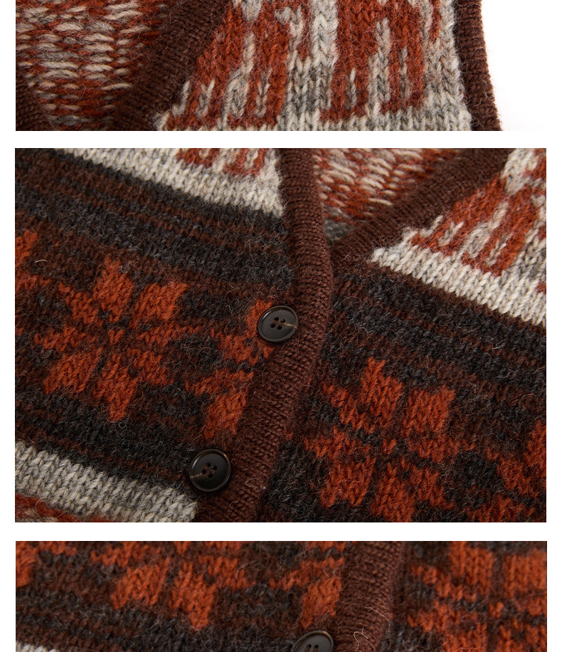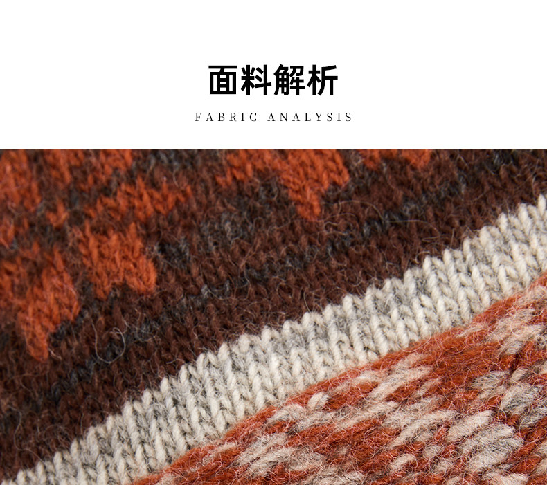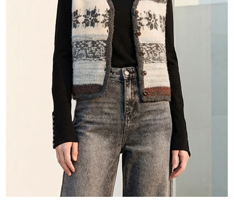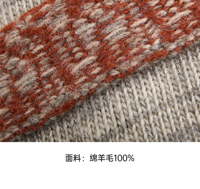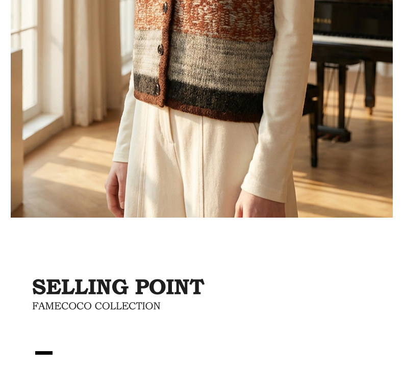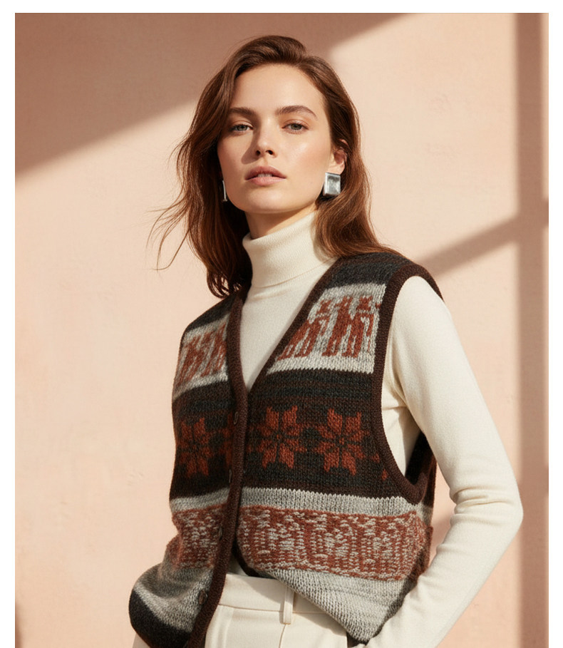 Famecoco范可儿纯羊毛复古文艺粗针提花V领叠穿马甲短款FAD8CA105