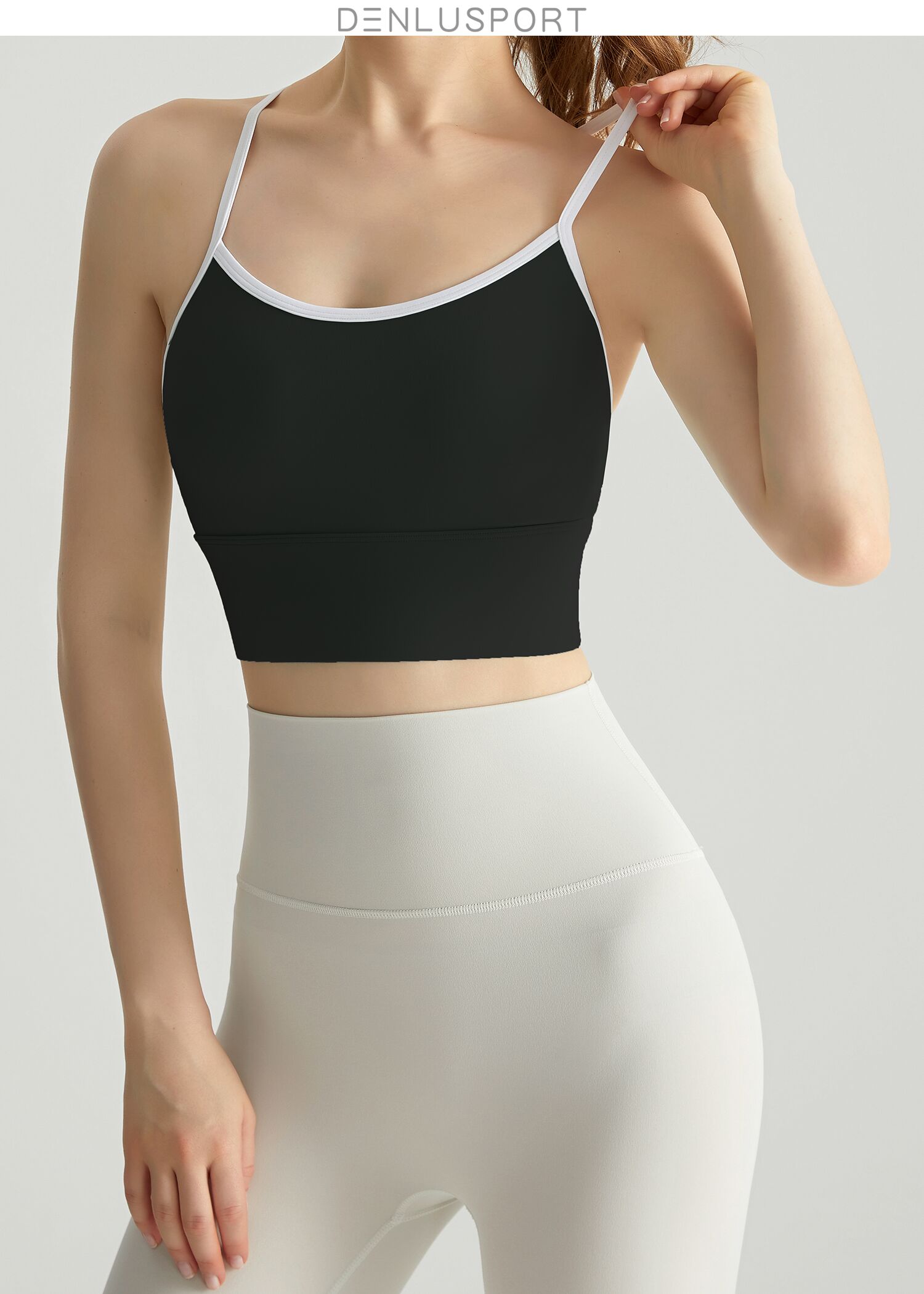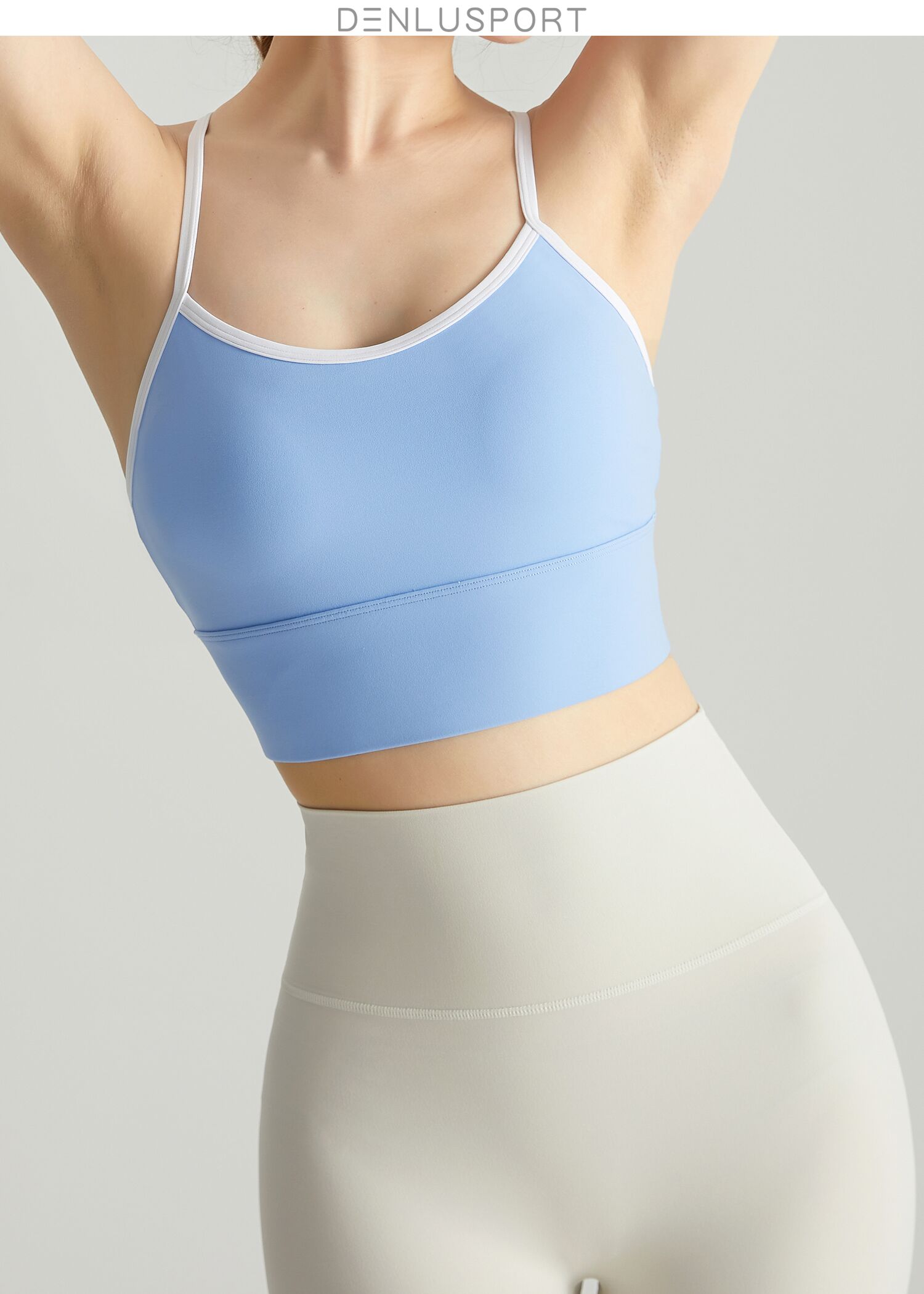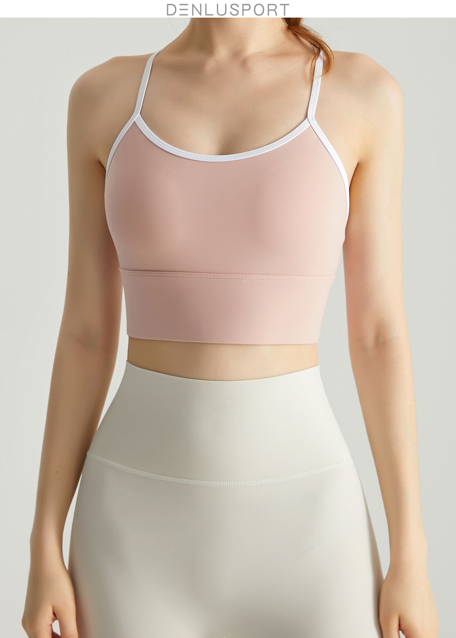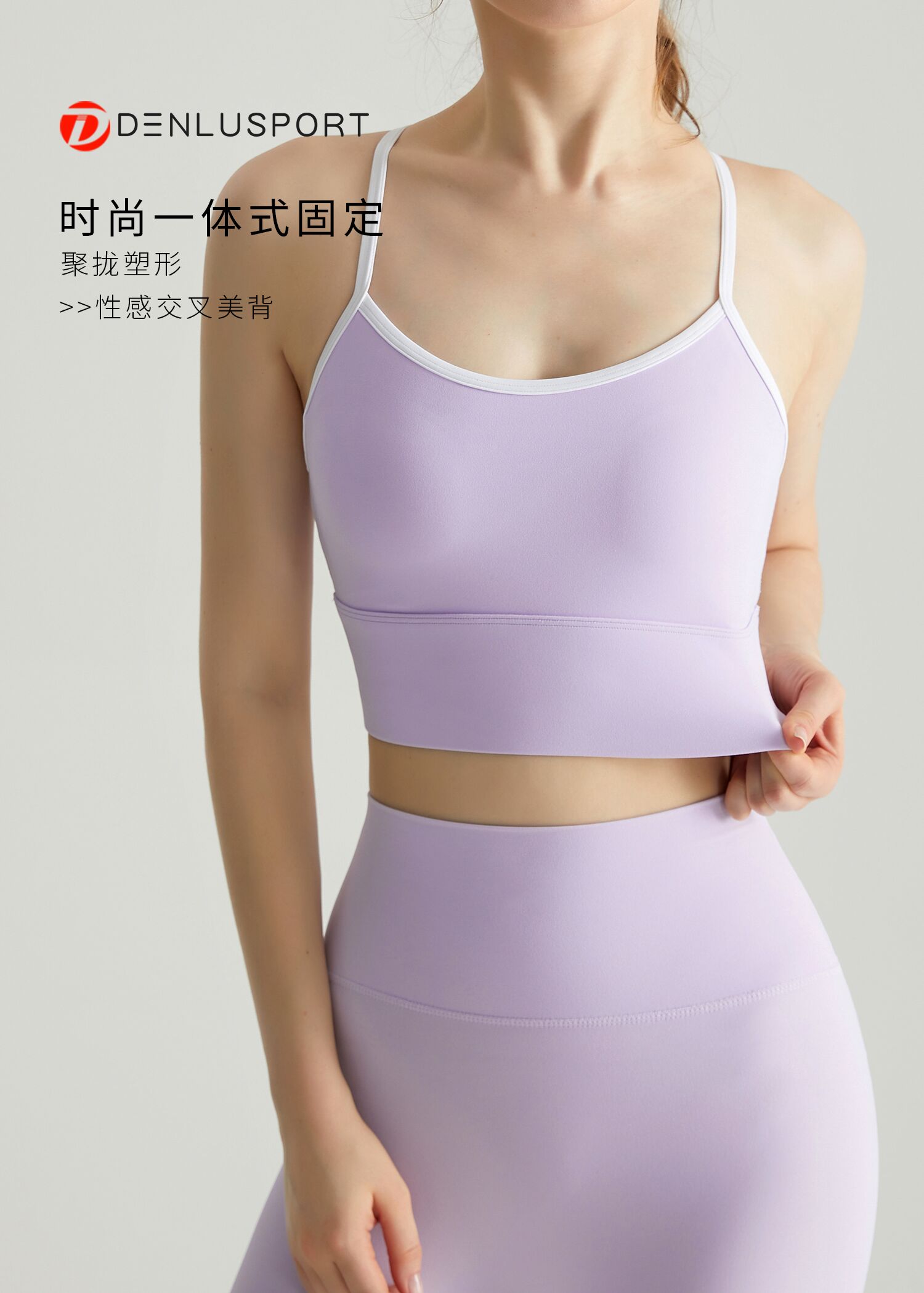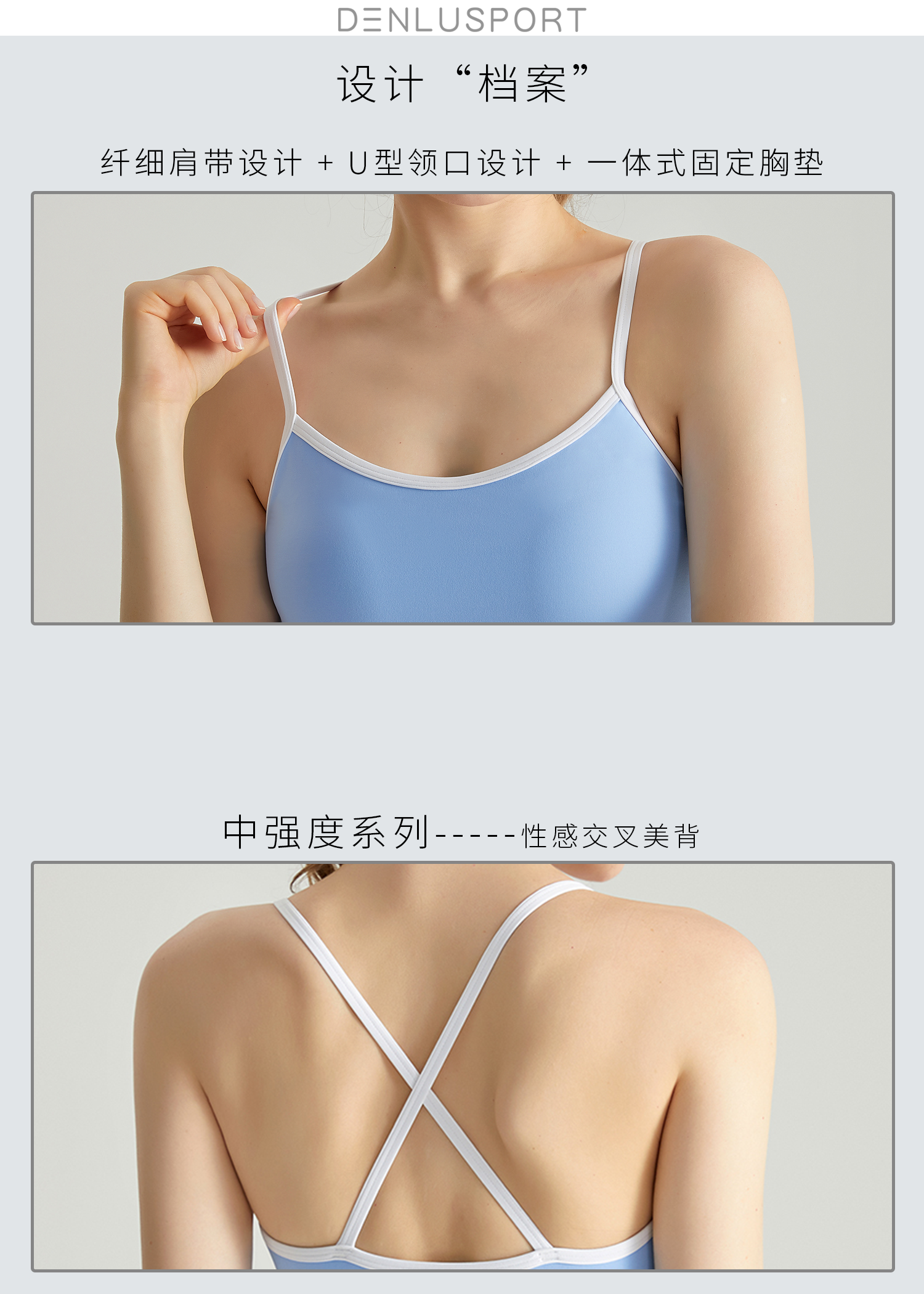 轻运动裸感高弹一体运动文胸DY66042#一体固定聚拢塑形性感交叉美背设计纤细肩带U型领口透气舒适