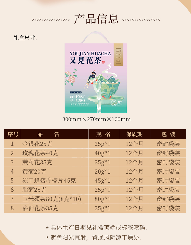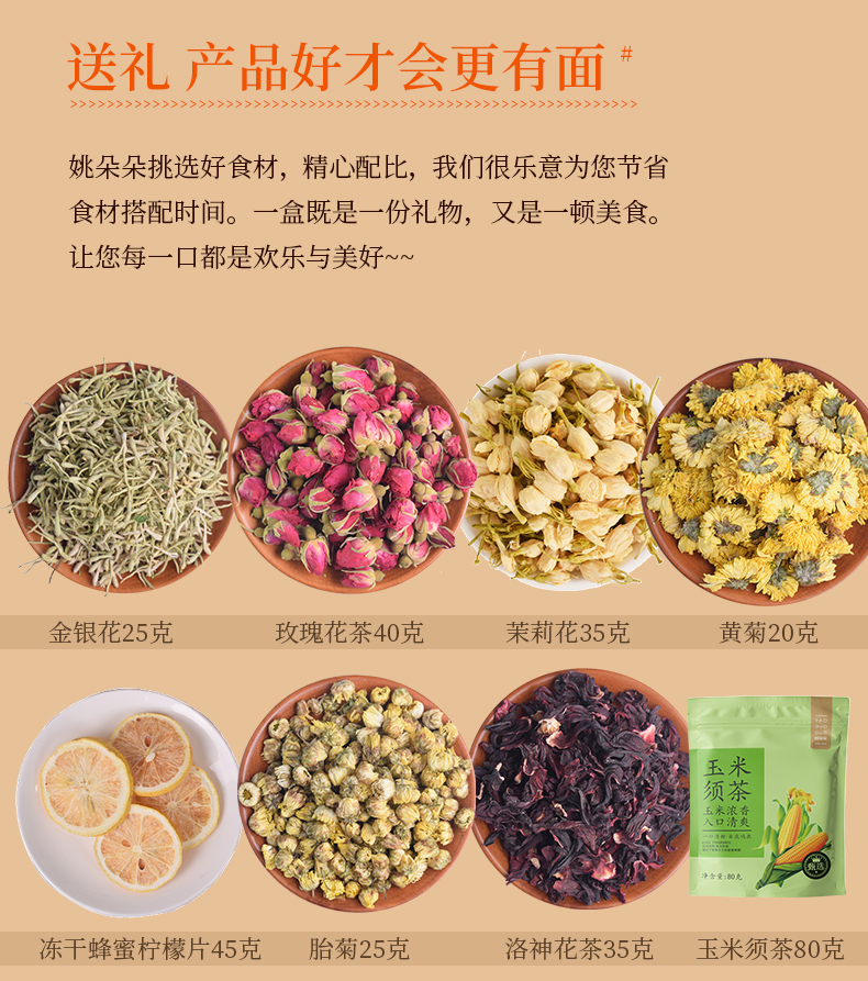 姚朵朵 又见花茶礼盒305克 玫瑰花茶胎菊茉莉花