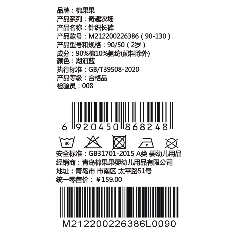 | 总裤长 | 51 | 56.5 | 62.5 | 68.5 | 75 |