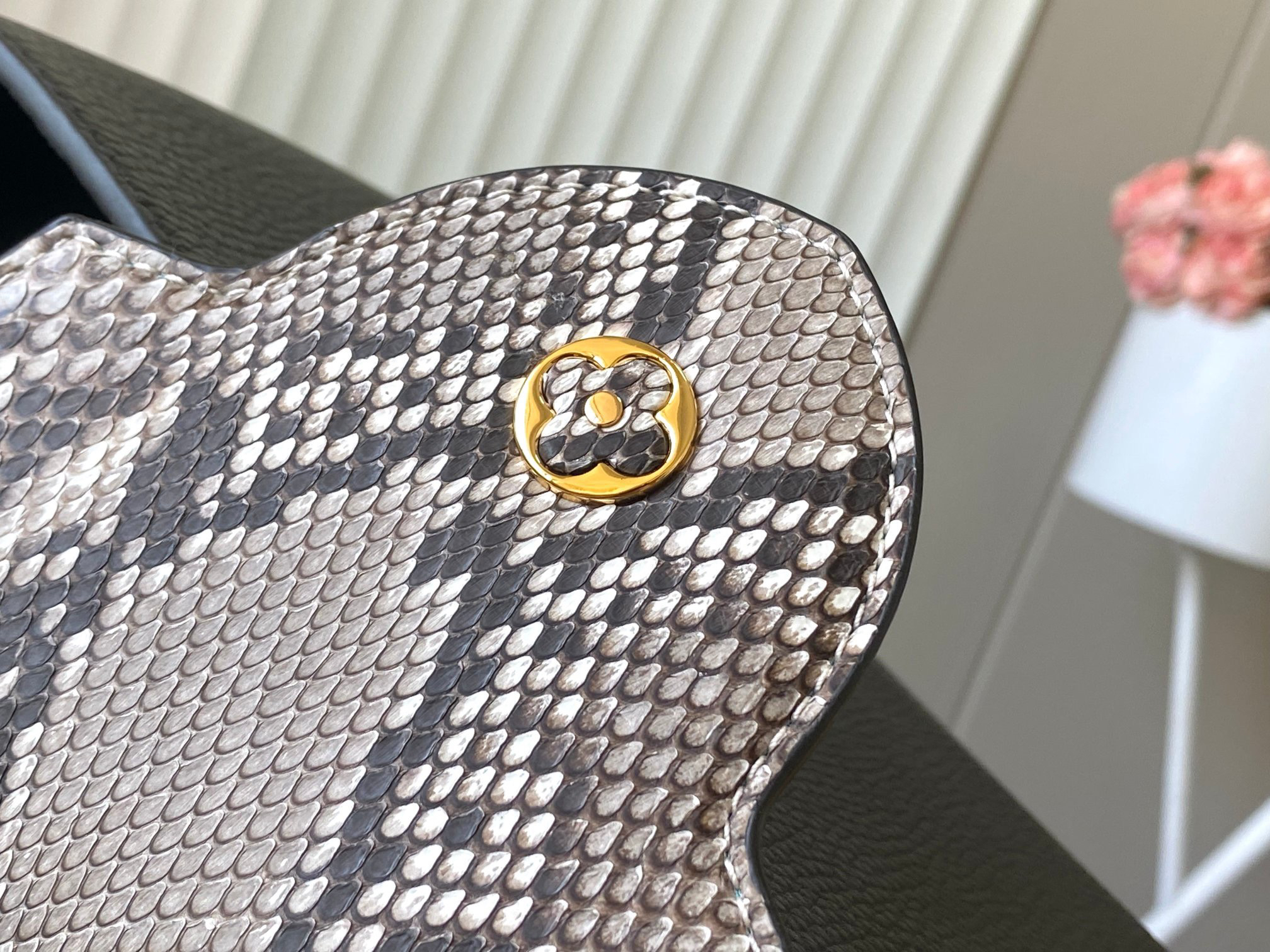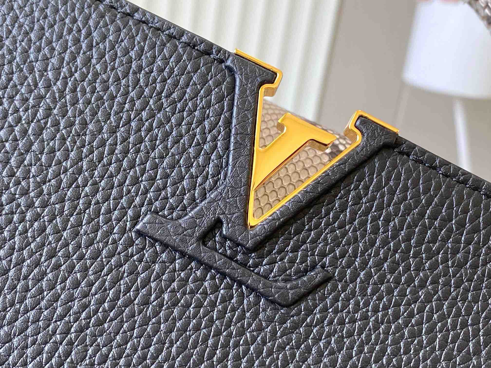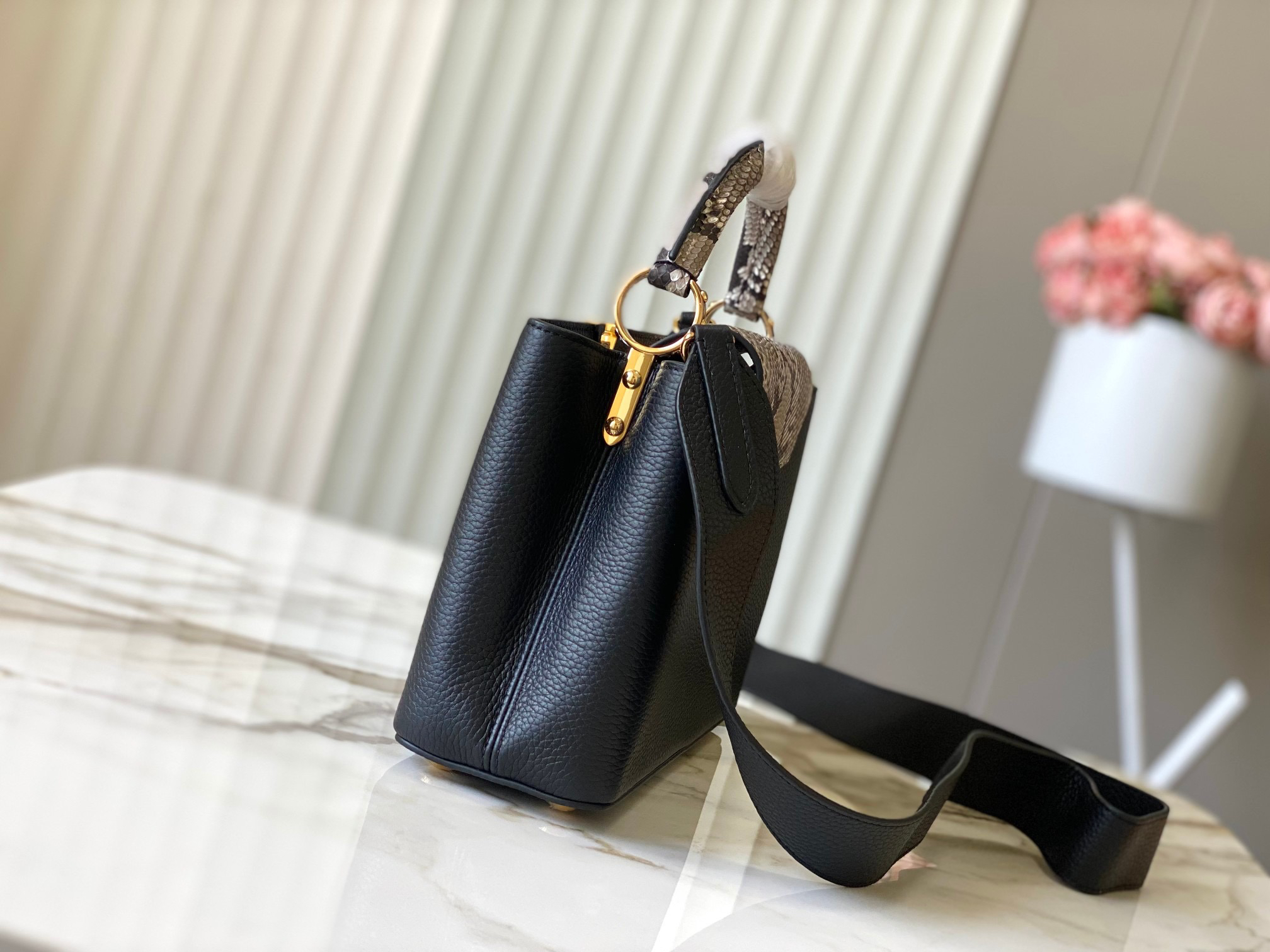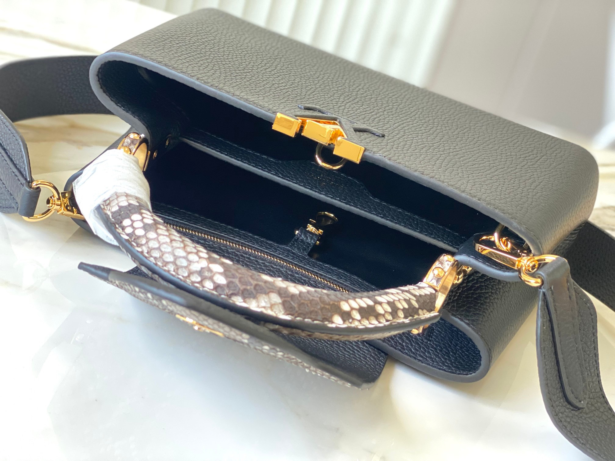 秋冬特惠💰1650 渠道级LV te级LV 全套包装 N99387/M48865黑 本款 Capucines BB号手袋以全粒面 Taurillon 皮革塑造精巧构型 搭配ding部手柄、两式翻盖及莹泽蟒蛇皮勾勒的 标识 成就昼夜皆宜的华美之选 可拆卸宽肩带令肩背或斜挎展露前卫气息 Size: 27 *18 * 9 cm