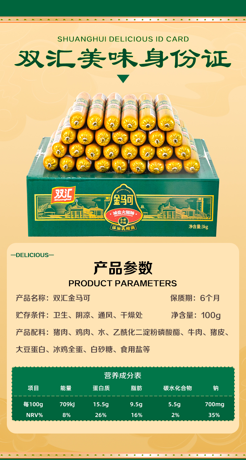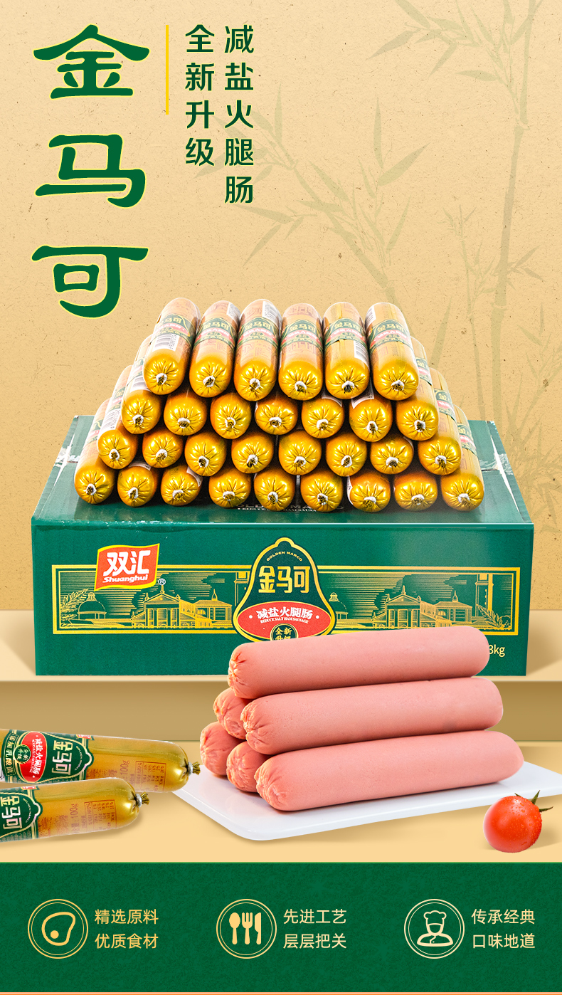 100g/根 双汇 金马可减盐火腿肠 开袋即食 火腿肠添加乳酸菌零食香肠