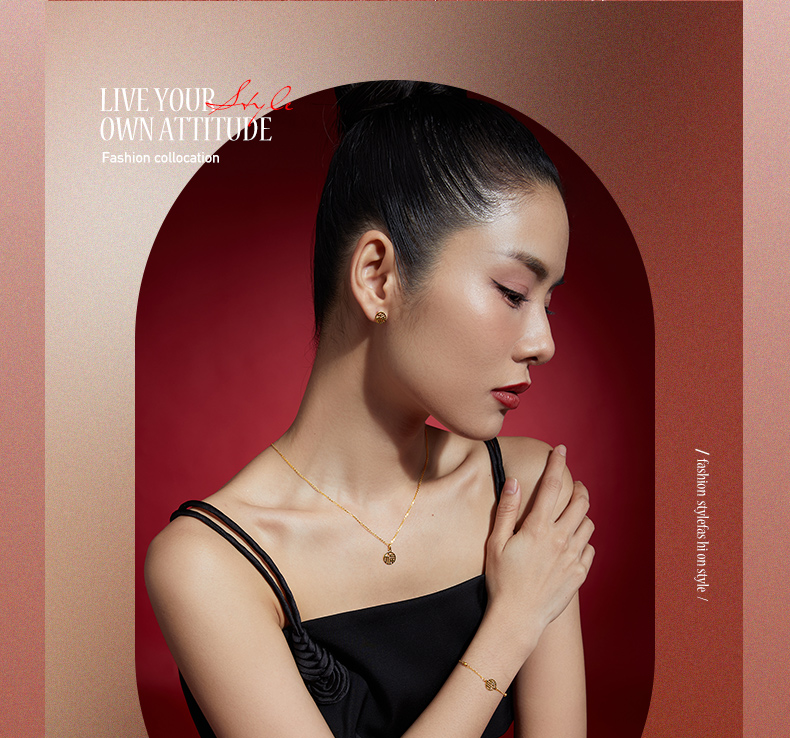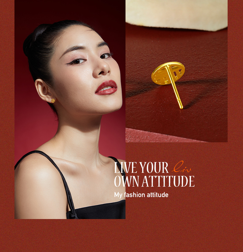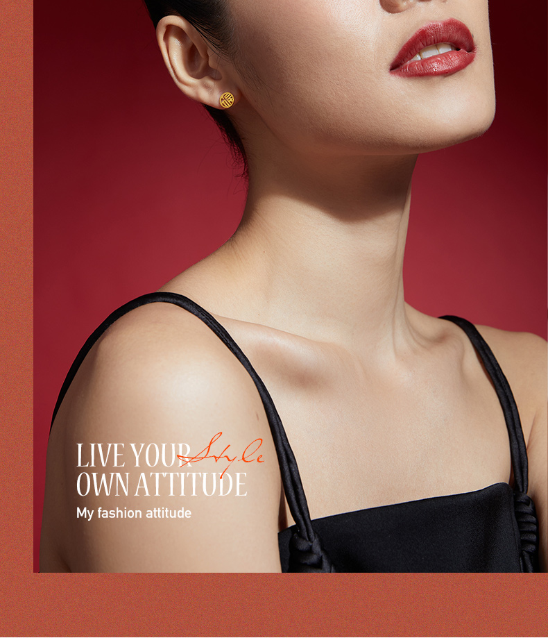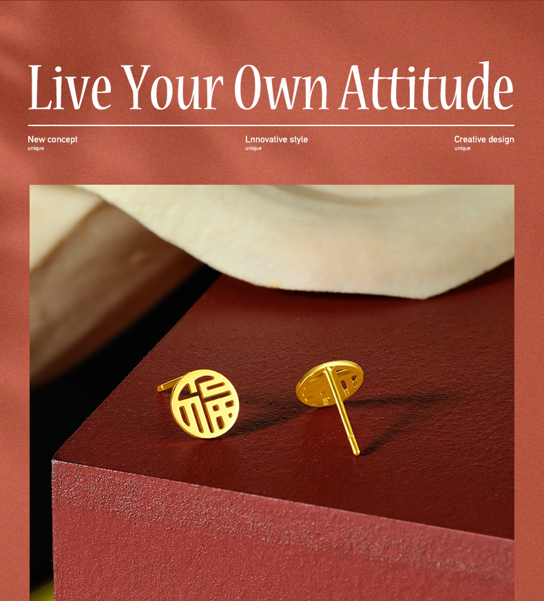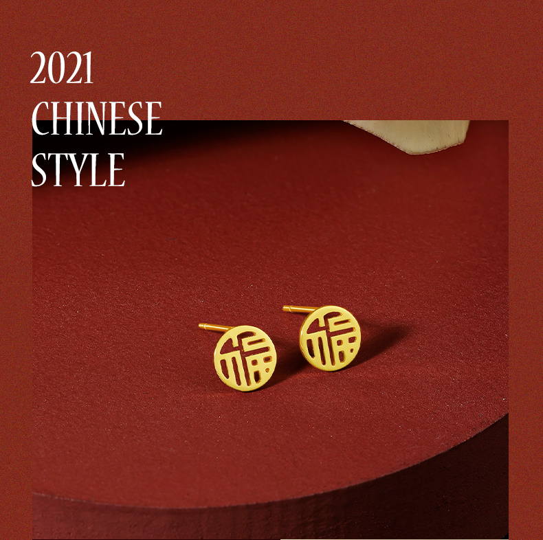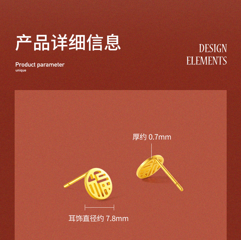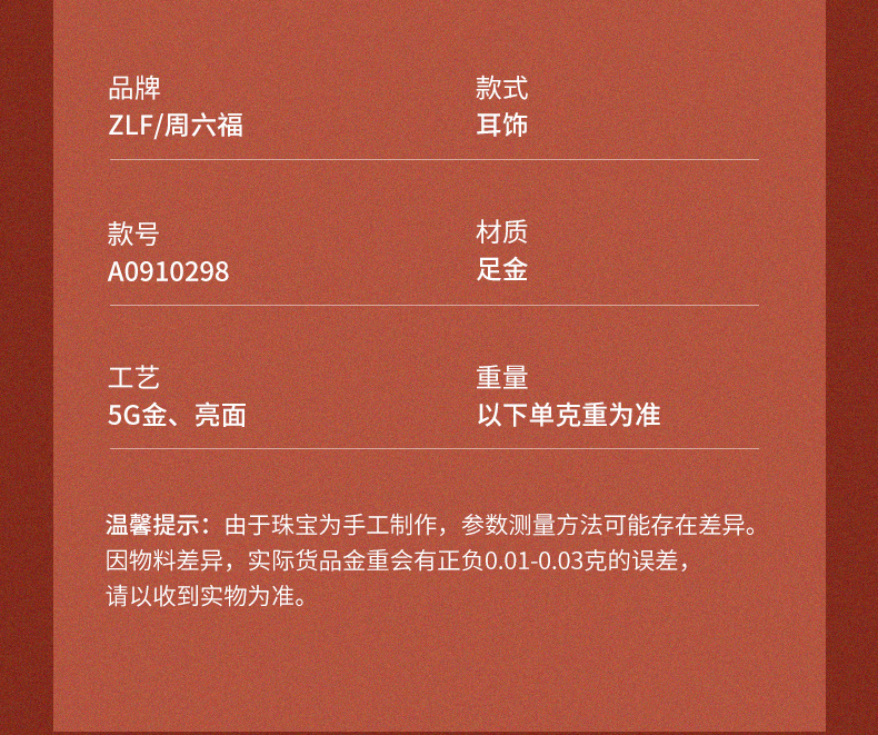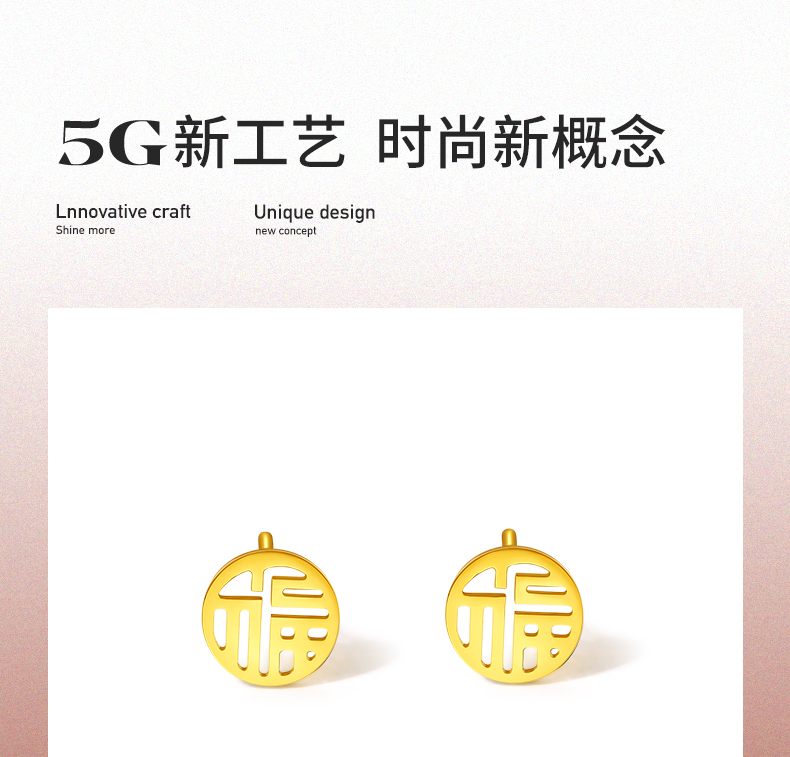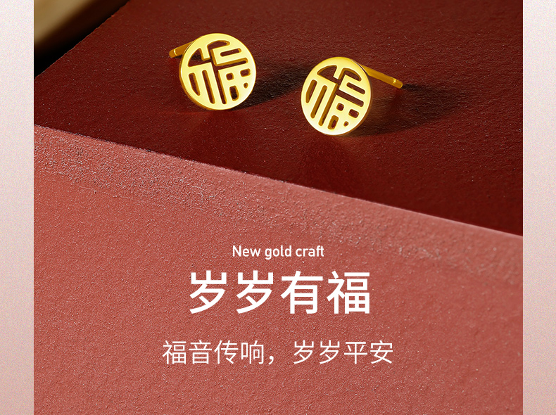 周六福黄金耳饰女5G金国潮福牌耳钉岁岁有福计价无极金送女友礼物