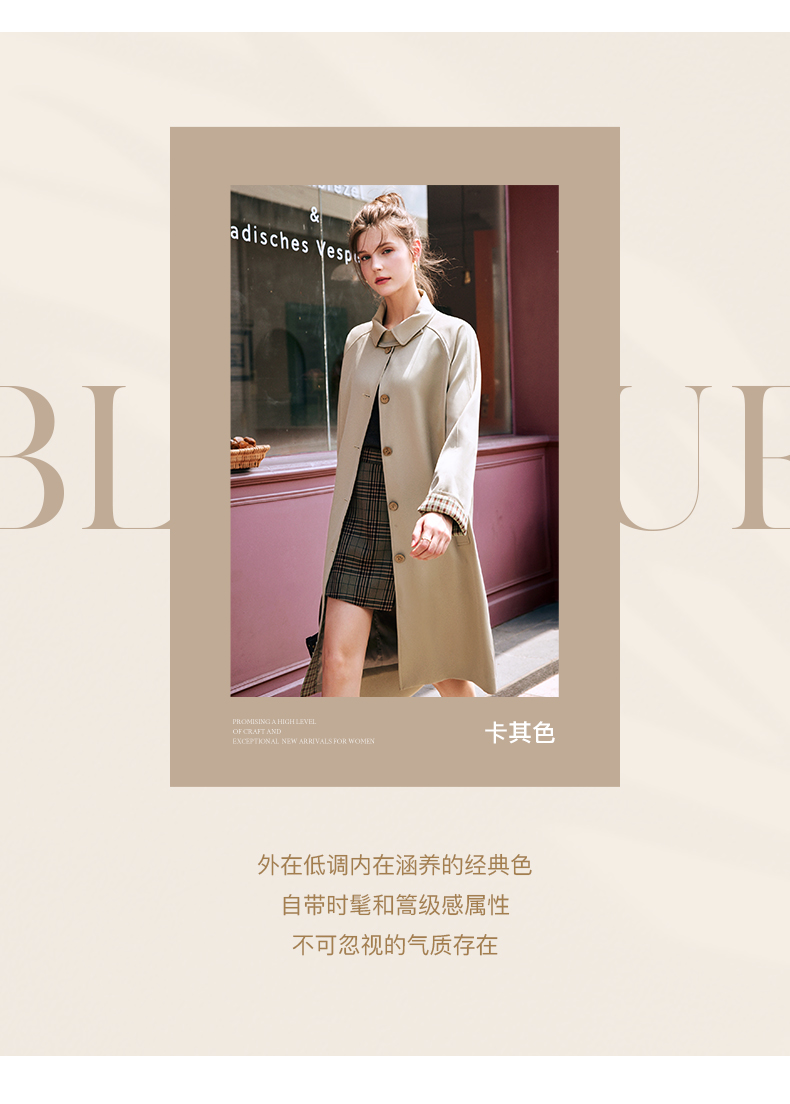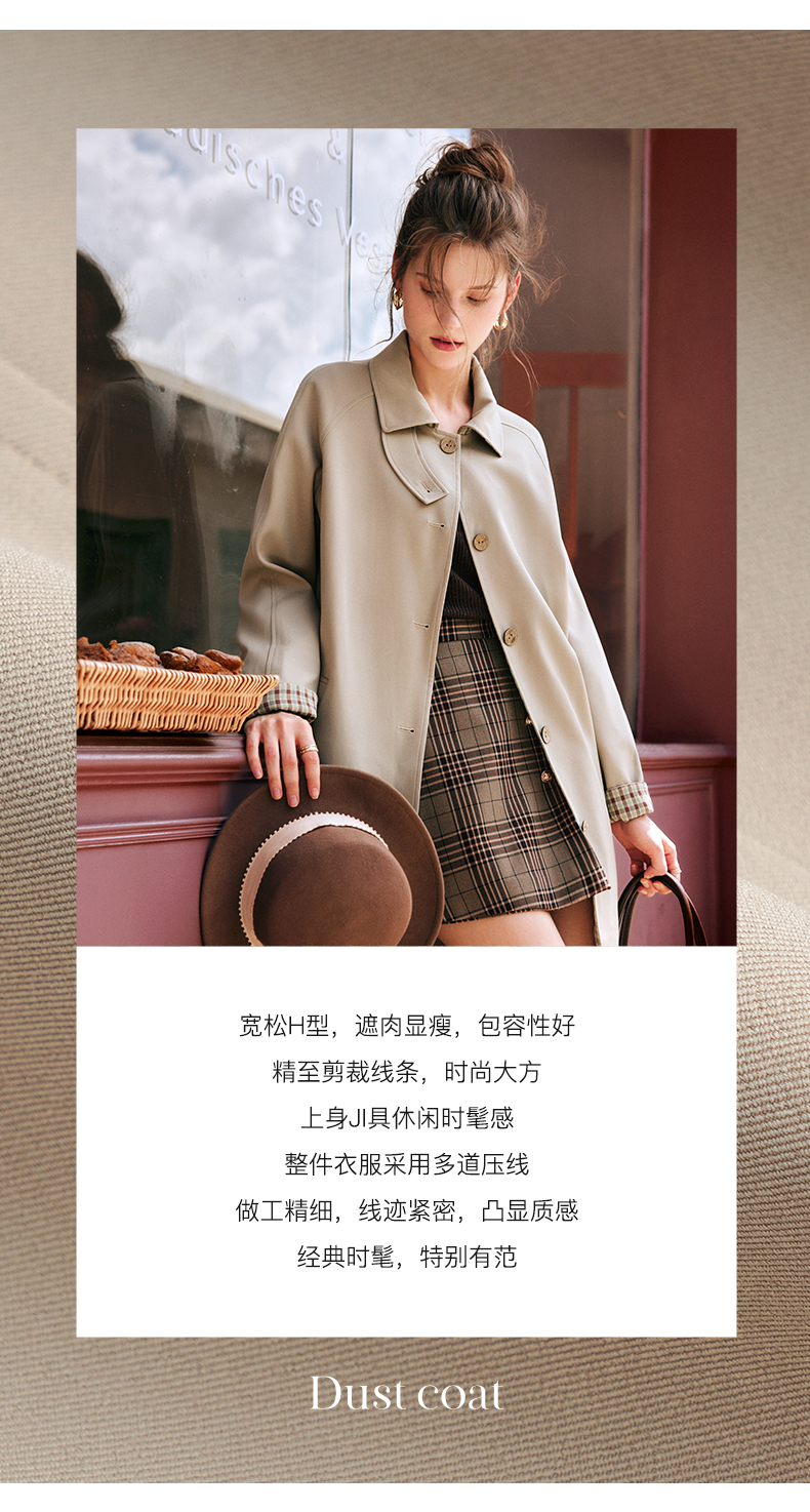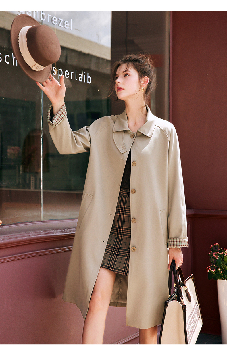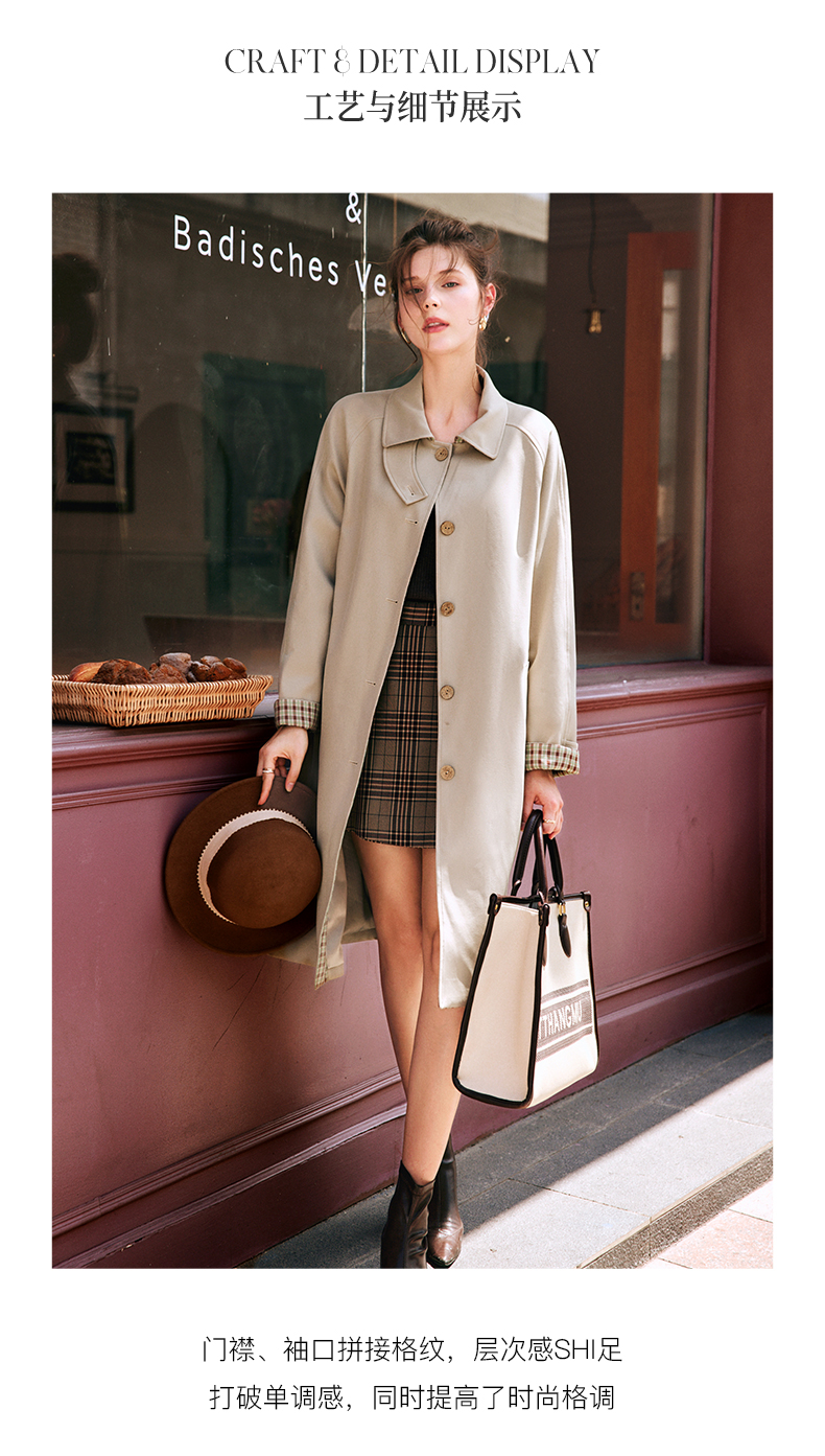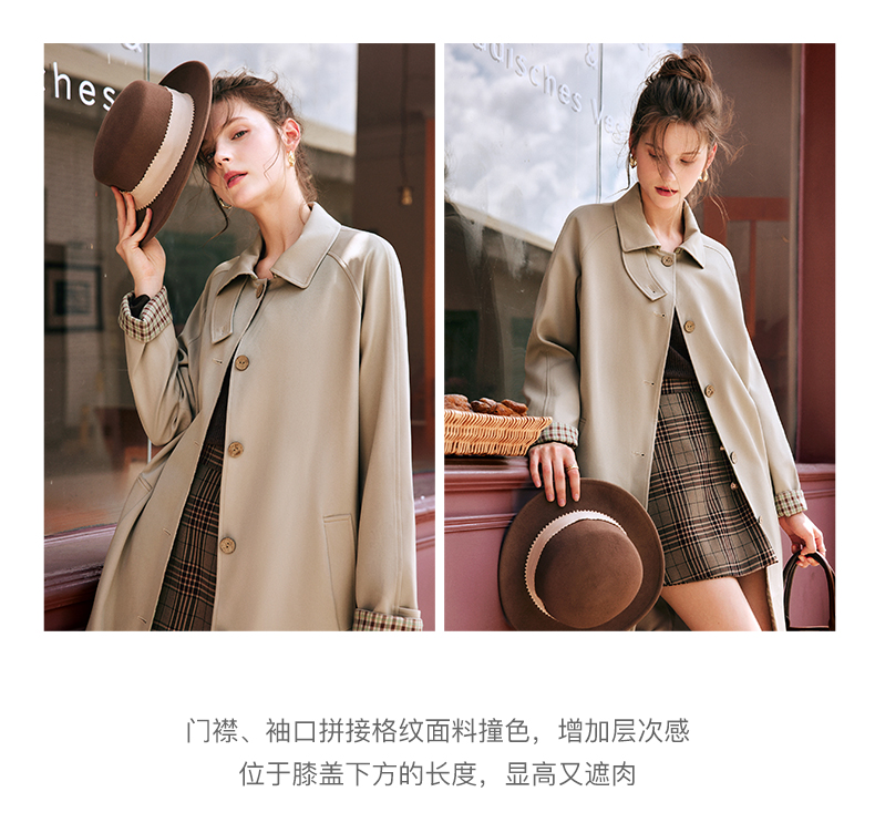 OLrain欧芮儿法式卡其色风衣女早秋2022新款宽松直筒拼接翻领外套