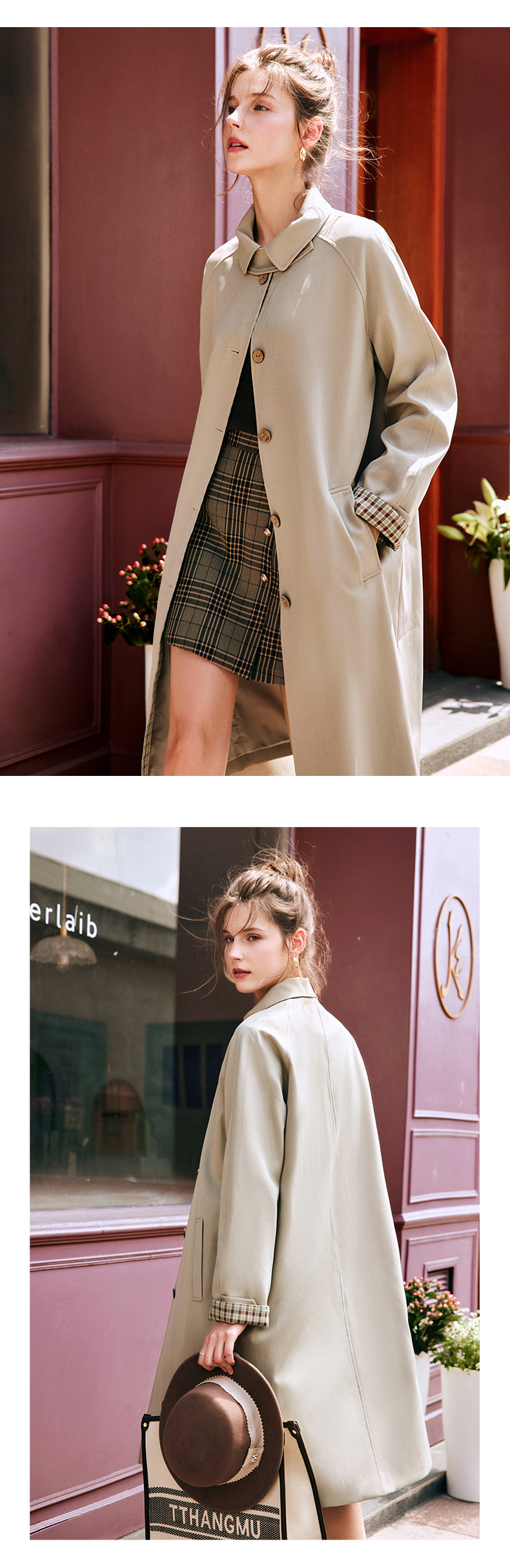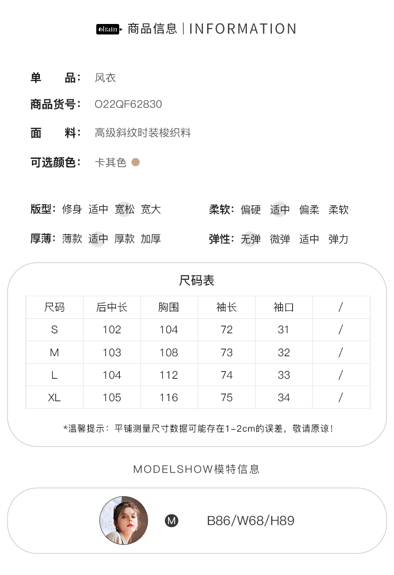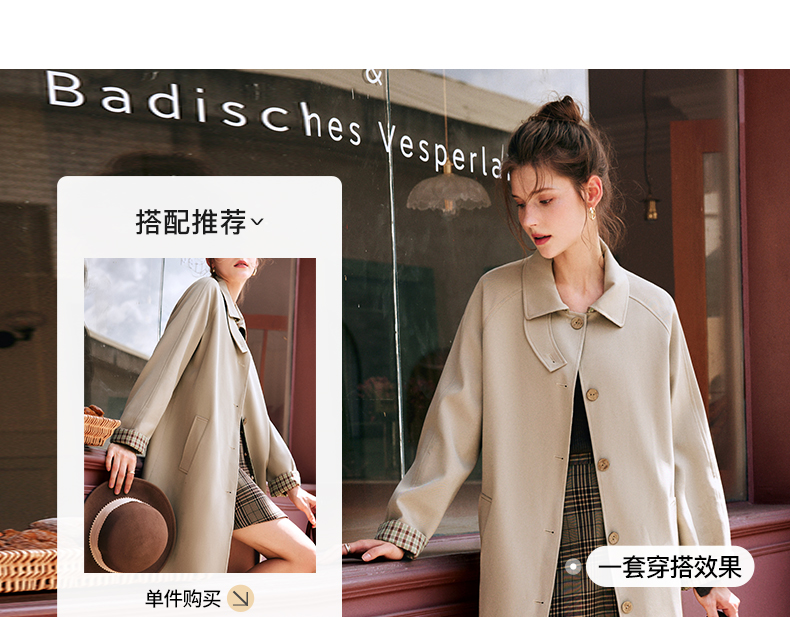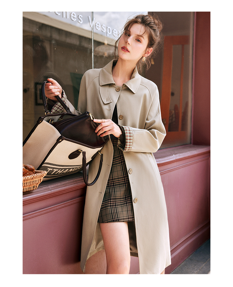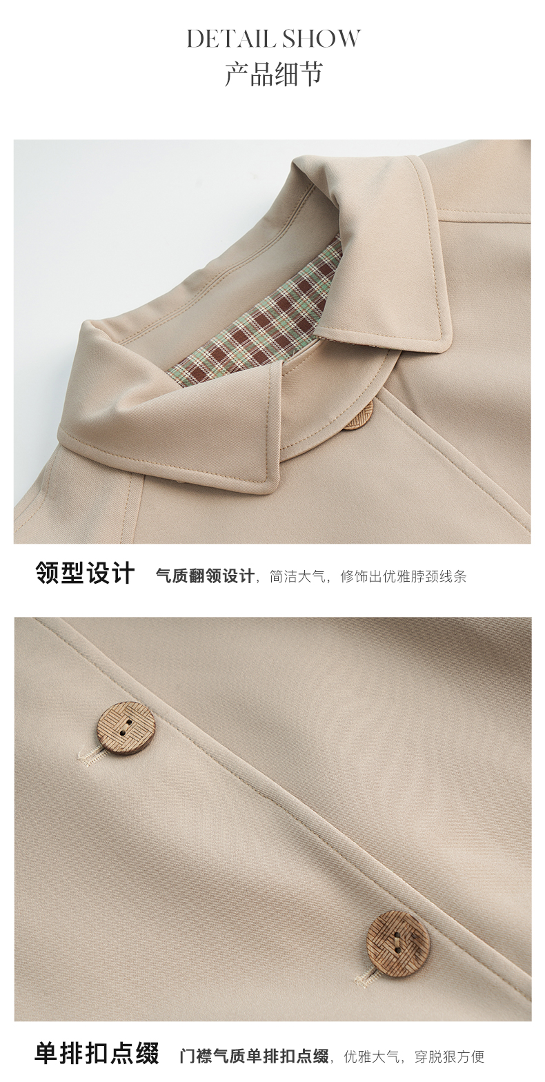 OLrain欧芮儿法式卡其色风衣女早秋2022新款宽松直筒拼接翻领外套