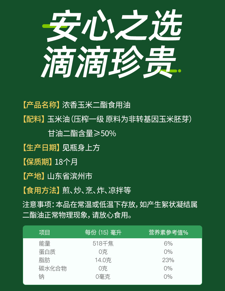 长寿花浓香玉米二酯油甘油二酯含量50%1L