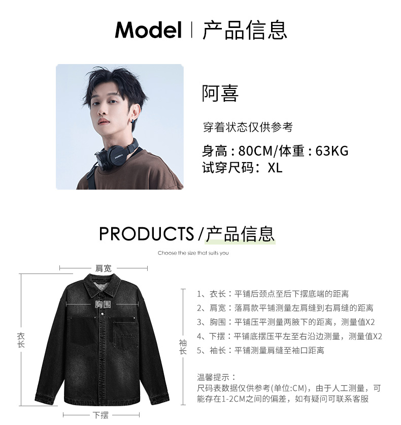 【断码清仓】HX 春秋季水洗牛仔衬衫式茄克衫外套S105433070101