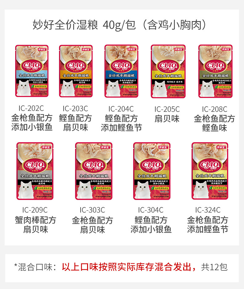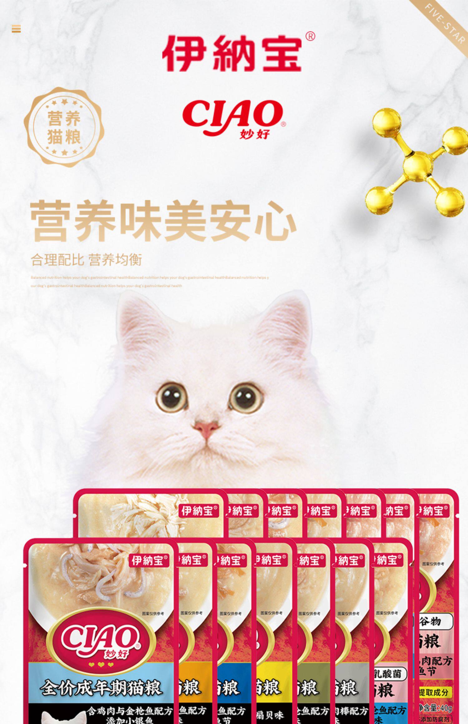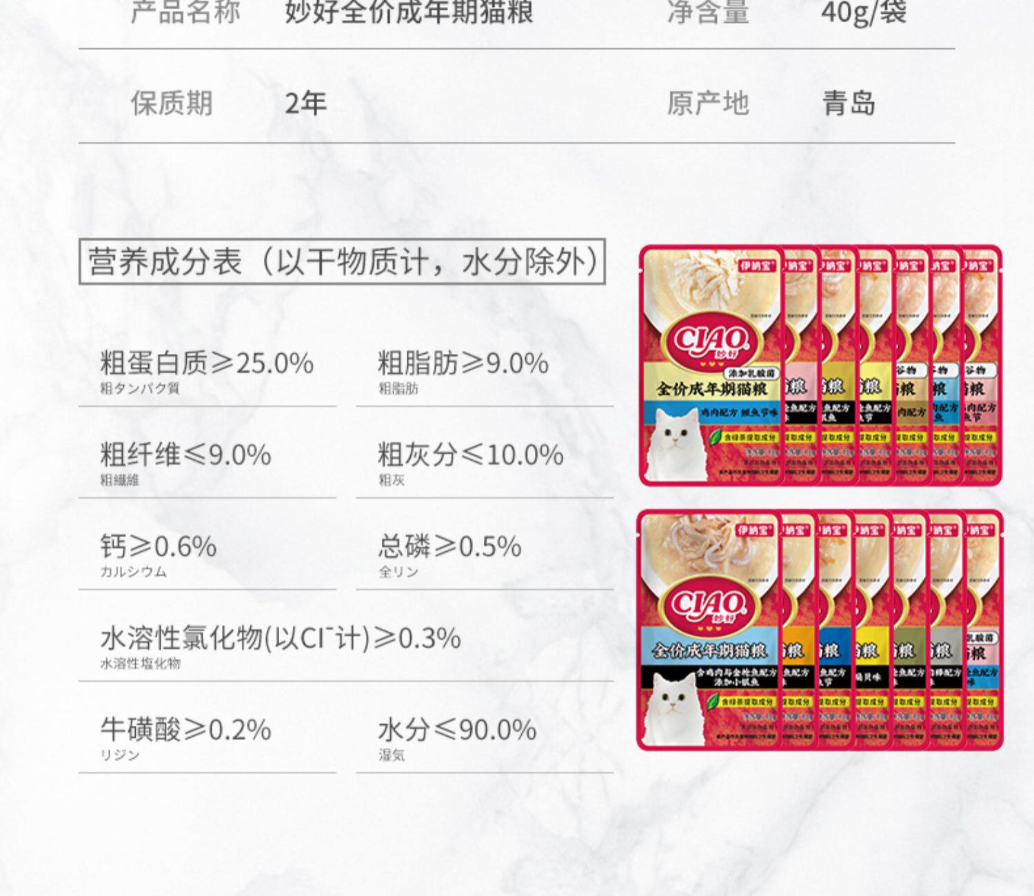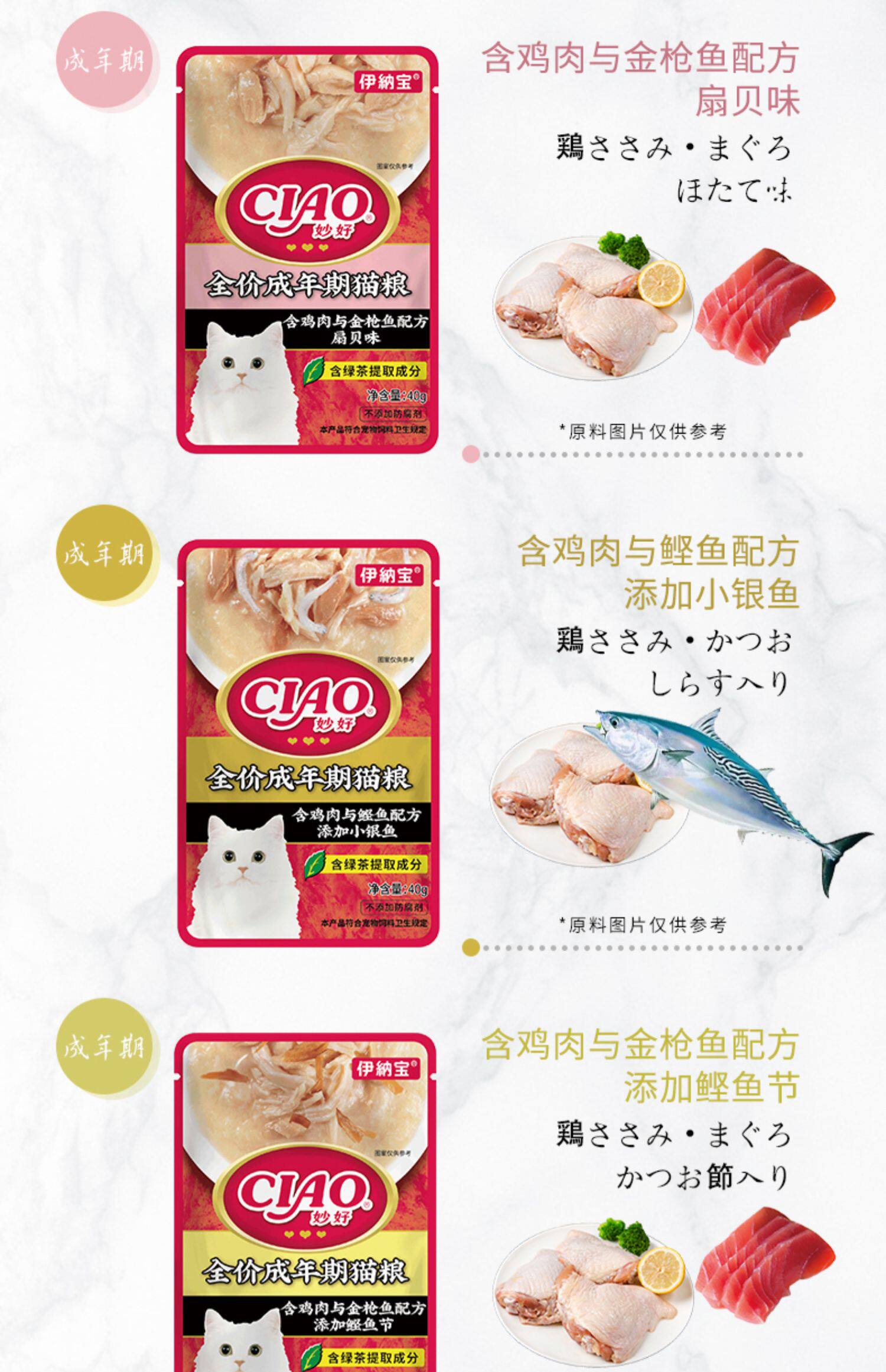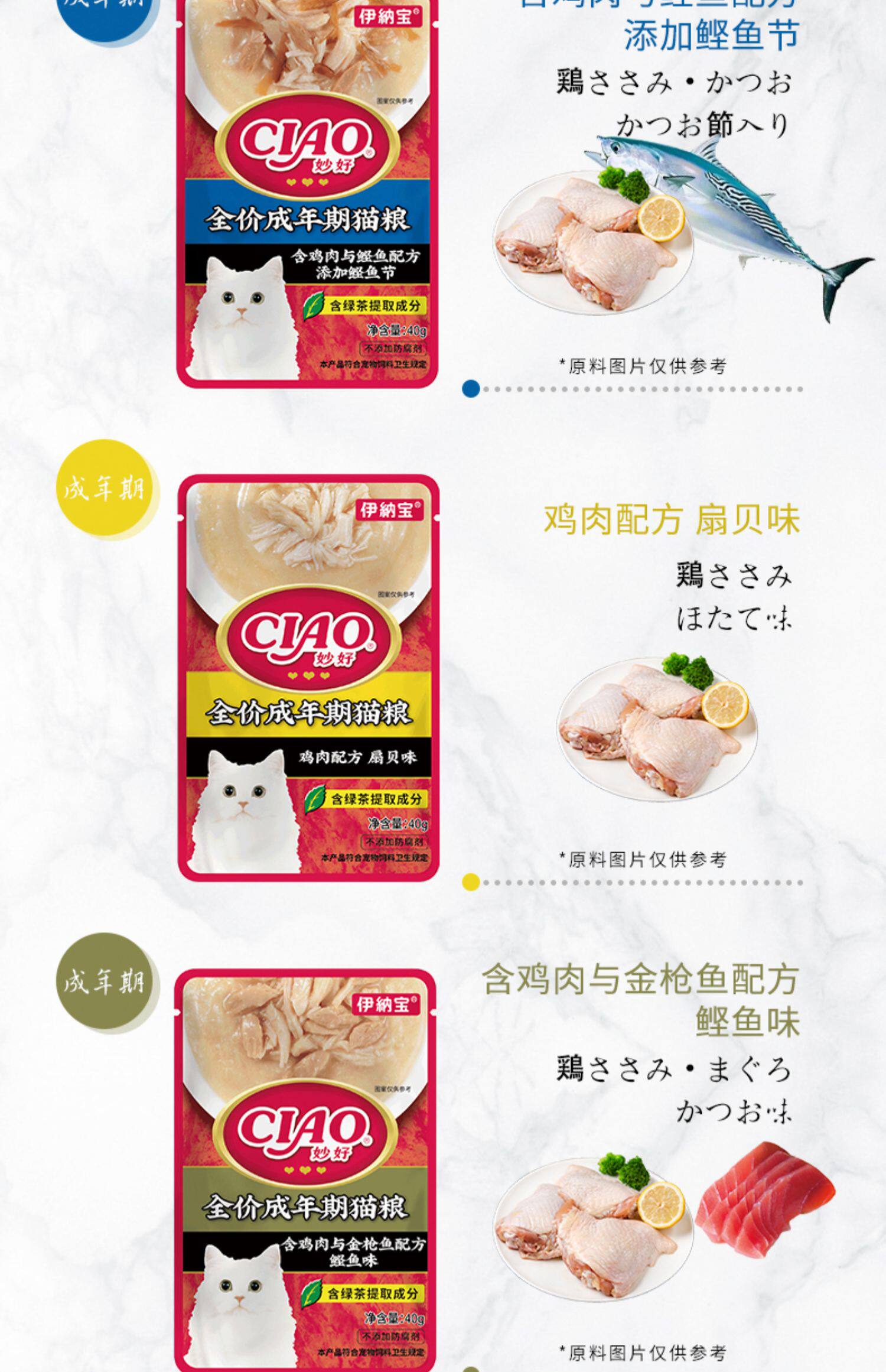 伊纳宝猫咪零食鸡胸肉湿粮包幼猫金枪鱼鲣鱼肉条24包拌粮宠物零食