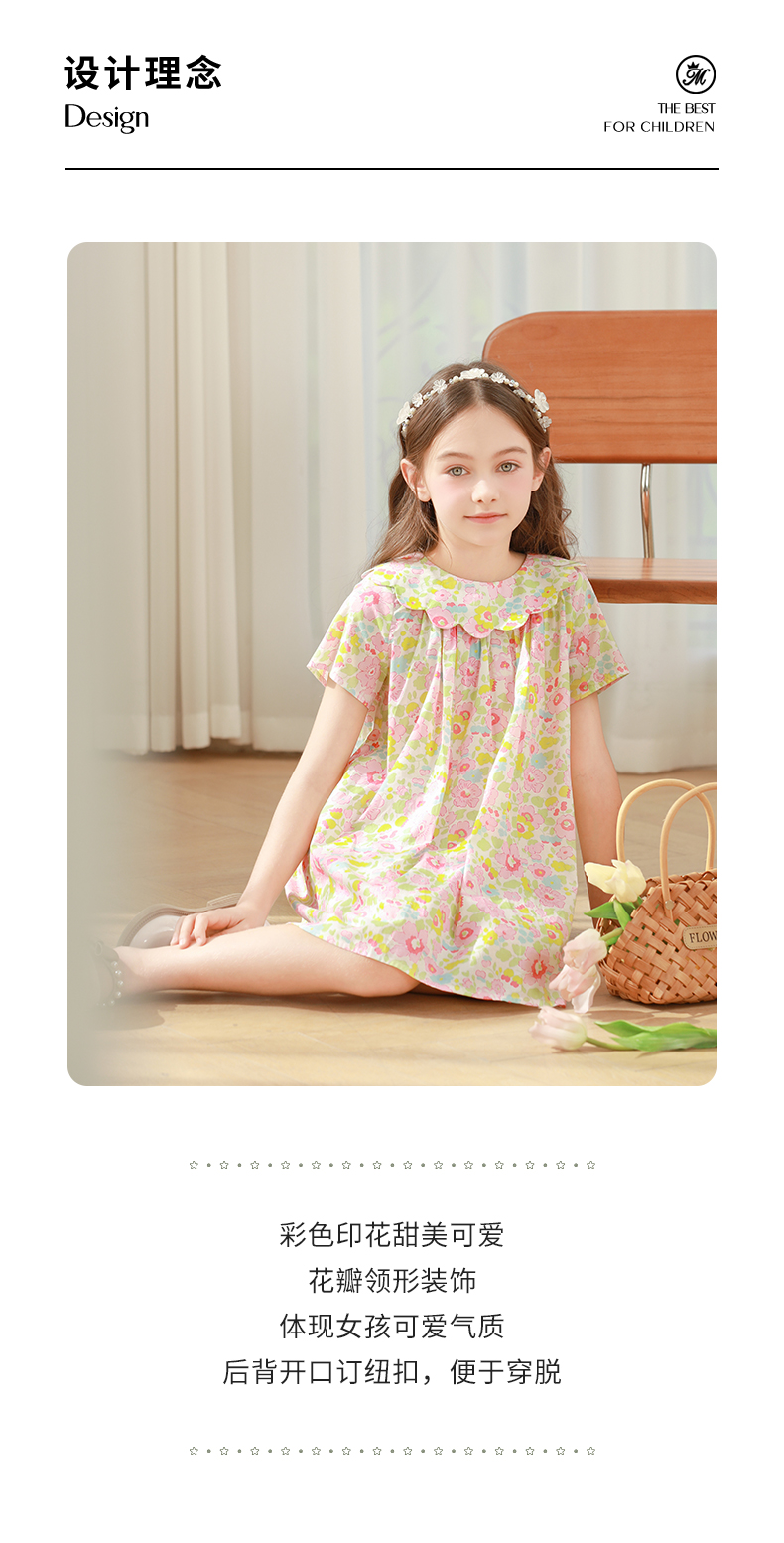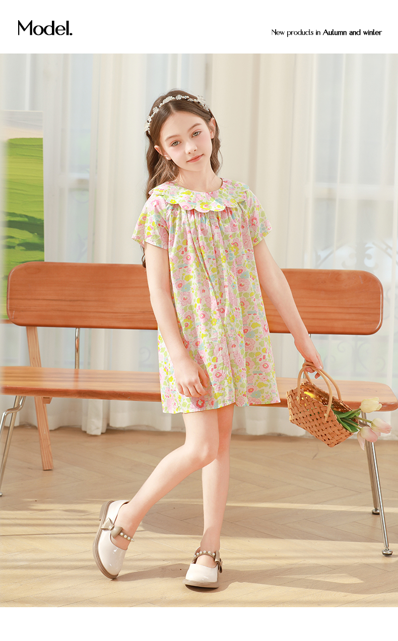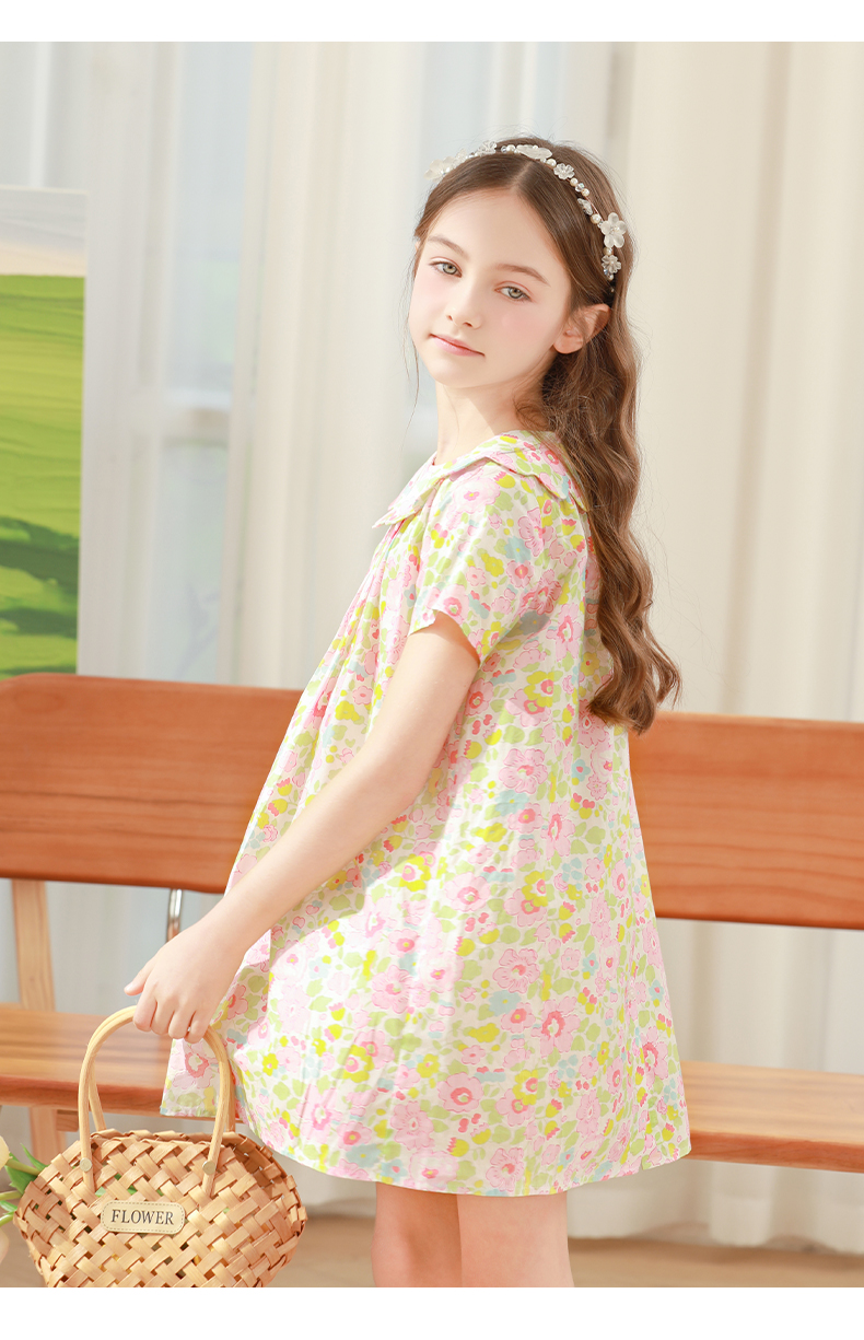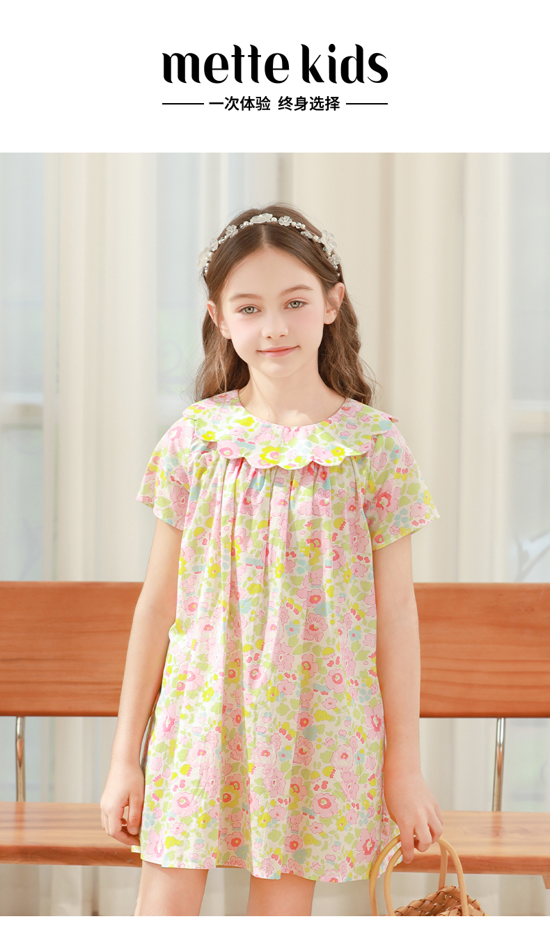 mettekids女童连衣裙2024夏新款纯棉裙子儿童甜美翻领碎花公主裙