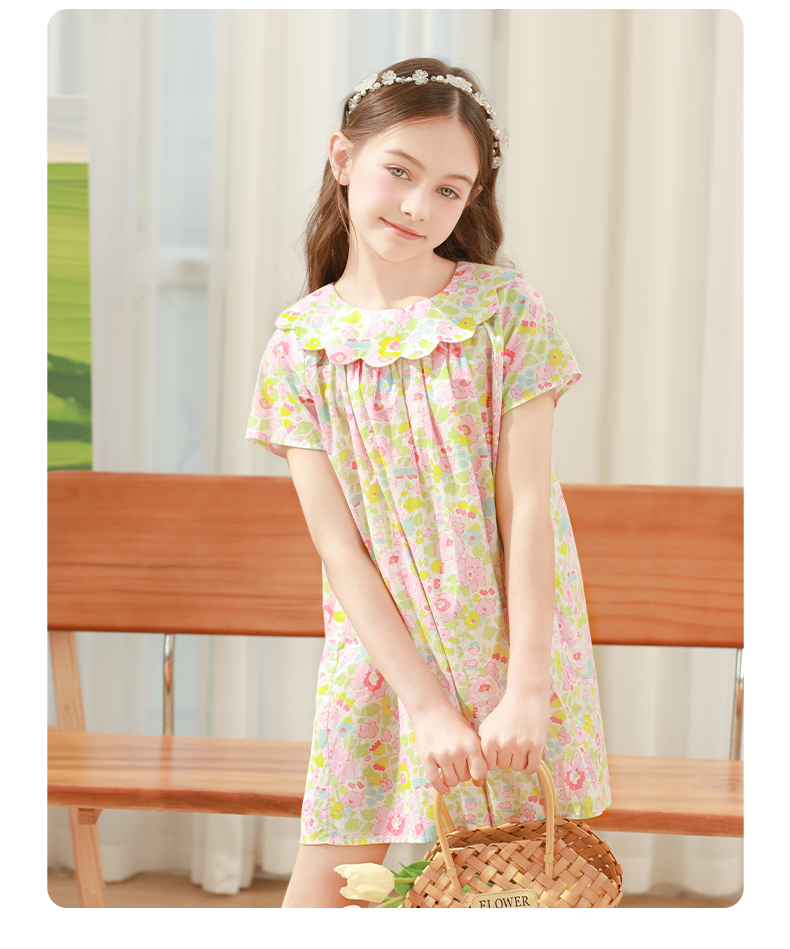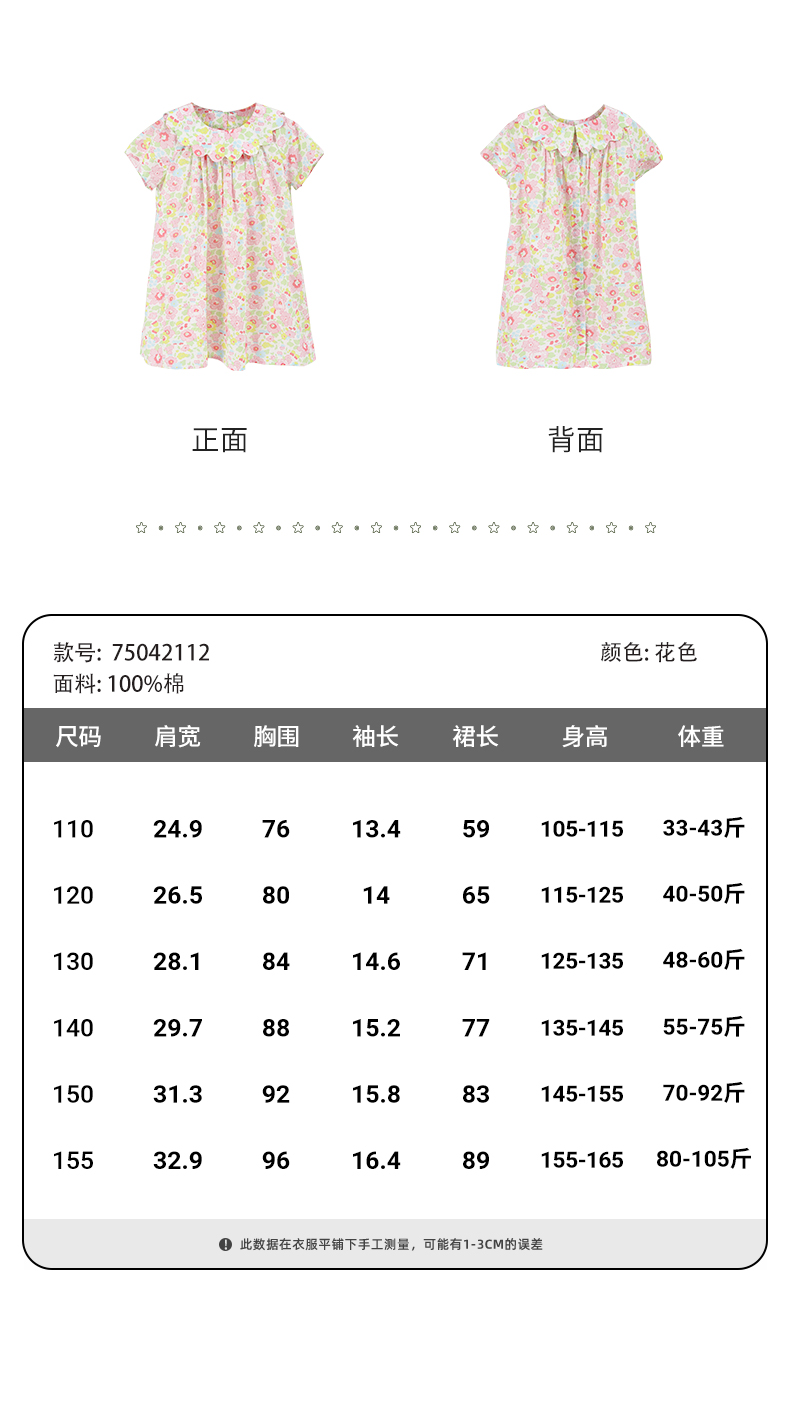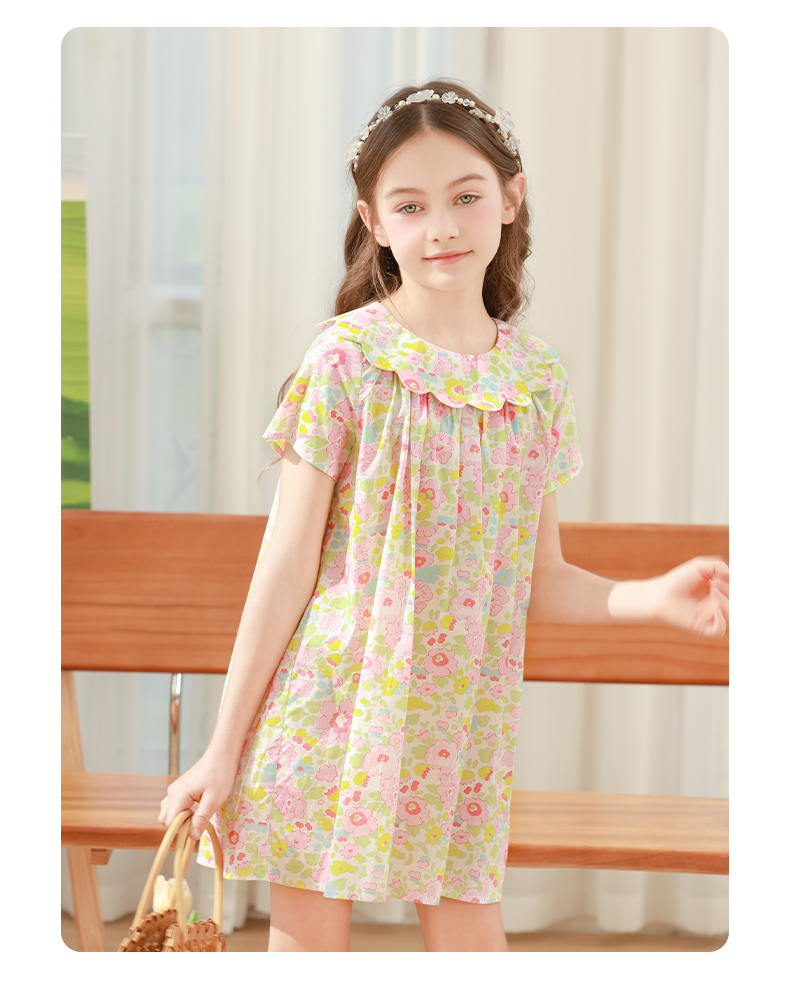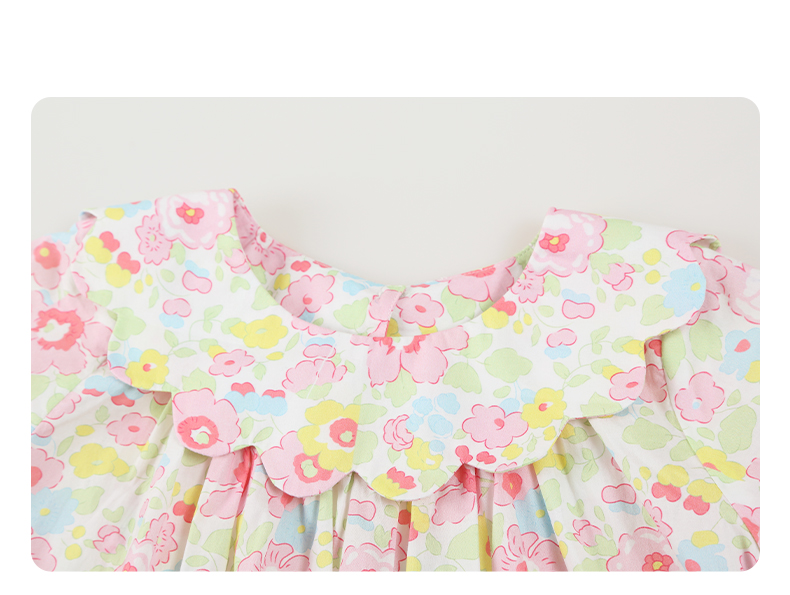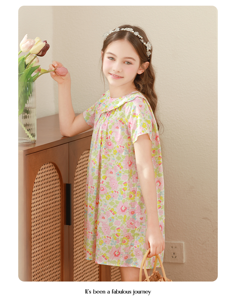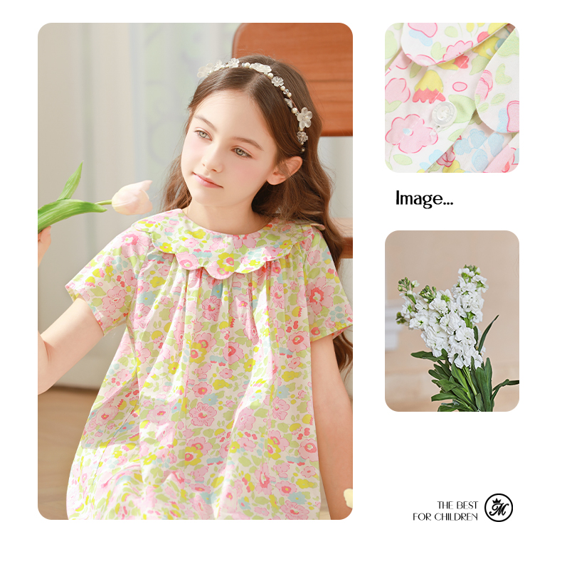 mettekids女童连衣裙2024夏新款纯棉裙子儿童甜美翻领碎花公主裙