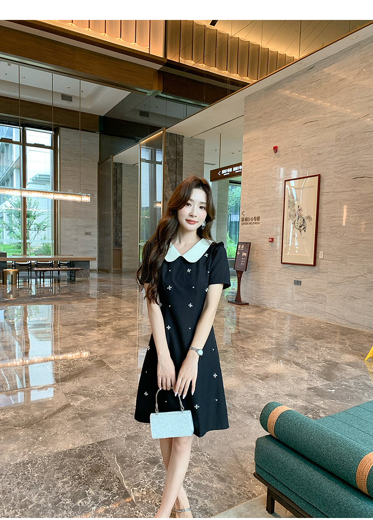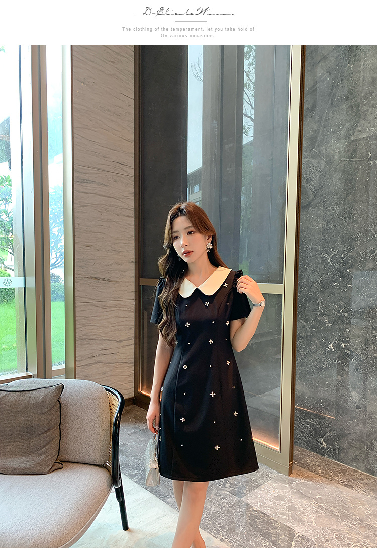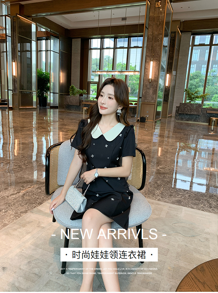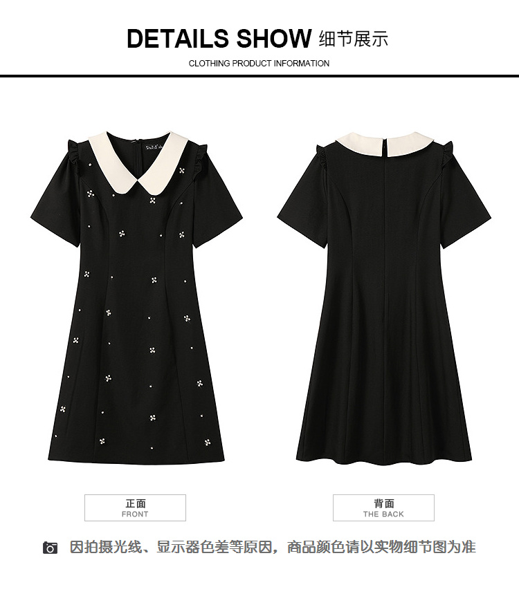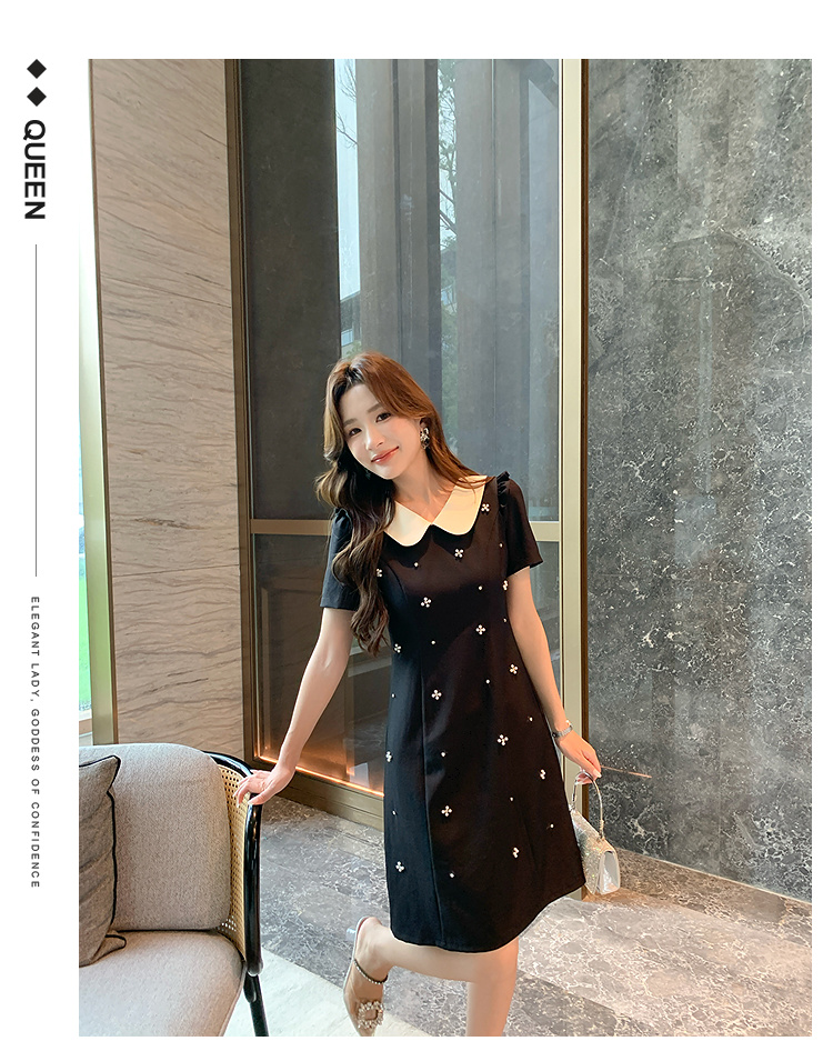 奢姿大码女装2025夏季减龄钉珠木耳边裙子胖妹妹时尚娃娃领连衣裙9952803321B